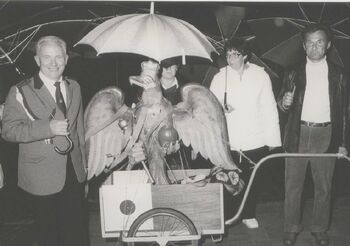 1983 "flog" der Adler mit Erich Siemers für ein Jahr zum SV Gaue. Damals war die Trophäe so groß, dass man zum Transport einen "Anhänger" nahm, um ihn stehend bei Nieselregen gut beschirmt, nach "Buschhorn" zu bringen.