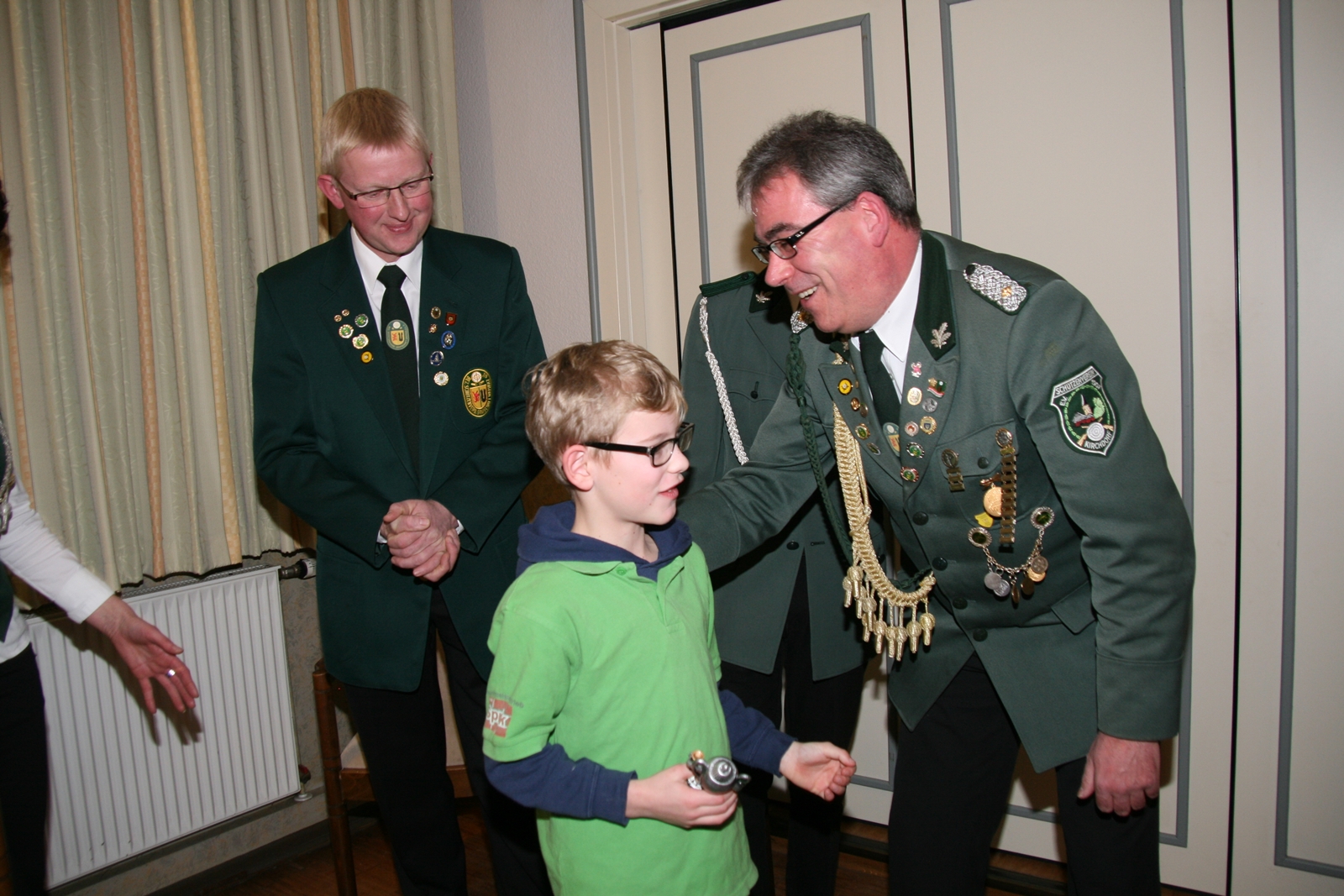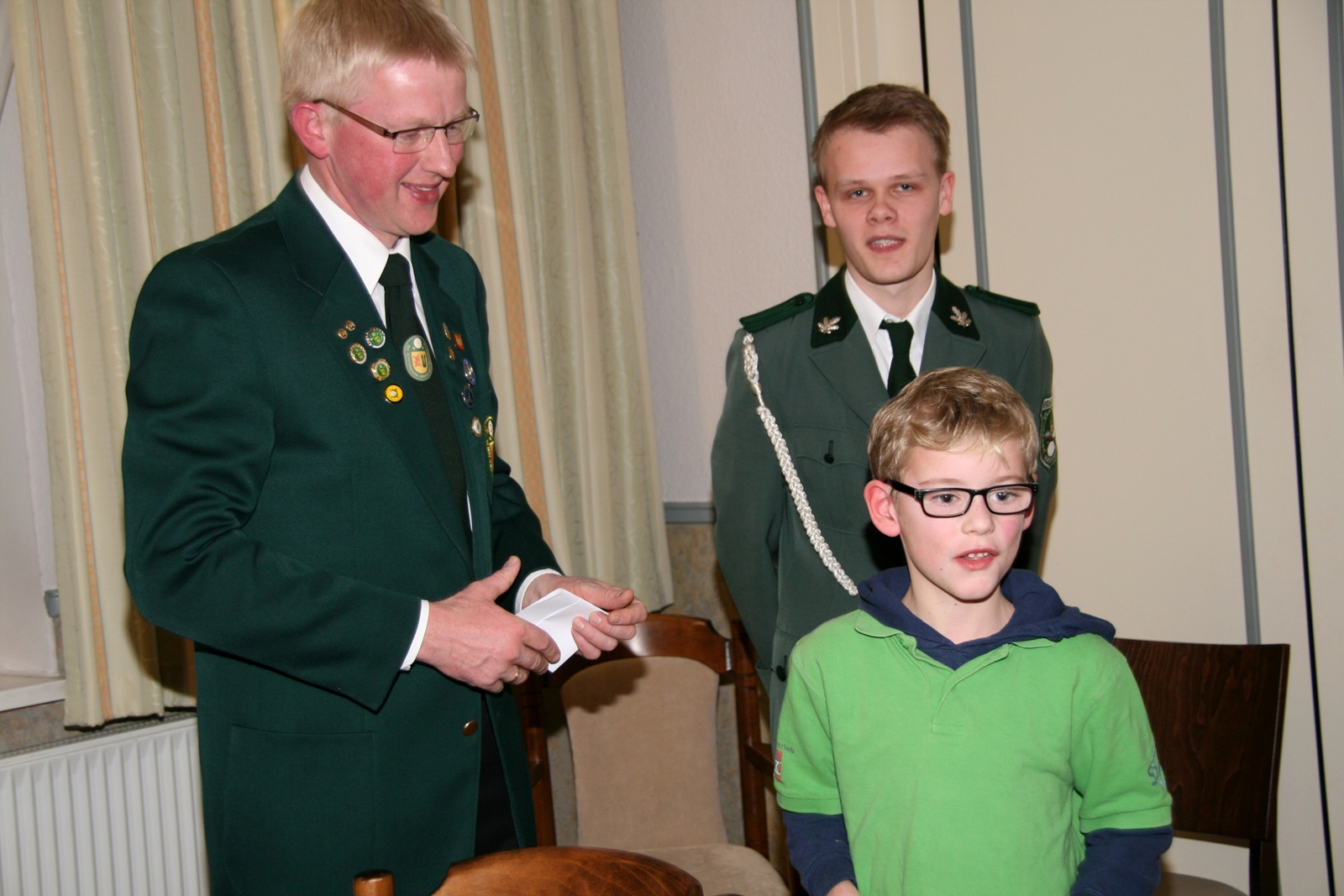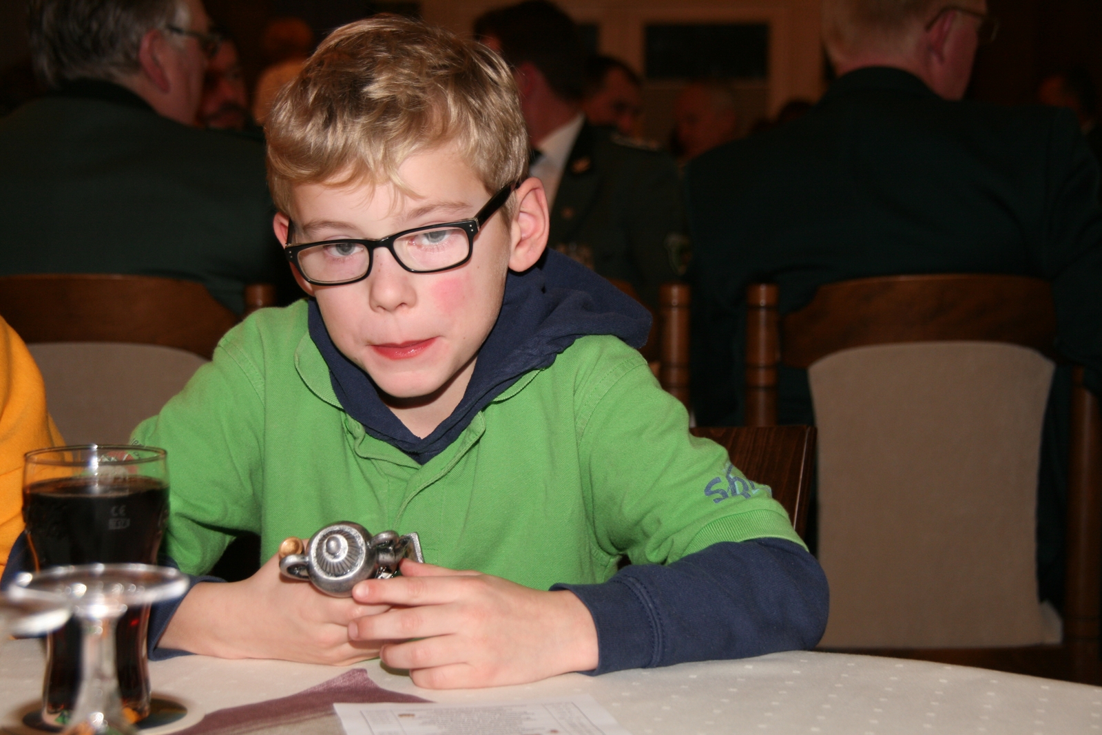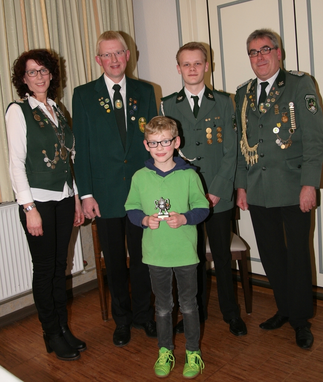 In den vergangenen Jahren habe man die Lichtpunktschützen zu diesem Wettkampf im Oktober immer so melden können, in diesem Jahr war es etwas anders, man musste sich qualifizieren. Erstmals musste eine sportliche "Hürde" genommen werden und diese habe Colin mit Bravour gemeistert. Nur die besten Lichtpunktschützen aus mehreren Landesverbänden qualifizieren sich für diese überregionale Meisterschaft. Mit der Lichtpunktpistole hatte Colin bei der Landesverbandsmeisterschaft in der Schülerklasse D die Silbermedaille gewonnen. So konnte er in der Mannschaft des Nordwestdeutschen Schützenbundes (NWDSB) mitschießen, diese habe zudem die Goldmedaille gewonnen. Die Übergabe des Pokals an Colin wurde mit viel Beifall aller Anwesenden belohnt. Es gratulierte ebenso Bezirksjugendsprecher Bjarne Lohmeier sowie Vereinskönigin Susanne Zwick, Colin freute sich natürlich auch über die vielen Glückwünsche der nicht gekrönten "Häupter".