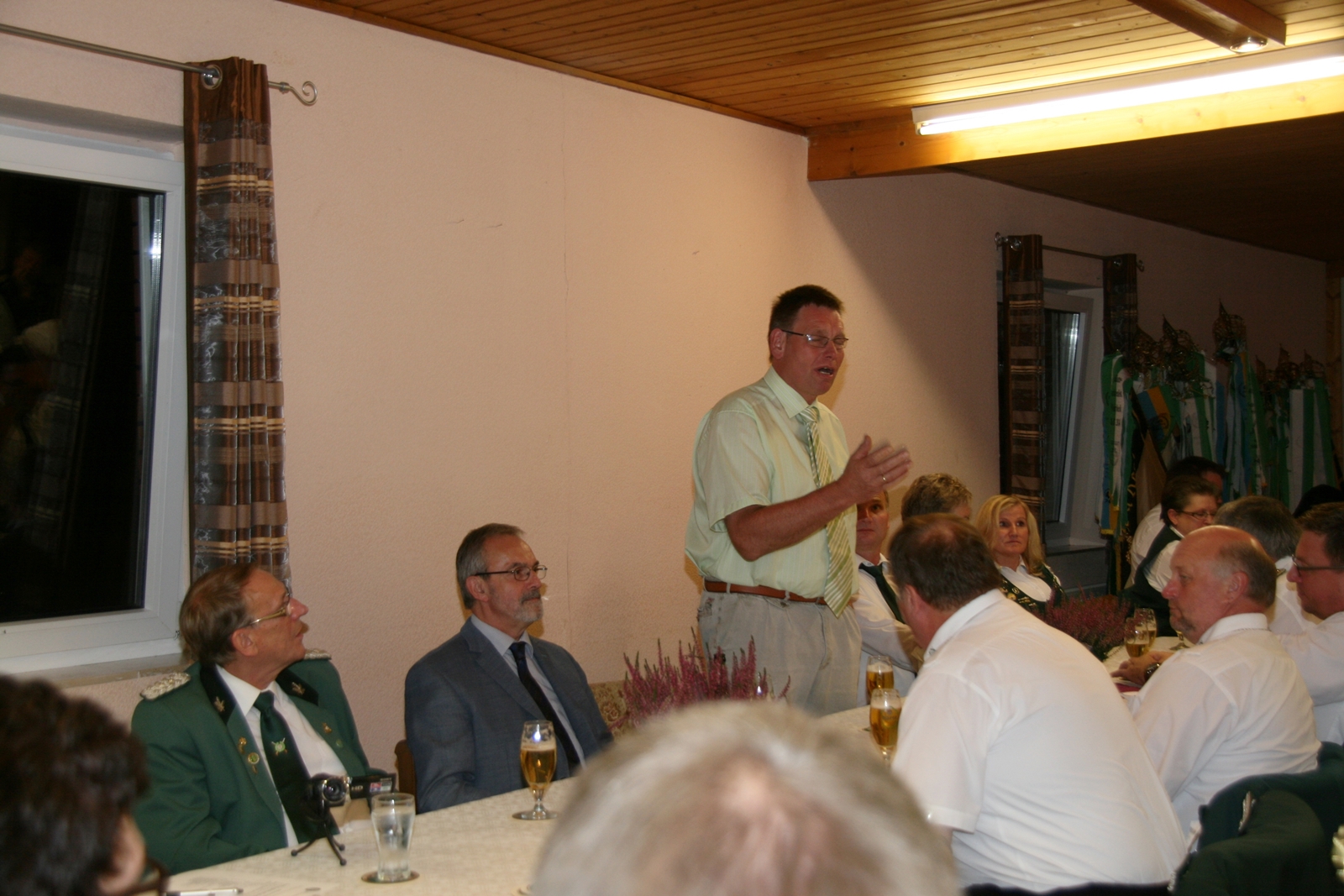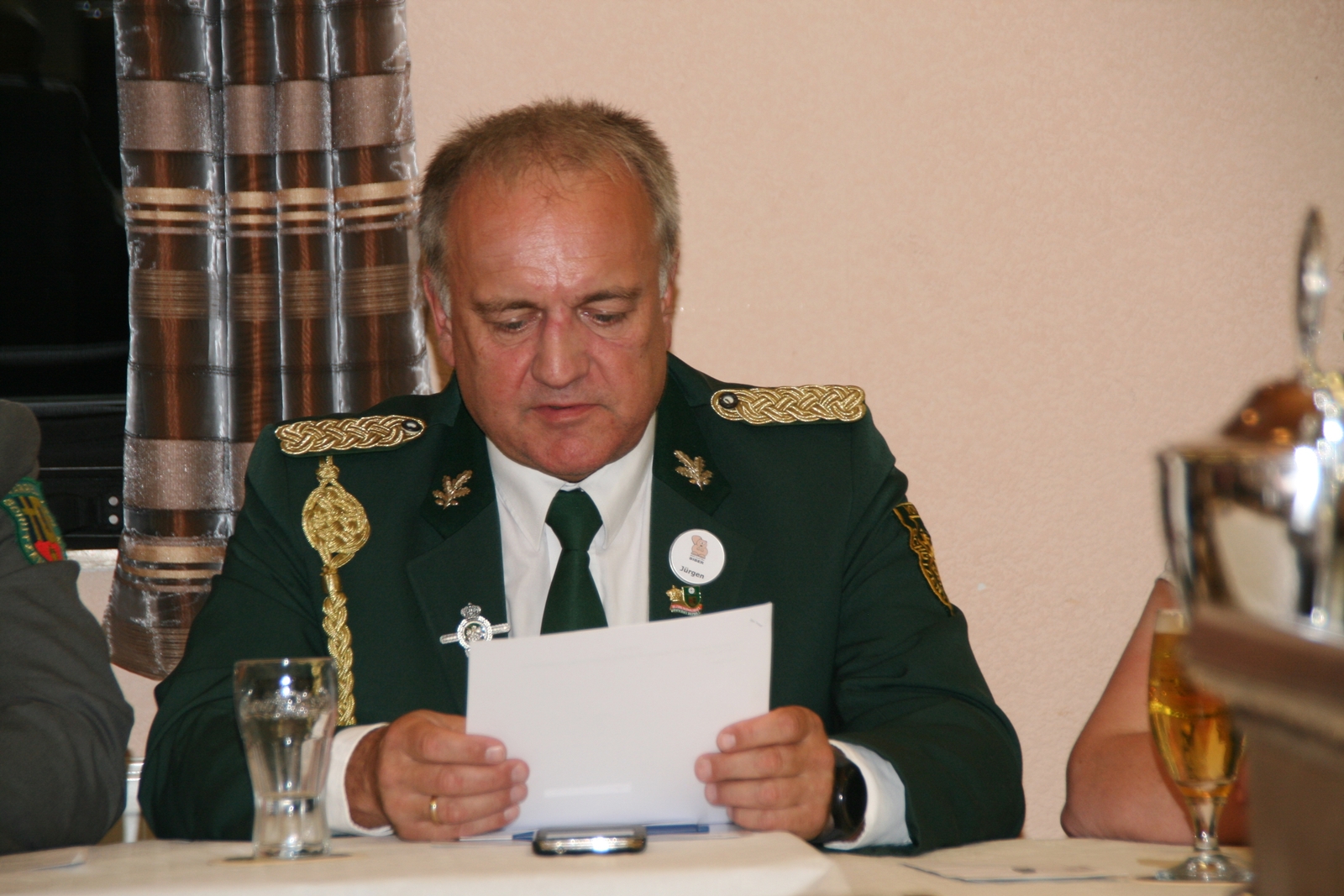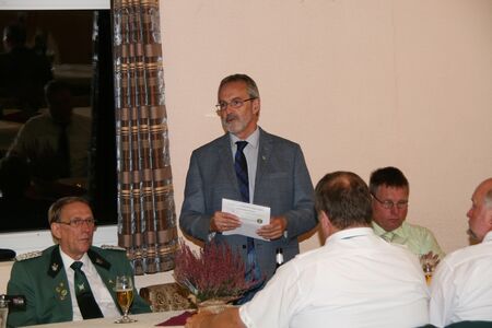 Heinrich Gödeker, Bürgermeister der Gemeinde Varrel übermittelte im Namen der Gemeinde die Grüße. Es freue ihn, dass der Kreisverband seine Delegiertenversammlung hier in Dörrieloh im Schützenhaus abhält. Er wünsche sich, dass der KV seine überaus gute Arbeit, insbesondere seine Jugendarbeit so weiterführen möge. Denn die Jugendarbeit ist in Zukunft eines unserer wichtigsten Themen. Das wir unsere Jugend am „Ball“ behalten und zu unseren gemeinschaftlichen Aufgaben hinführen, nicht dass das Handy das wichtigste im Leben ist. Es ist gut, dass der Kreisverband IV mit seinen Schützenvereinen die Jugend so gut auffängt. Der Delegiertentagung wünschte er einen guten Verlauf.