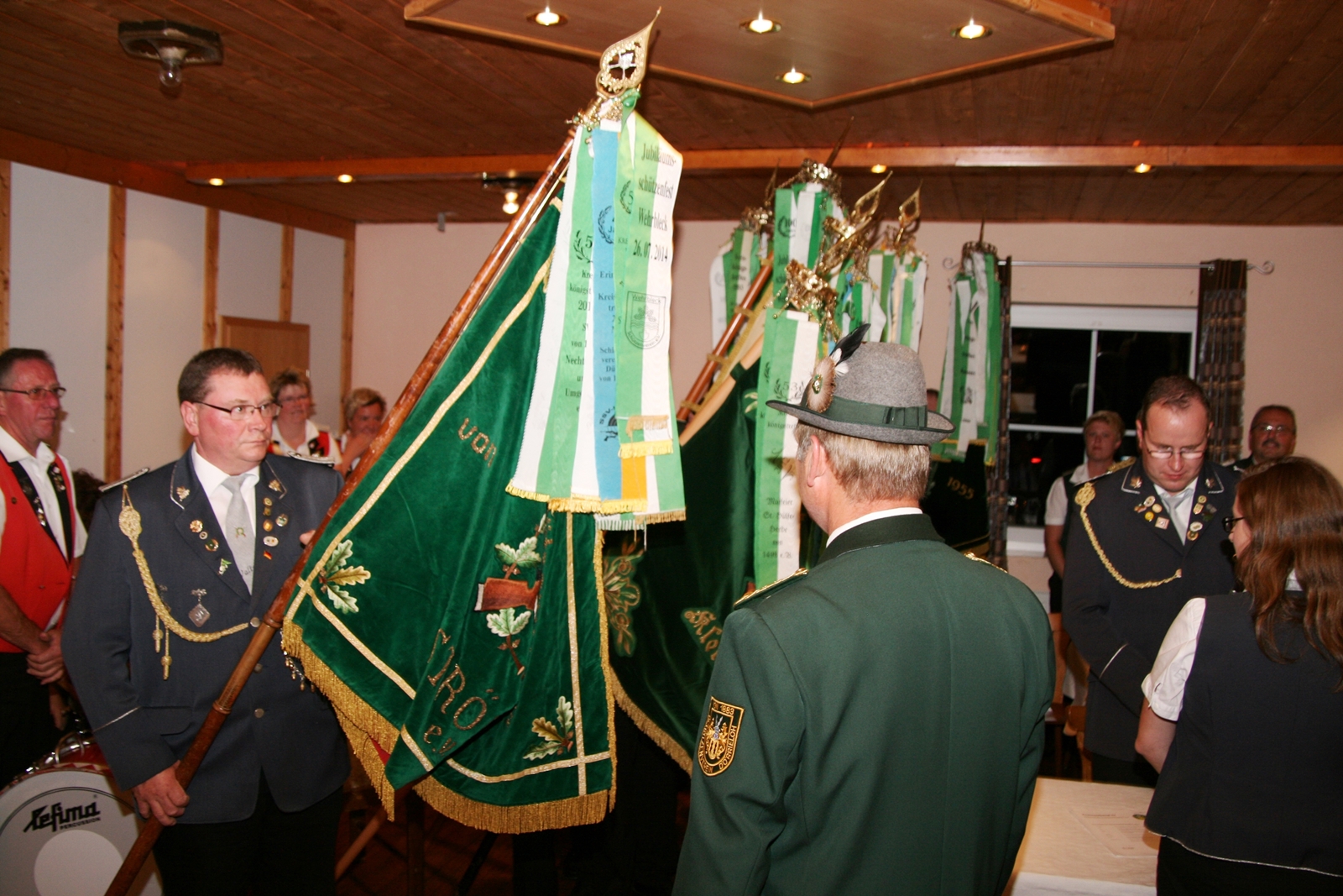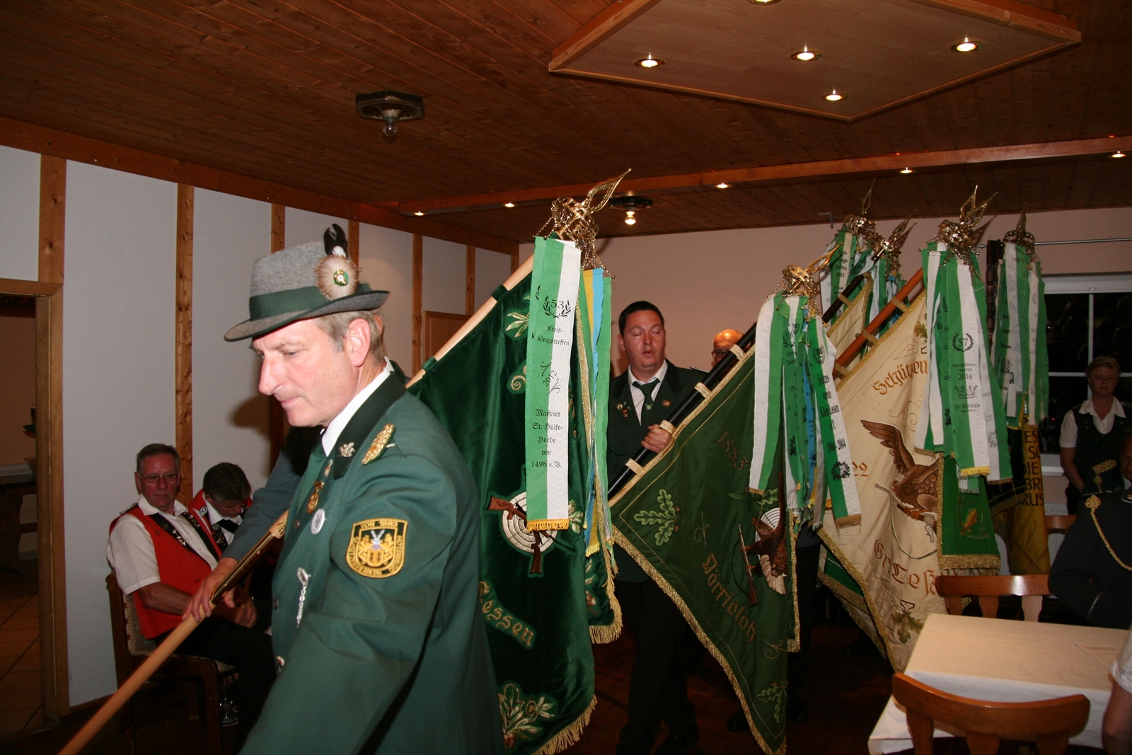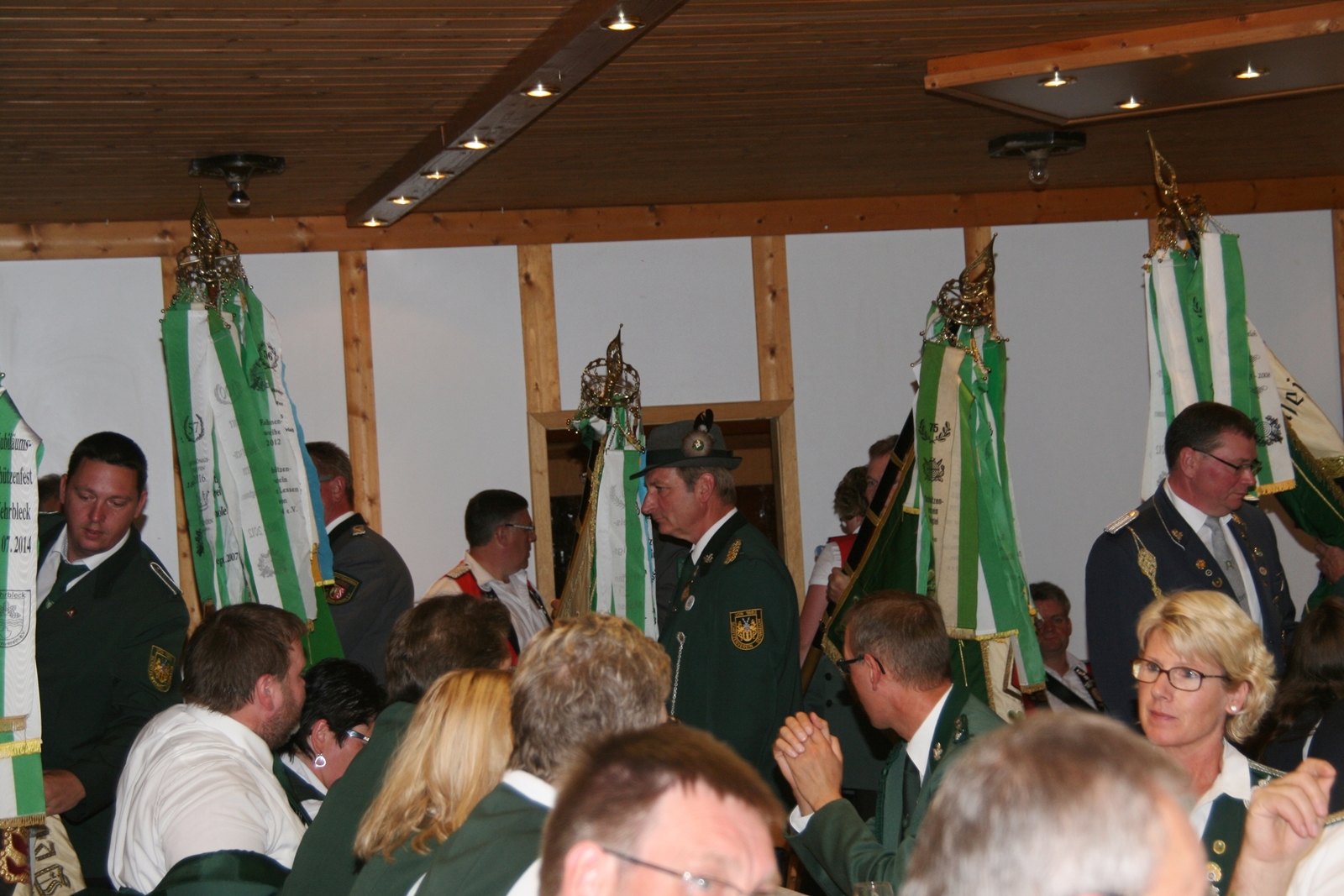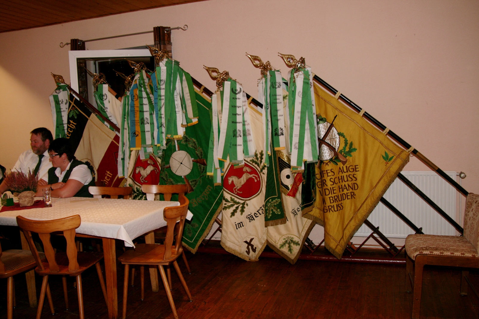 Nach dem Fahneneinmarsch erhob man sich und gedachte der im vergangenen Jahr verstorbenen Schützenschwestern und Schützenbrüder aus den Mitgliedsvereinen, Präsident Gerd Griffel verlas deren Namen.