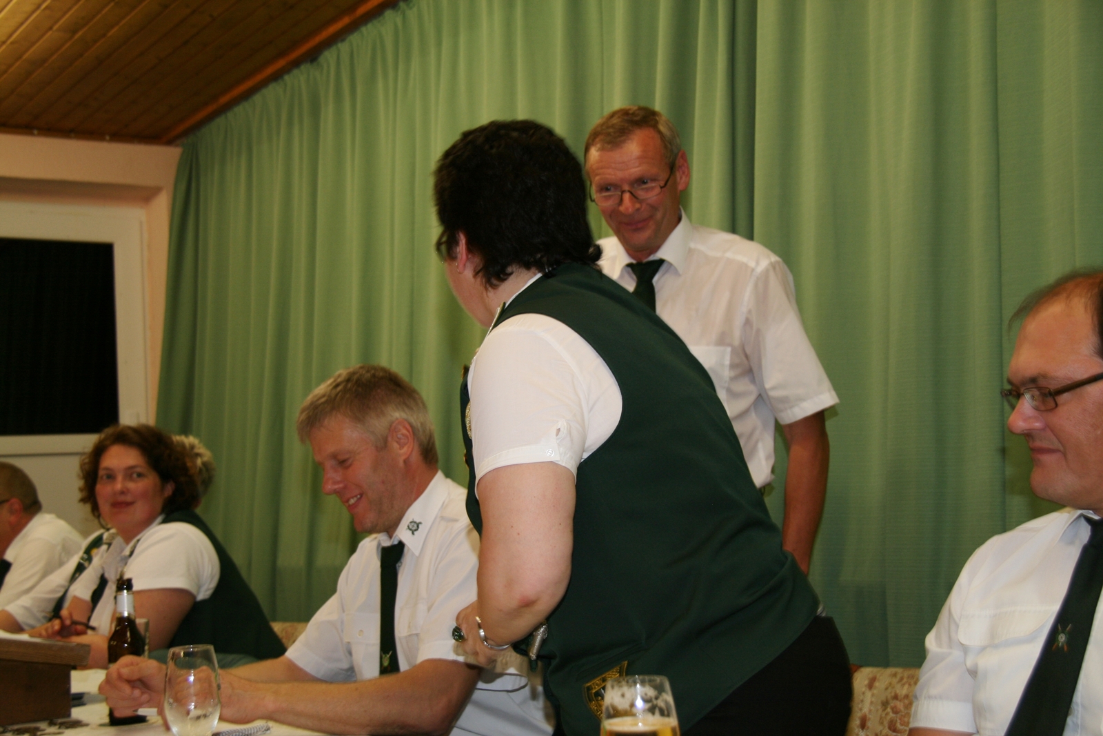 Schatzmeisterin Edith Obenhaus verteilte dann „Flachgeschenke“ als Anerkennung und Förderung der Jugendarbeit des Zeltlagers und als Anerkennung für das Führen von Trainingsmappen der Jugendlichen.