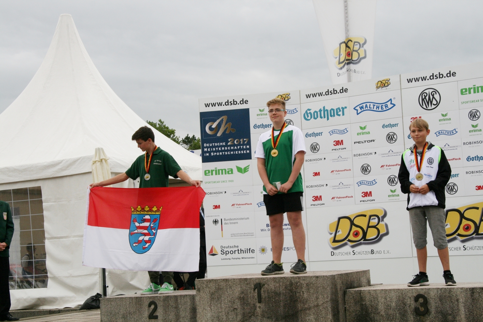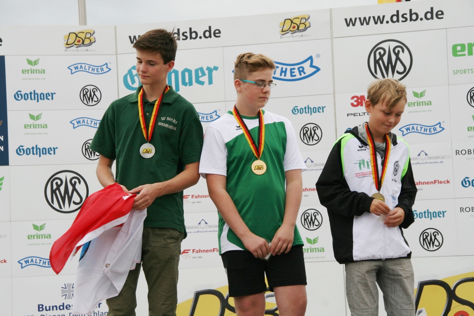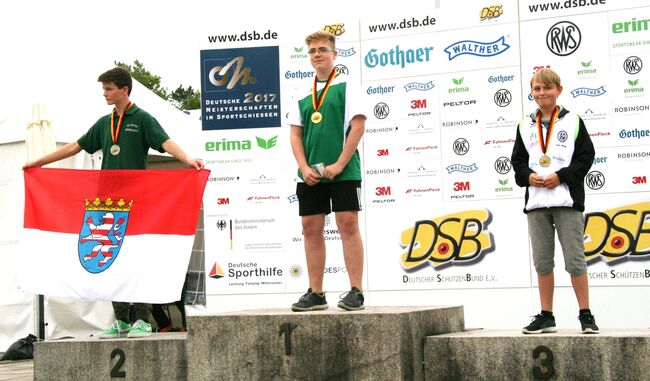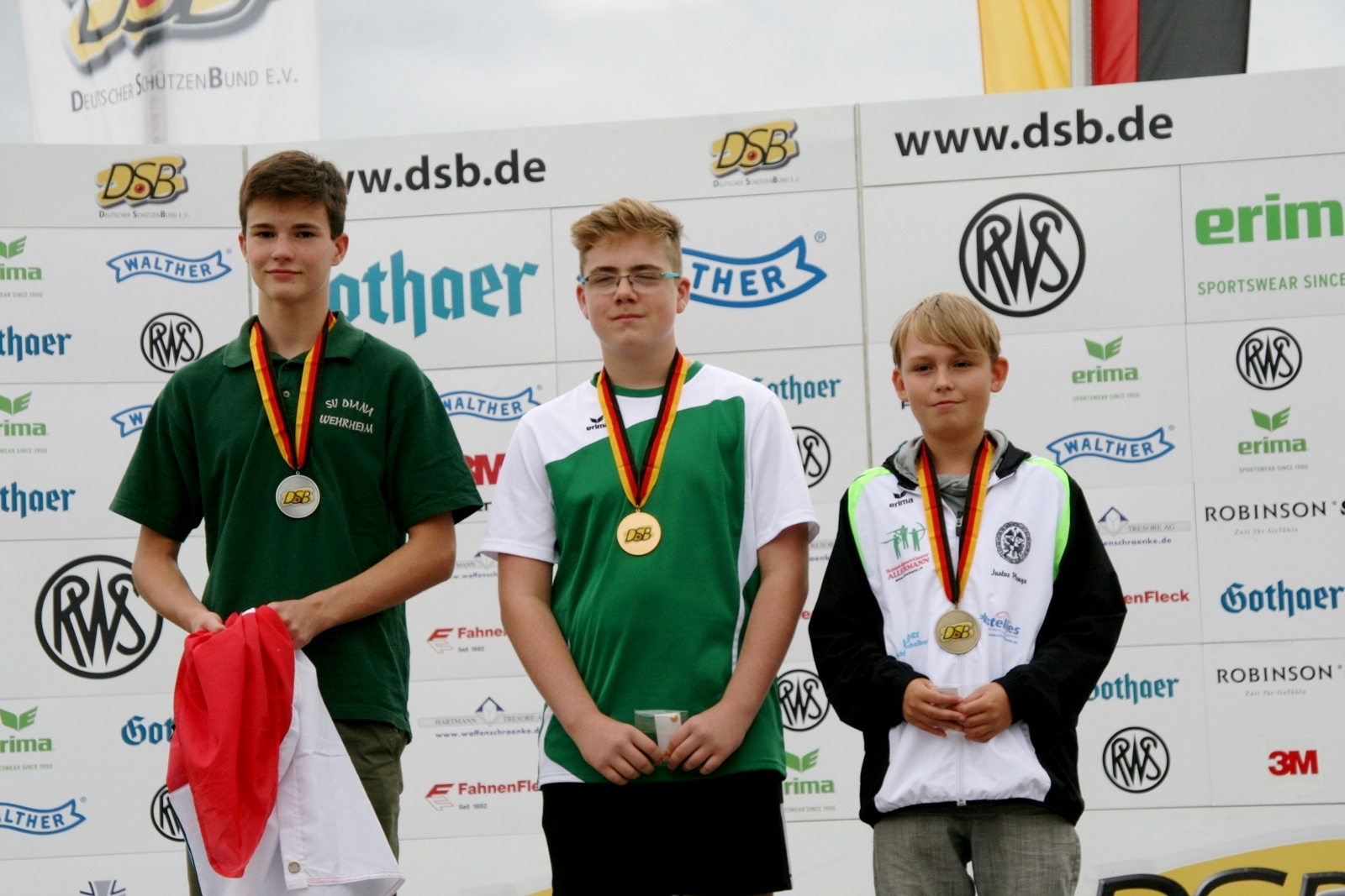 ...ein sehr glücklicher Justus nach Empfang der Medaille mit seinen "Mitstreitern" Lukas Naujoks (Priv. SSG zu Oschatz) und Marlon Hemmerle (SV Diana Wehrheim)