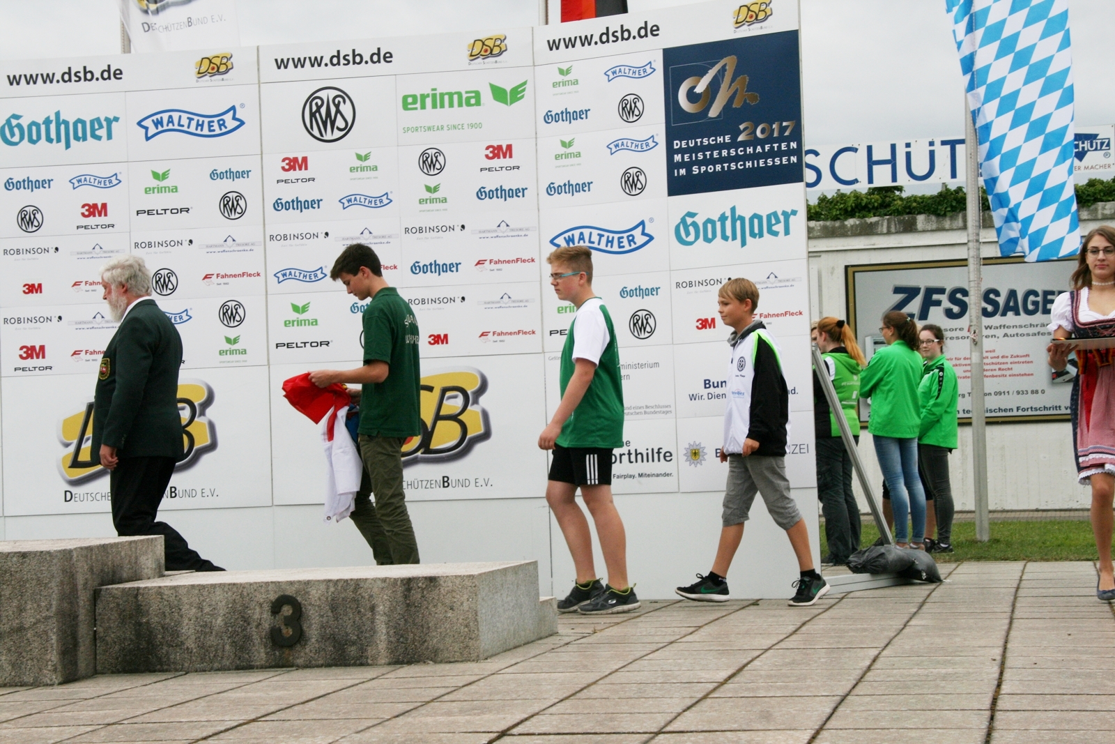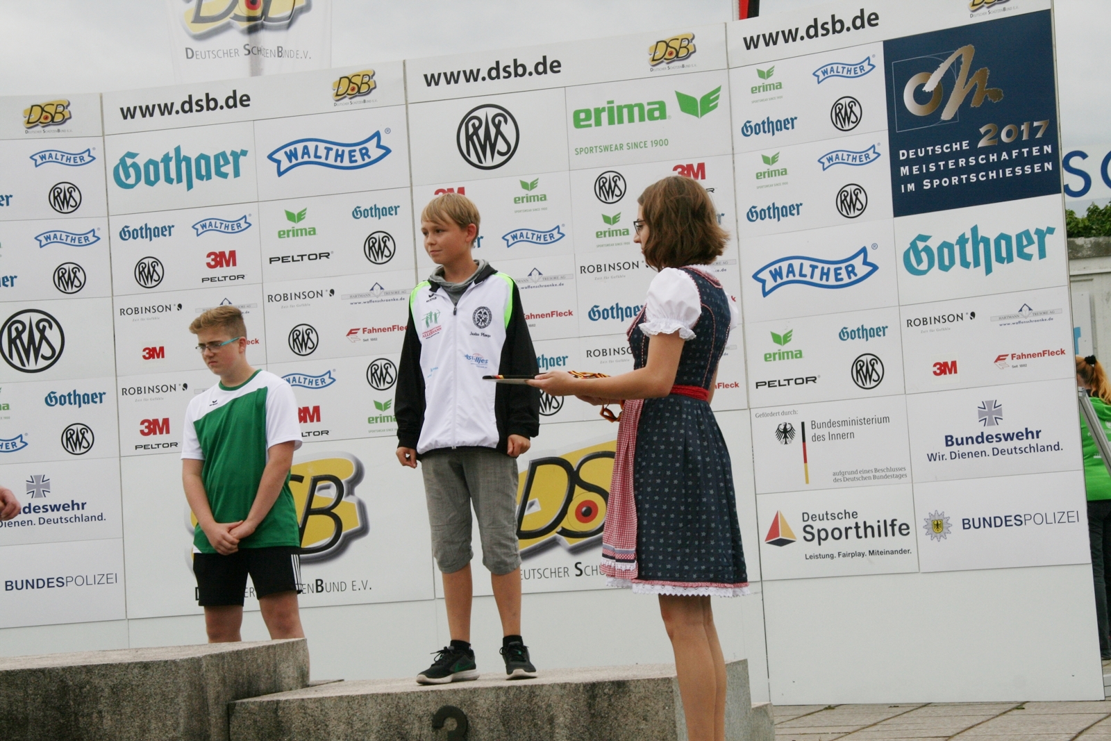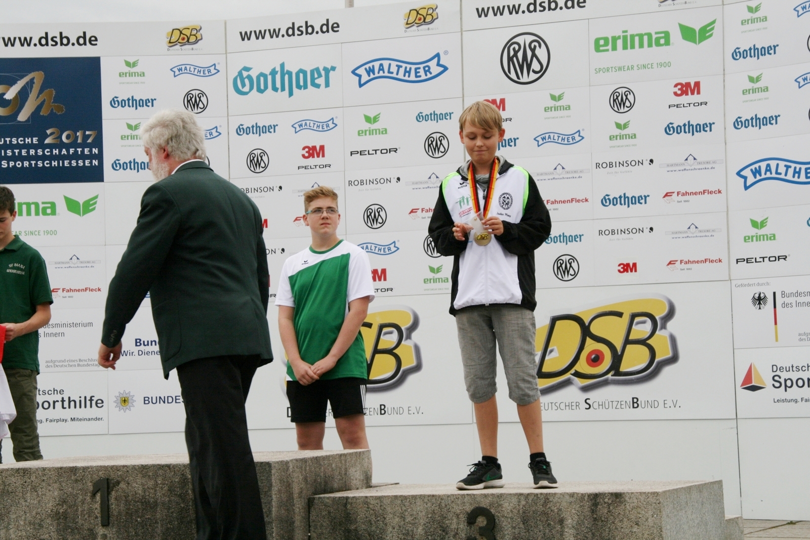 ...ein sehr glücklicher Justus nach Empfang der Medaille mit seinen "Mitstreitern" Lukas Naujoks (Priv. SSG zu Oschatz) und Marlon Hemmerle (SV Diana Wehrheim)