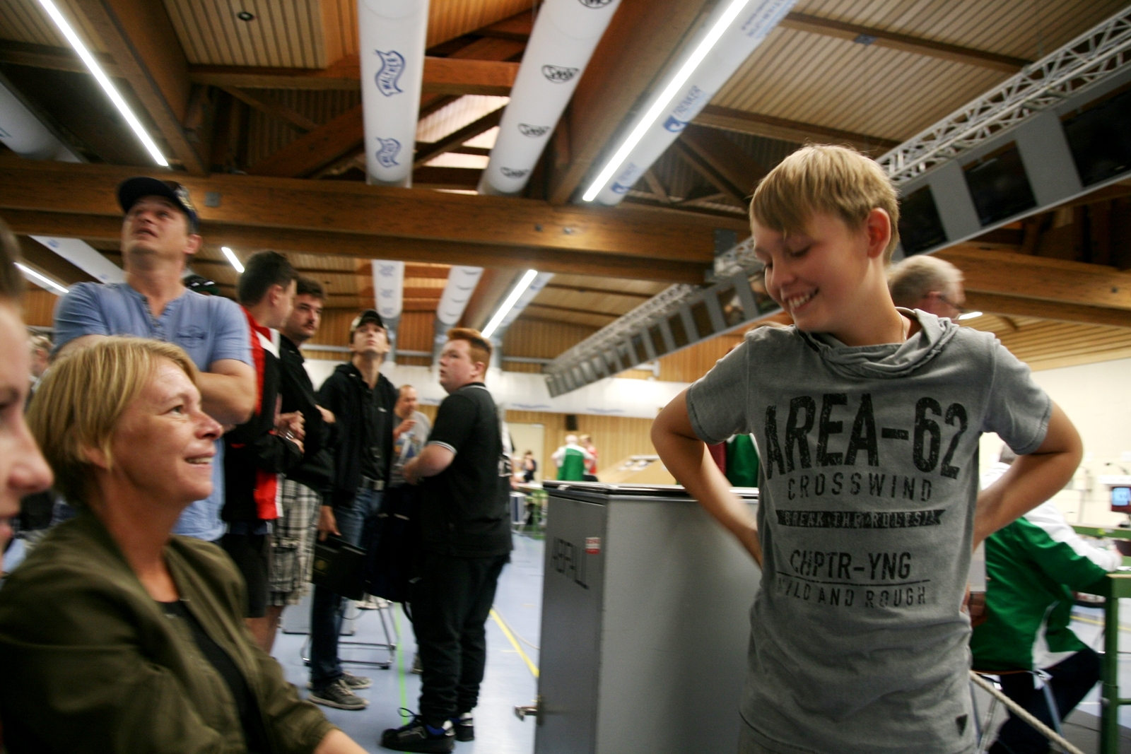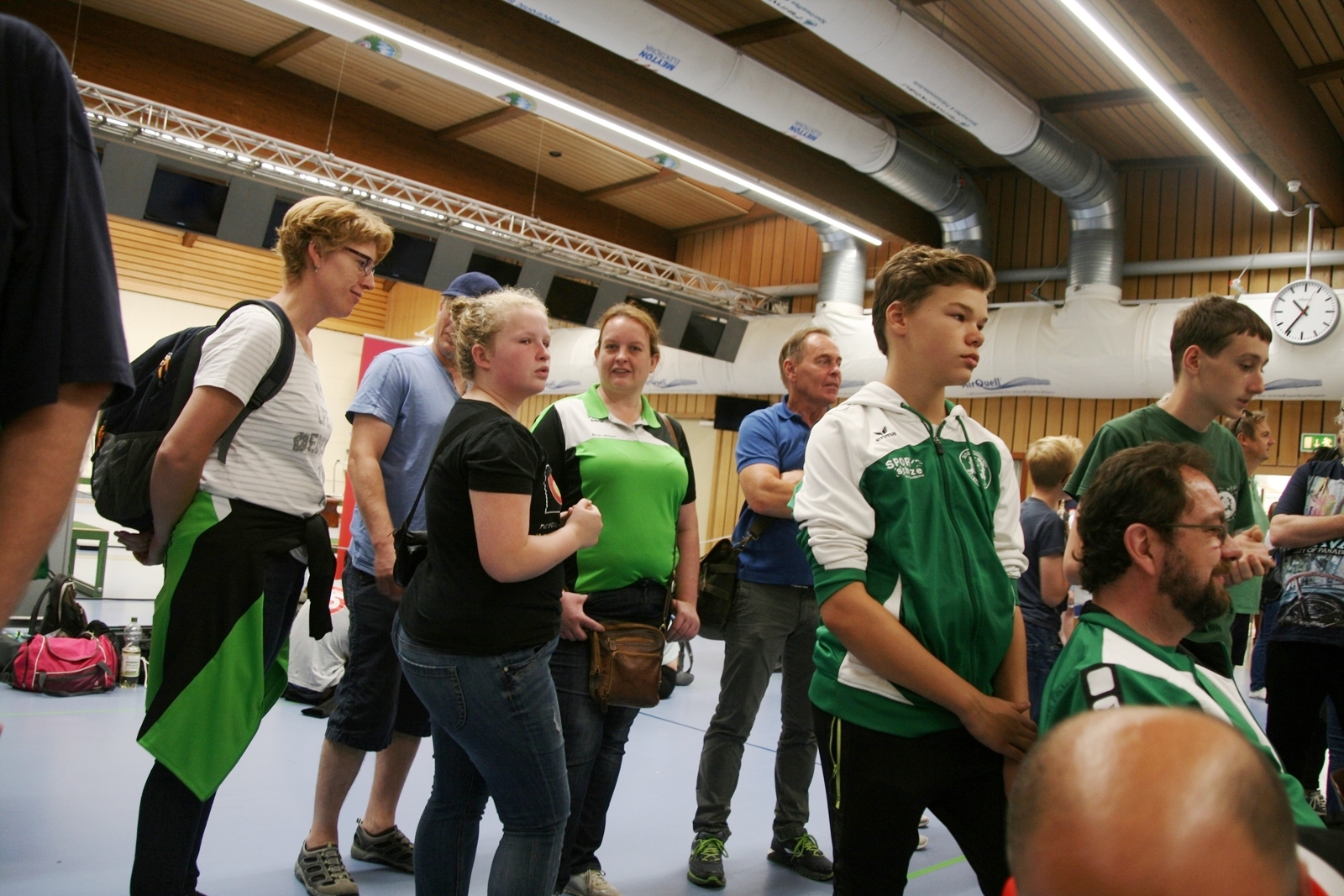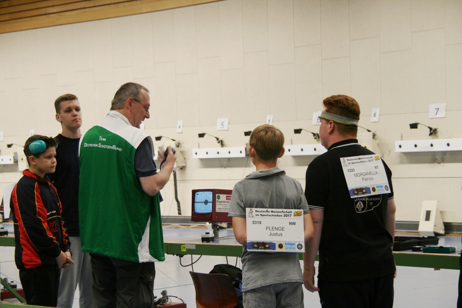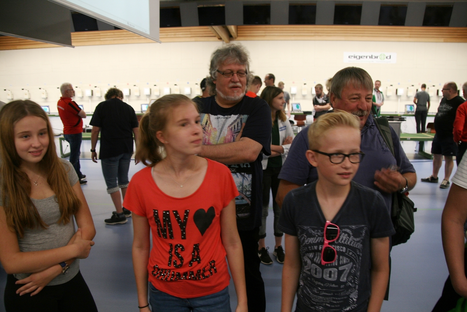 Schon am frühen Morgen um 8:35 Uhr hatte Justus seinen Start mit der mehrschüssigen Luftpistole in der Luftdruckhalle. In seiner Schülerklasse waren 47 Schützen gemeldet. Zu Beginn wurde ihre Gruppe mit vier Schützen aufgerufen und ihnen der Ablauf des Wettkampfes von einem Helfer des DSB erklärt. Seine ersten Treffer begannen "verhalten" mit zwei 4er Treffern, dann schien ihn nichts mehr aus der Ruhe zu bringen: es folgten dann vier Serien mit jeweils fünf Treffern! Mutter und alle Fans waren begeistert, unter ihnen auch unser Bezirkspräsident Karl-Friedrich Scharrelmann(auch mit ihm hatten sie die Mehrschüssige trainiert) Bezirkstrainerin Karin Husmann, Jugendsportleiterin Britta Löhmann, Stellvertretende Damensportleiterin Claudia Reuter sowie Pressewartin Marianne Vallan und sparten nicht mit Beifall! Es stellte sich dann heraus, dass ein weiterer Schütze 28 Treffer hatte. Es blieb bis zum letzten Durchgang spannend.
