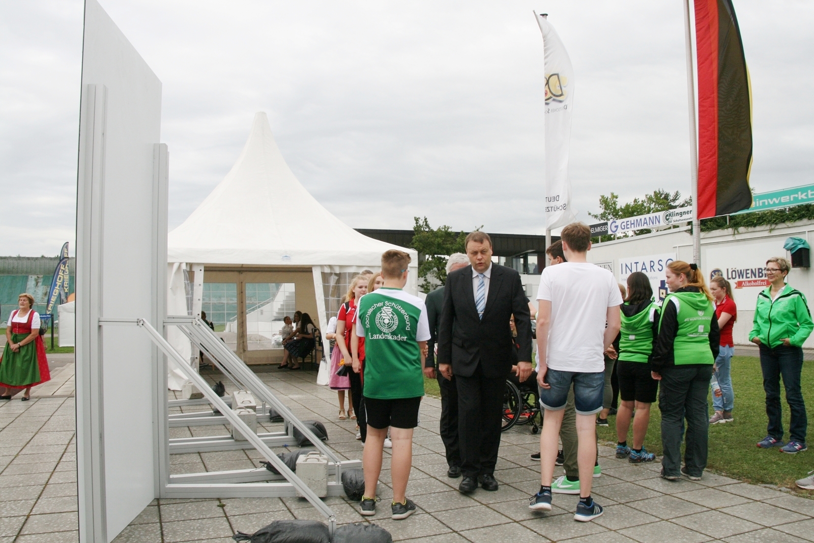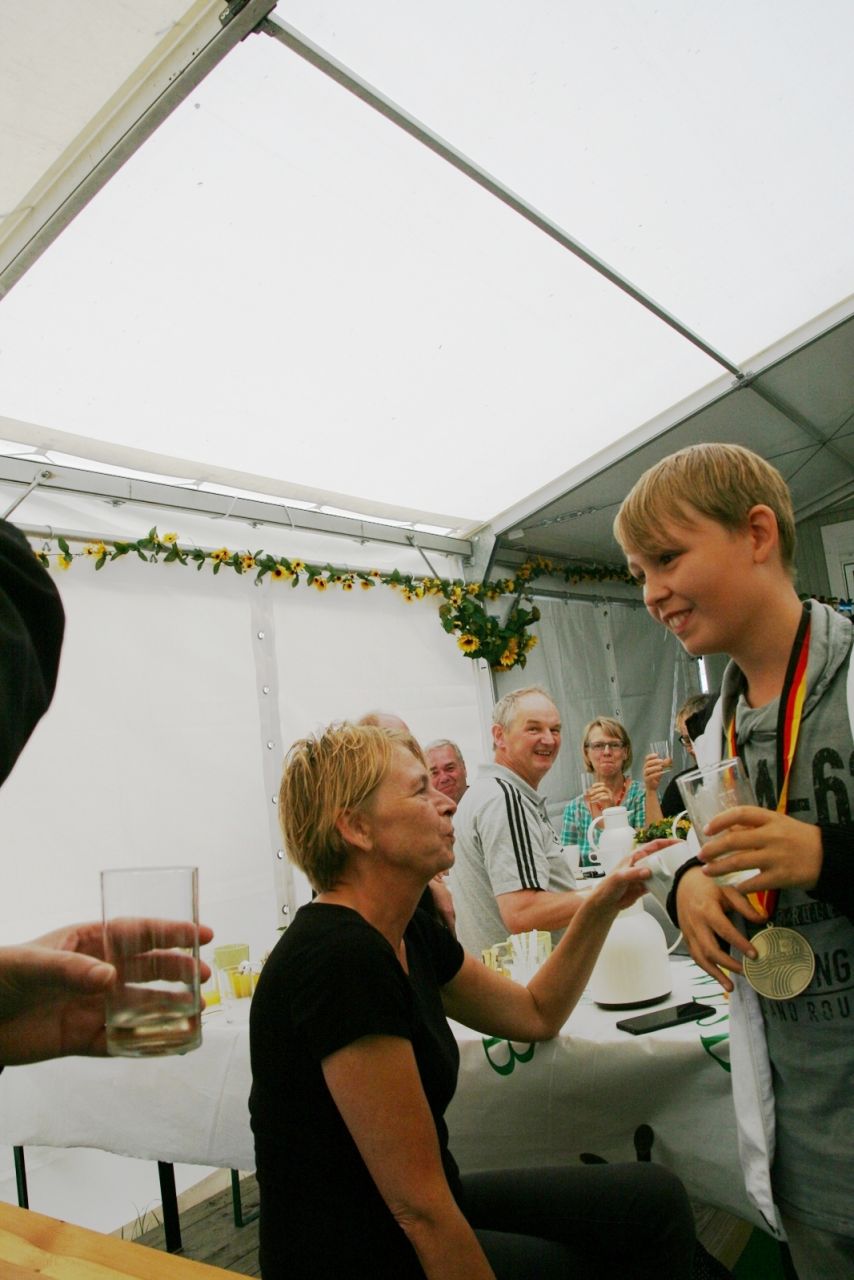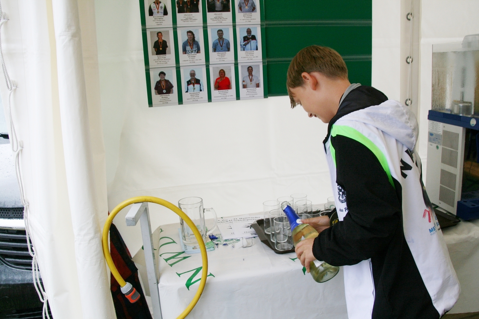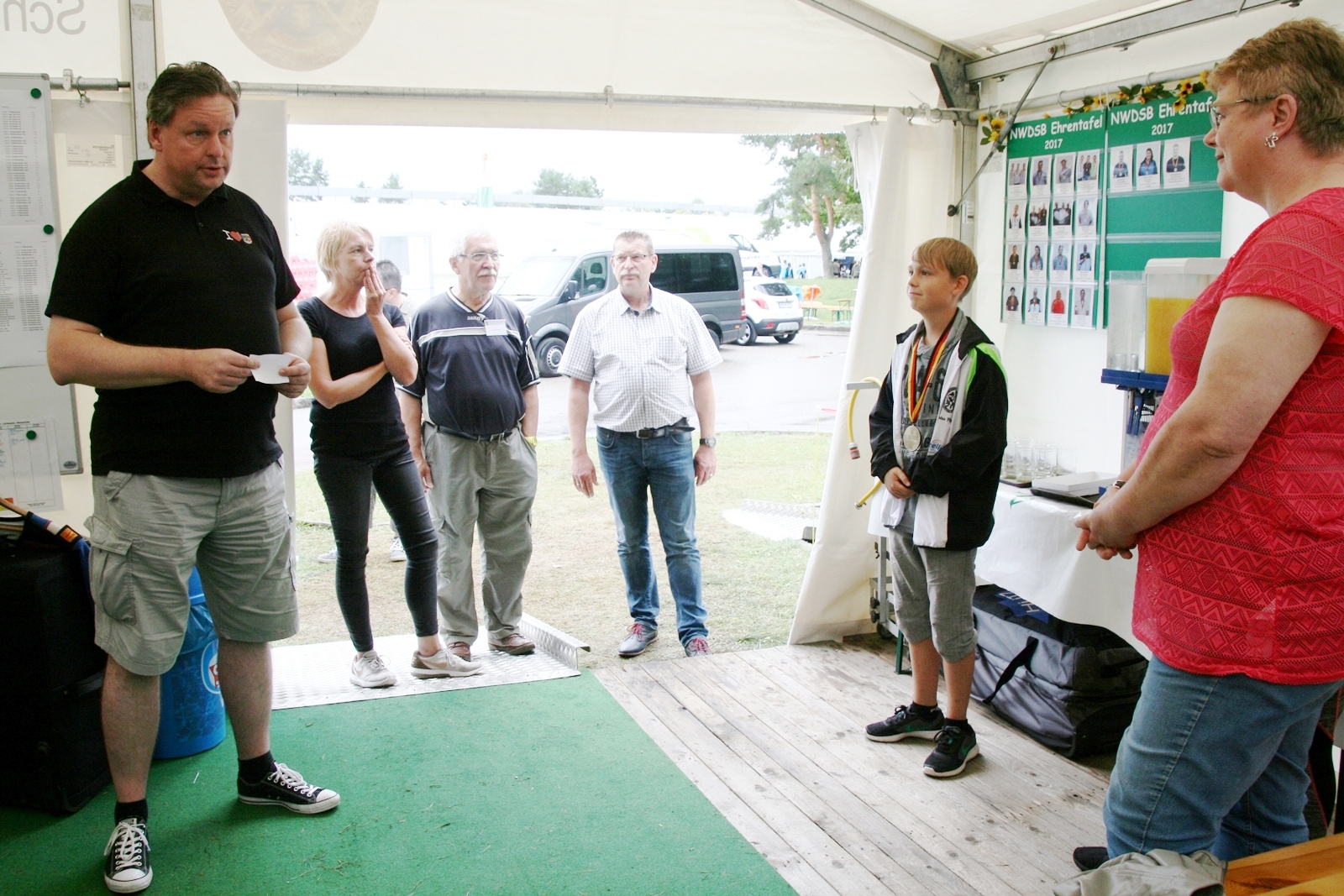 Im NWDSB-Zelt hielt Frank Pingel, Vizepräsident des NWDSB, eine kleine Laudatio auf Justus 's ereignisreichen heutigen Tag.
