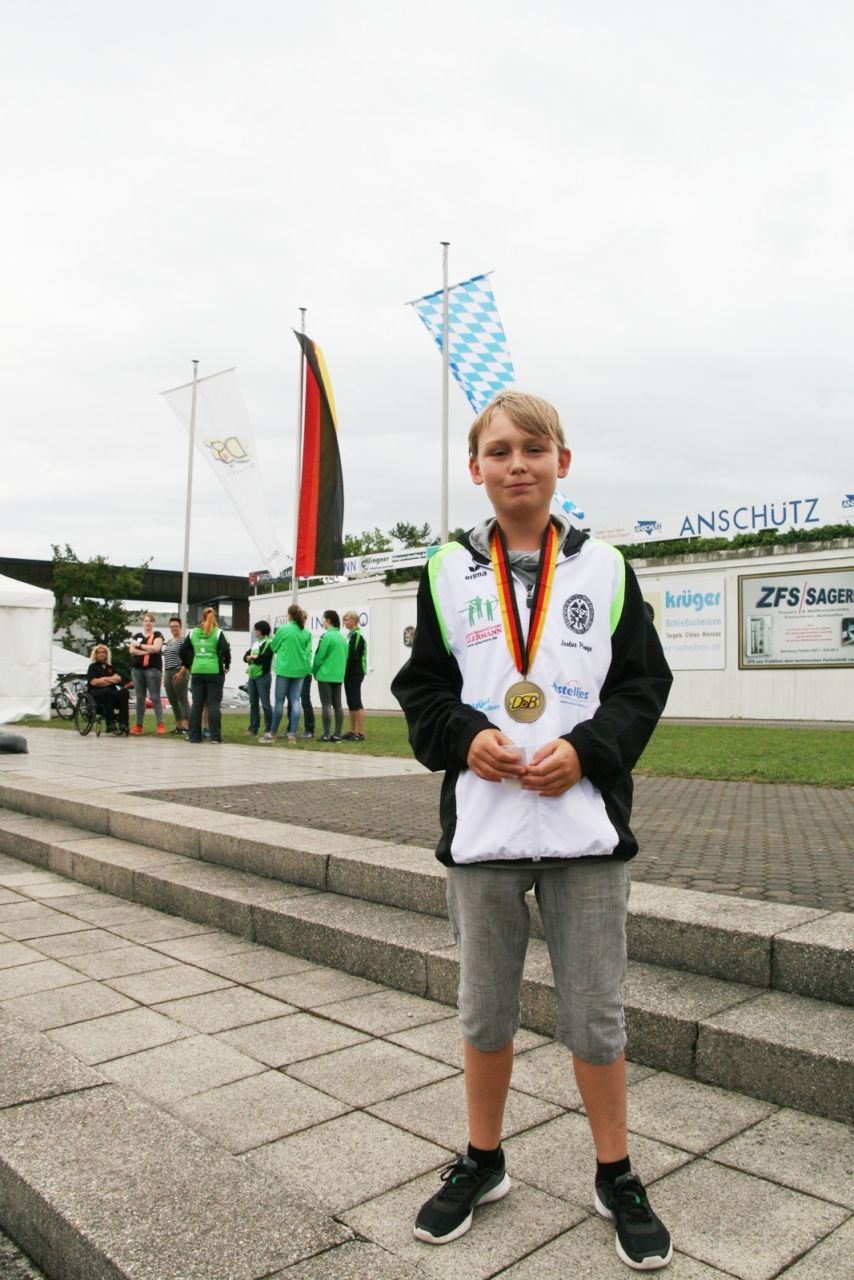 Die Freude war groß, als sich herausstellte, dass zwar ein Schütze noch einen Treffer mehr hatte, also 29, es sonst aber keinen mehr mit 28 Treffern gab. So war dann ein Stechen angesagt. Die Prognose im Bereich einiger Trainer, es wird wohl nichts mit einer Medaille werden, stellte sich nun als falsch dar: denn es ging nun nur noch um die "Farbe" der Medaille für Justus: SILBER oder BRONZE!