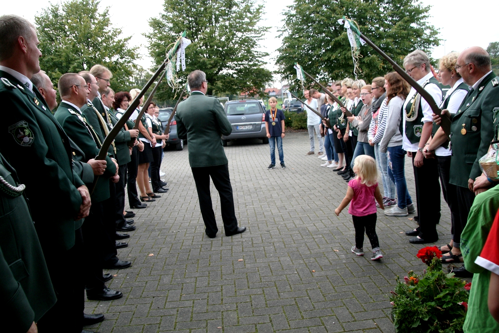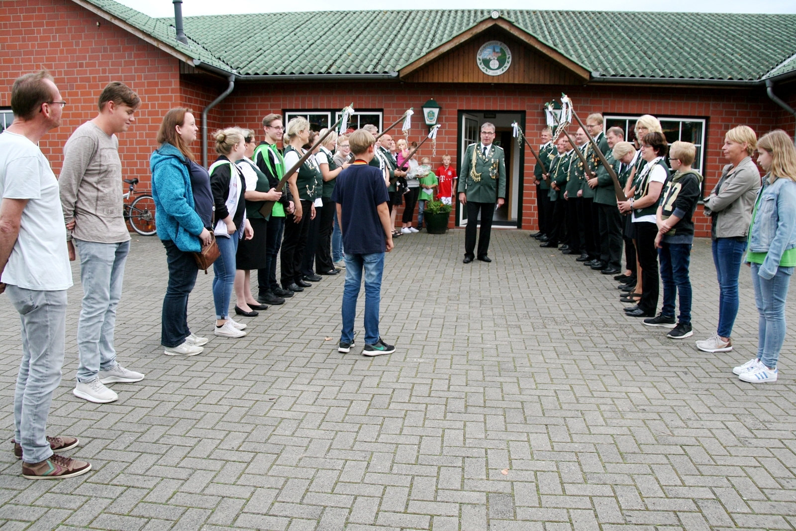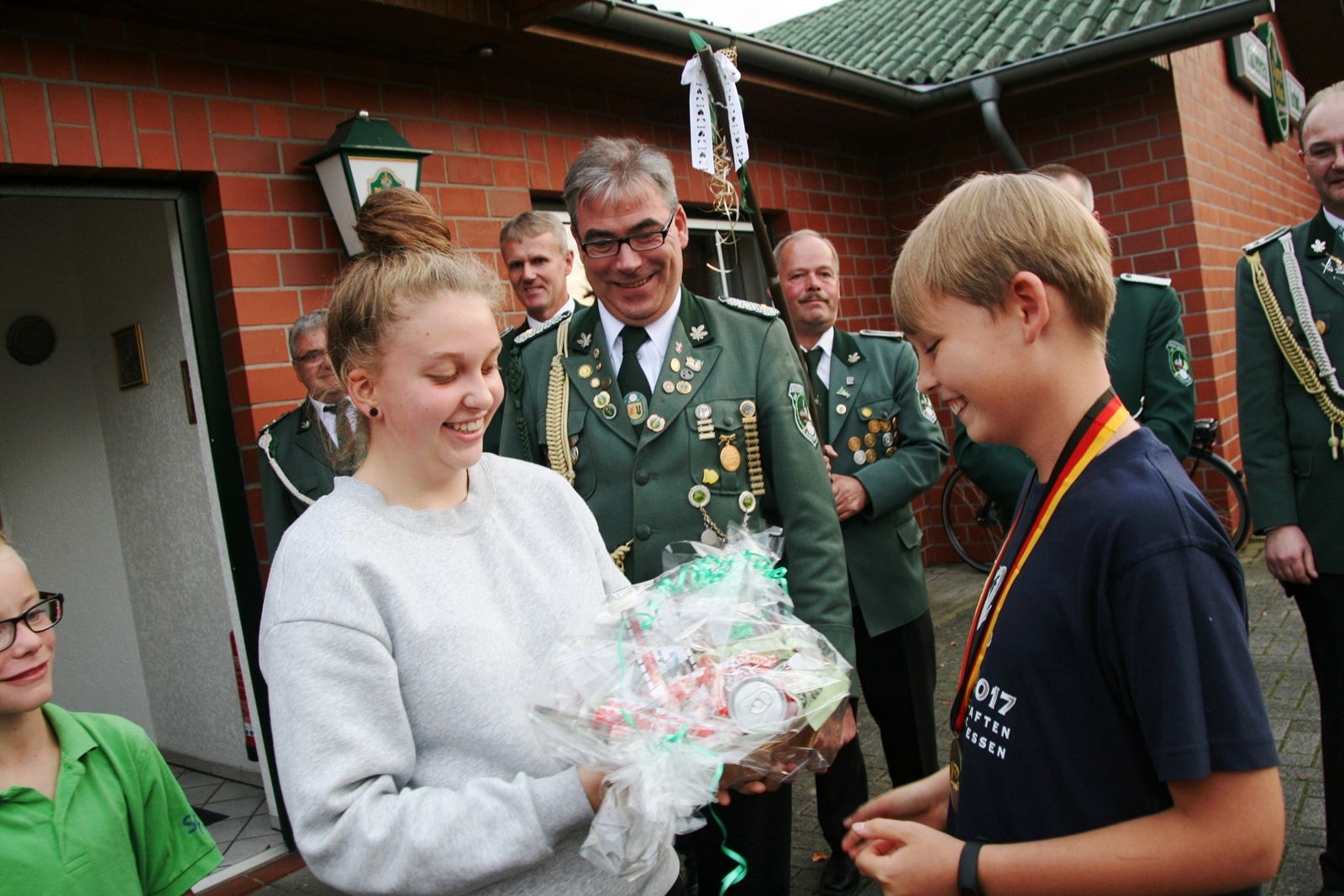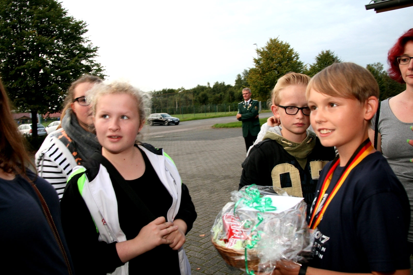 Ein herzlicher Empfang wurde Justus Plenge für das Erringen seiner BRONZEMEDAILLE bei den Deutschen Meisterschaften mit der mehrschüssigen Luftpistole in München vom Schützenverein Kirchdorf bereitet. Traditionsschützen und Gäste trafen sich hier zum feierlichen Empfang.
