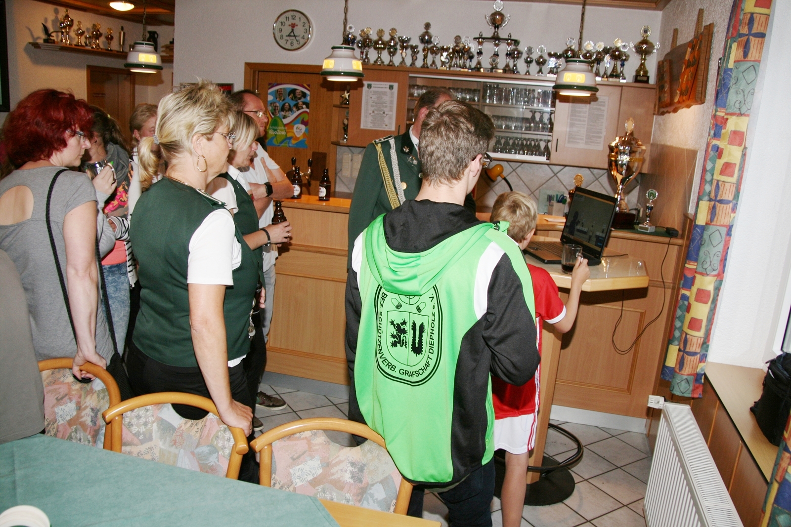 Es schloß sich ein kleiner Umtrunk mit guten Gesprächen an, da zu konnte auf einem Laptop sein Wettkampf u. die Siegerehrung angeschaut werden. Die Videos hatte Pressewartin Marianne Vallan in München aufgenommen, als Erinnerung an die erfolgreiche Teilnahme an der Deutschen Meisterschaft.