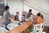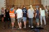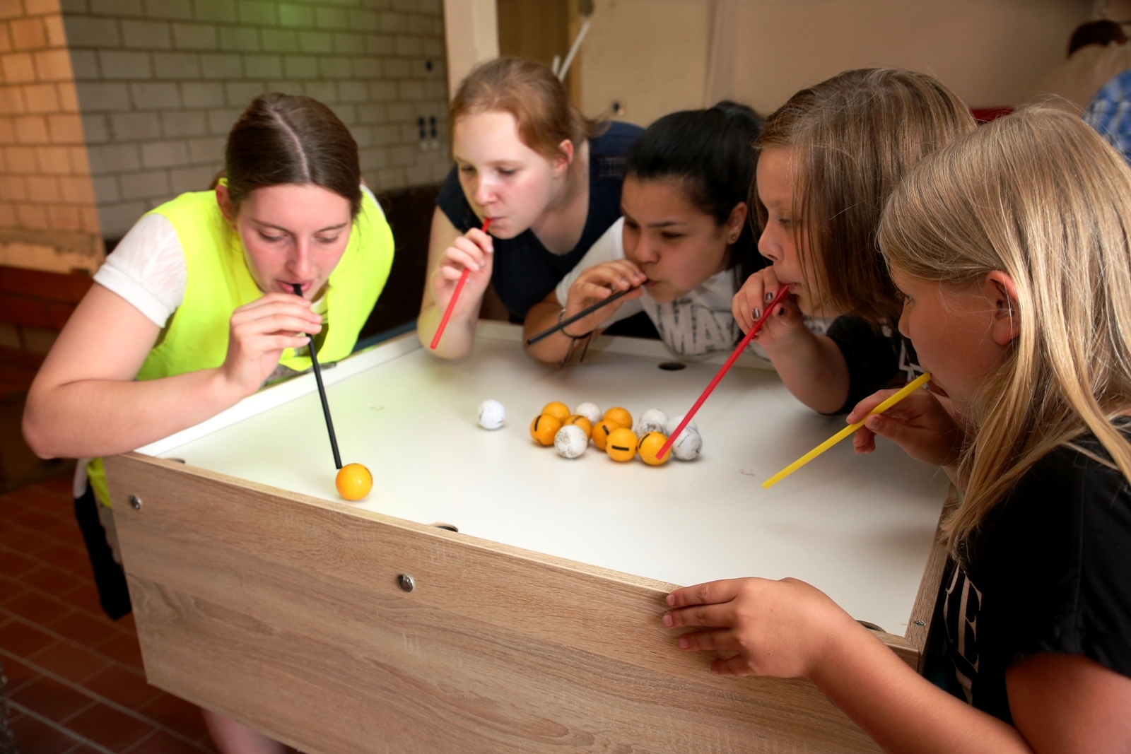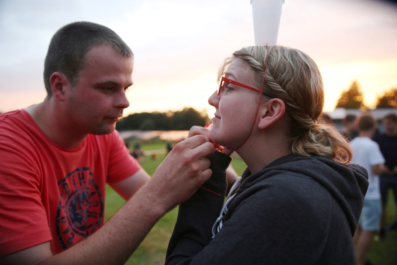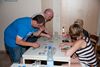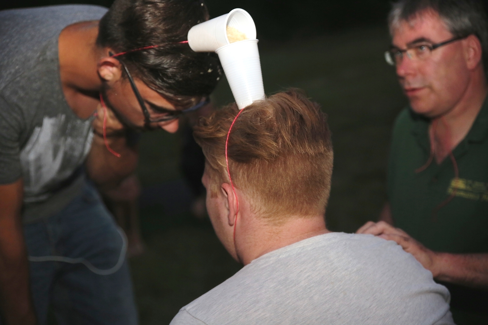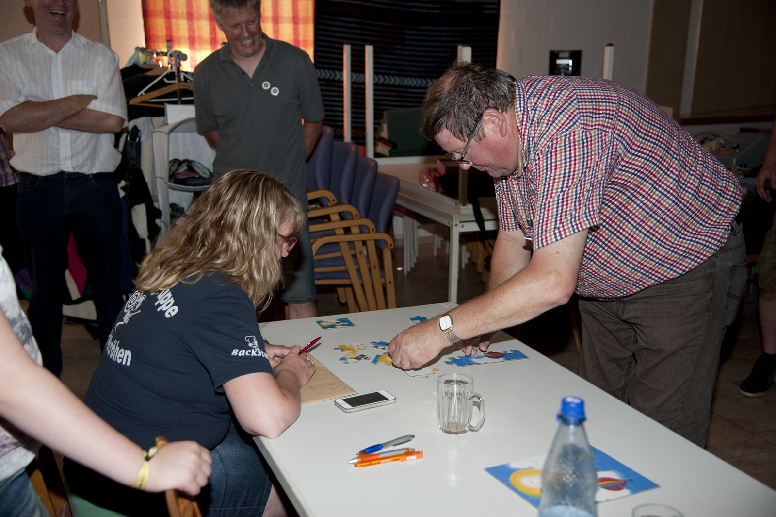 Am ersten Tag fand nach dem Zeltaufbau die Begrüßung durch Kreispräsident Gerd Griffel und Präsident des gastgebenden Kriegerschützenvereins Heiko Meyer statt. Stellvertretender Kreispräsident Bernd Dammeier und Bogenreferent Jürgen Vogt machten durch Anbringung einer Plakate an die Eingangspforte die Eröffnung offiziell. Im Anschluss an die Begrüßung stand das Abendessen und eine ca. 3,5 km lange Dorfrallye auf dem Programm. Verschiedene Wettbewerbe standen dabei natürlich auf dem Programm, so dass der Spaß vor allem im Vordergrund stand. So gab es für die Mannschaften sehr tolle Aufgaben zu bewältigen zum Beispiel "Tischtennisblasen", "Weckglasgummischießen", Holzfiguren mussten mit einem Tennisball umgekippt werden oder möglichst schnell einen Golfball durch einen Feuerwehrschlauch "bugsieren", beim Bocciaspiel möglichst dicht mit den Kugeln an eine Markierung werfen, zwischendurch mussten gemeinschaftlich viele spezielle Fragen beantwortet werden. Bei diesen Spielen am Abend sicherte sich das Team Strange-Buchhorst 4 (109 Punkte)den Sieg vor dem Team Strange-Buchhorst 1 (106 Punkte), gefolgt vom Team des KSV Ströhen 2 (98 Punkte). Nicht zu vergessen die "Taufe" von Miriam Tacke vom KSV Ströhen! Mit voller "Montur" wurde sie kurzerhand ins erfrischende Wasser des "Strohpools" geworfen. So ging mit viel Spaß dieser erste ereignisreiche Tag zu Ende.