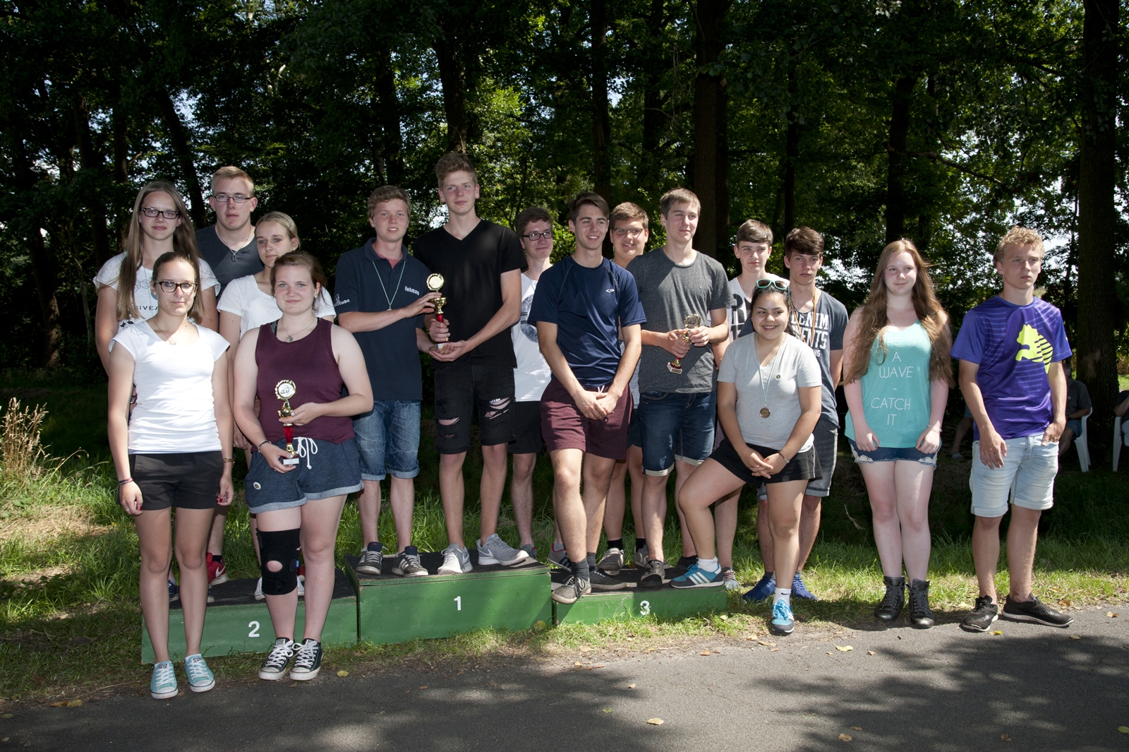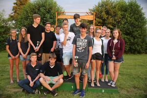 Zum Abschluss des Zeltlagers fand dann die Siegerehrung statt. In der Mannschaftswertung bis 11 Jahre lag der KSV Ströhen (2:31 Min.) knapp vor dem SV Strange-Buchhorst (2:40 Min.) und dem SV Dörrieloh (3:02 Min.). In der Altersgruppe 12 bis 14 Jahren lag die Mannschaft des KSV Ströhen (1:46 Min.) vor dem BSV Ströhen (2:02 Min.). In der Altersgruppe 15 bis 18 Jahren siegte der KSV Ströhen (1:35 Min.) wiederholt vor dem SV Dörrieloh (1:45 Min.) und dem SV Strange-Buchhorst (2:00 Min.). In der Einzelwertung weiblich bis 11 Jahre konnten Neele Marie Hadeler (SV Strange-Buchhorst), Lea-Sophie Stahlhofen (SV Strange-Buchhorst) und Okka Zierden (SV Scharringhausen) beste Ergebnisse erzielen. In der Altersgruppe männlich bis 11 Jahren sicherte sich Maximilian Harlaß (KSV Ströhen) vor Felix Lohmeier (SV Scharringhausen) und Milo Pätzold (SV Scharringhausen) den Sieg. In der Altersgruppe 12 bis 14 Jahren weiblich siegte Melina Meyer (KSV Ströhen) vor Merle Hilgemeier (BSV Ströhen). Den dritten Platz teilten sich Leah Dröge und Maxime Finkenstedt(beide KSV Ströhen). Bei den männlichen Teilnehmern 12 bis 14 Jahren siegte Matteo Kropp (KSV Ströhen) vor Robin Wenzel (KSV Ströhen) und Lukas Wiegmann (SV Strange-Buchhorst). In der Altersgruppe 15 bis 18 Jahren weiblich sicherten sich Carina Worthmann und Danica Wege (beide SV Dörrieloh) den ersten Platz vor Janika Schur (SV Dörrieloh) und Angy Gómez (SV Strange-Buchhorst). Bei den männlichen Teilnehmern 15 bis 18 Jahren gab es eine Sensation, denn es gab 3 Erstplazierte: Malte Dammeier und Mathis Wiegmann (beide SV Strange-Buchhorst) und Kai Lorch (KSV Ströhen). Platz 2 sicherte sich Jan Segelhorst (KSV Ströhen) und Platz 3 ging an Marvin Henkel (SV Strange-Buchhorst).