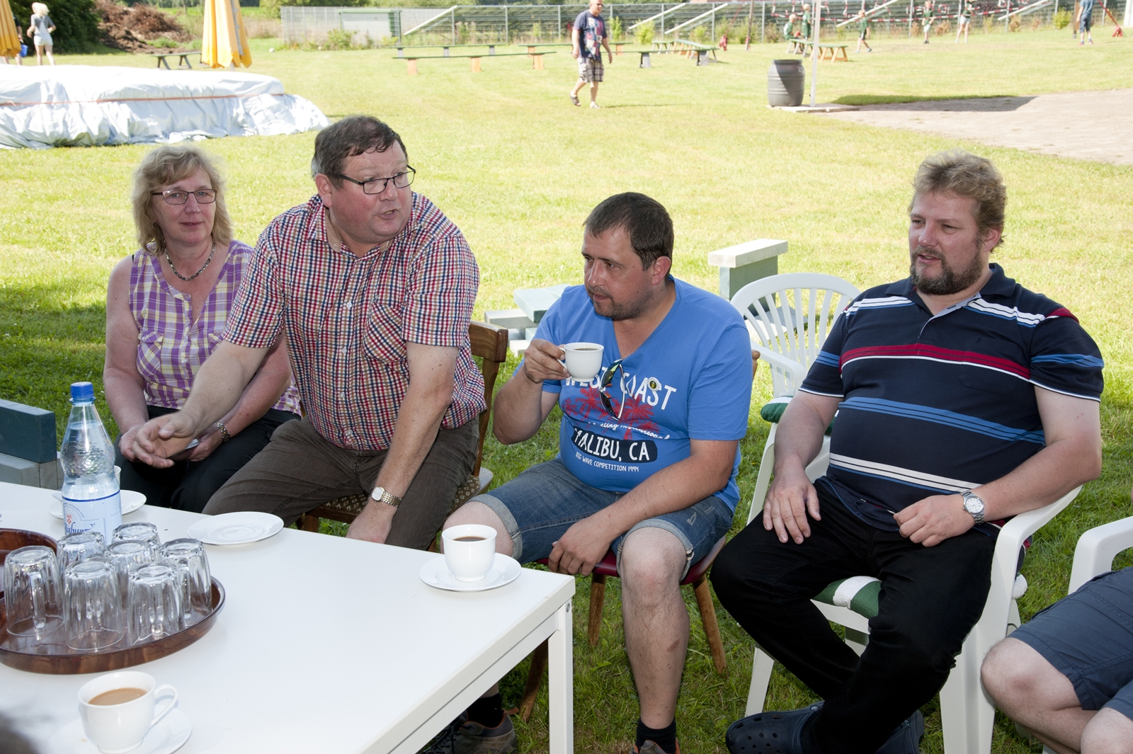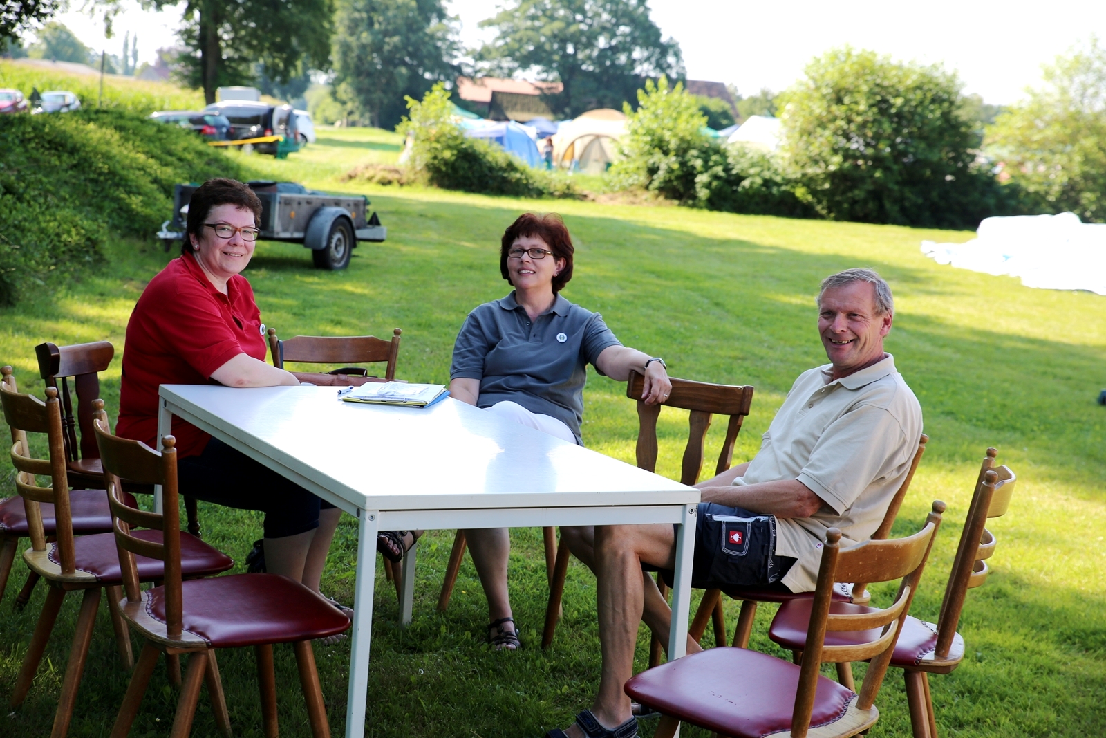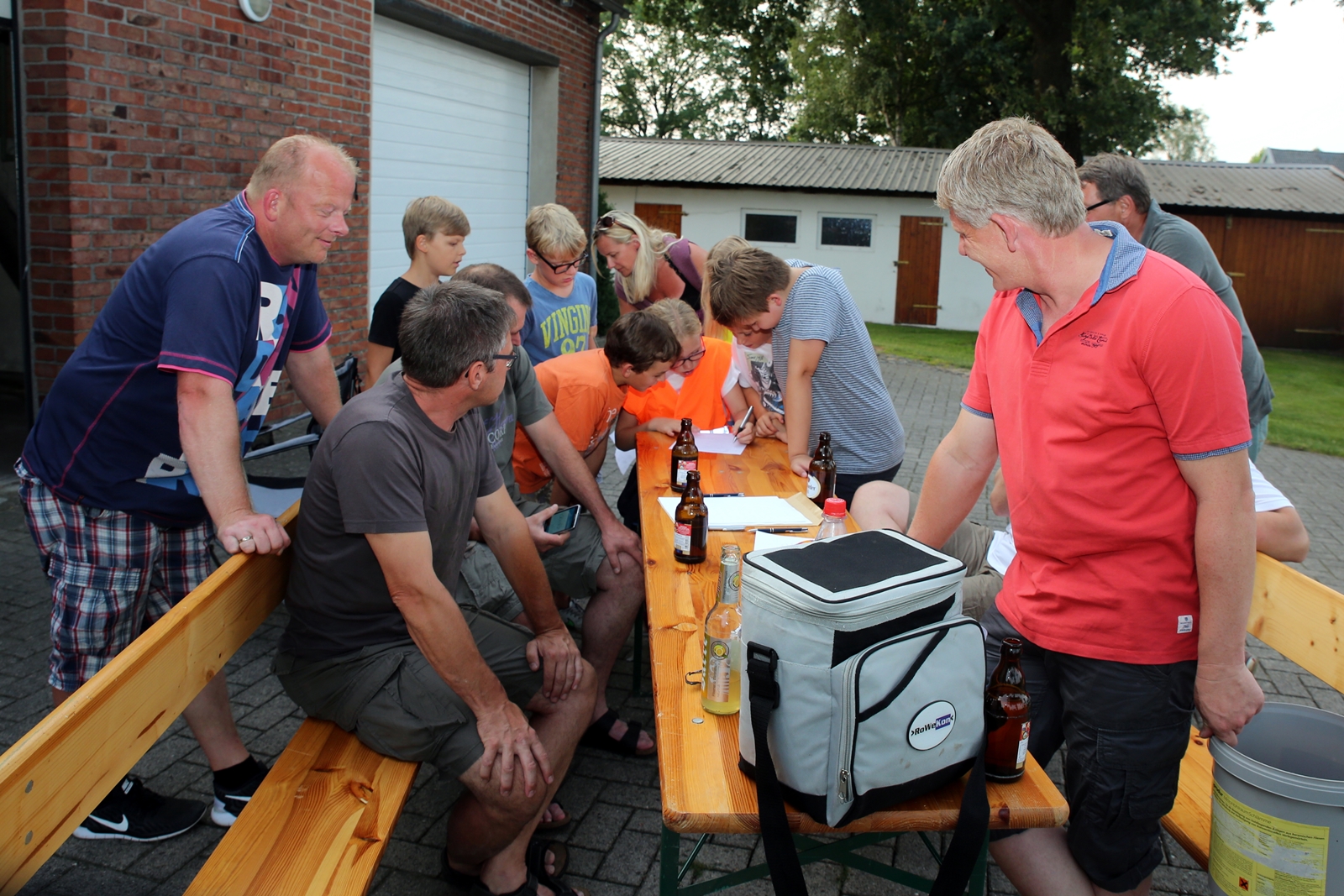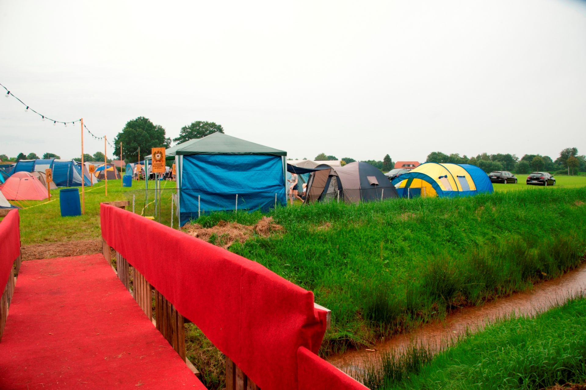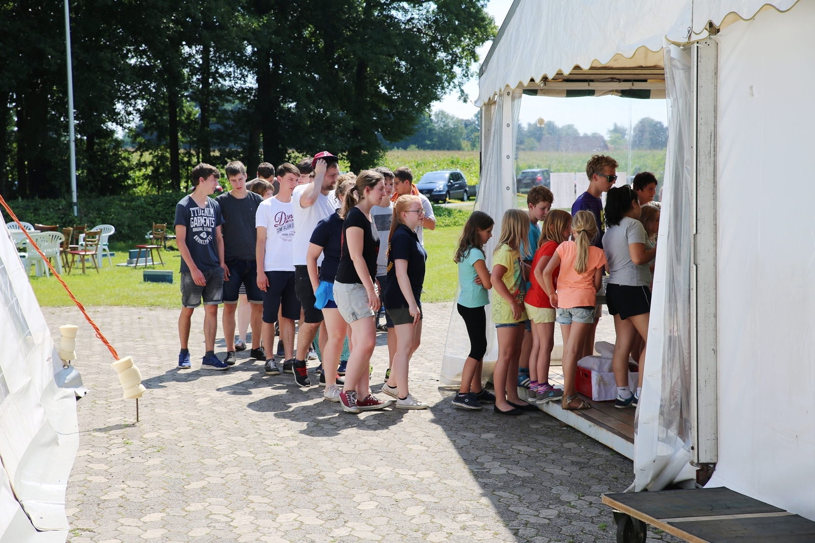 Der Freitagnachmittag stand im Zeichen der Anreise und des Zeltaufbaus beim Schießstand des KSV Ströhen, allerdings auf einem Nebenplatz, den ein Landwirt zur Verfügung gestellt hatte. So stand auf dem eigentlichen Schützenplatz genügend Raum zur Verfügung für ein großes Ess-Zelt, Umkleide- und Waschmöglichkeiten, verschiedene Spiel-Parcours sowie ein Pool-Becken, dass bei den teilweise tropischen Temperaturen zum Abkühlen einlud.