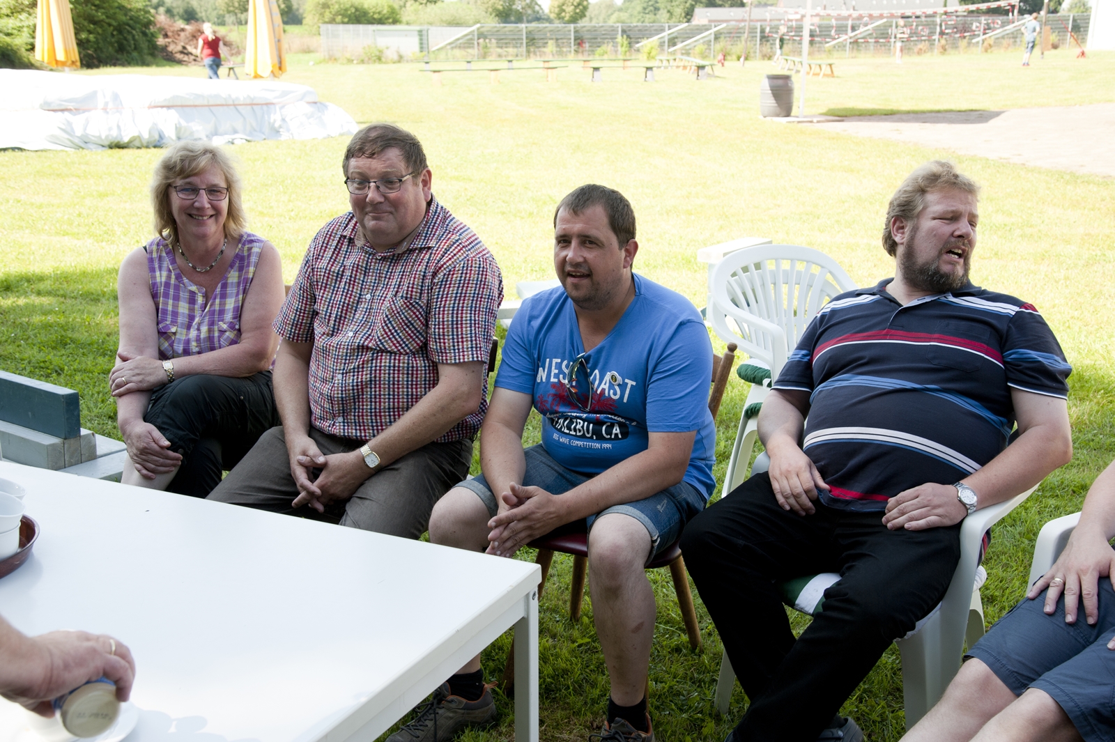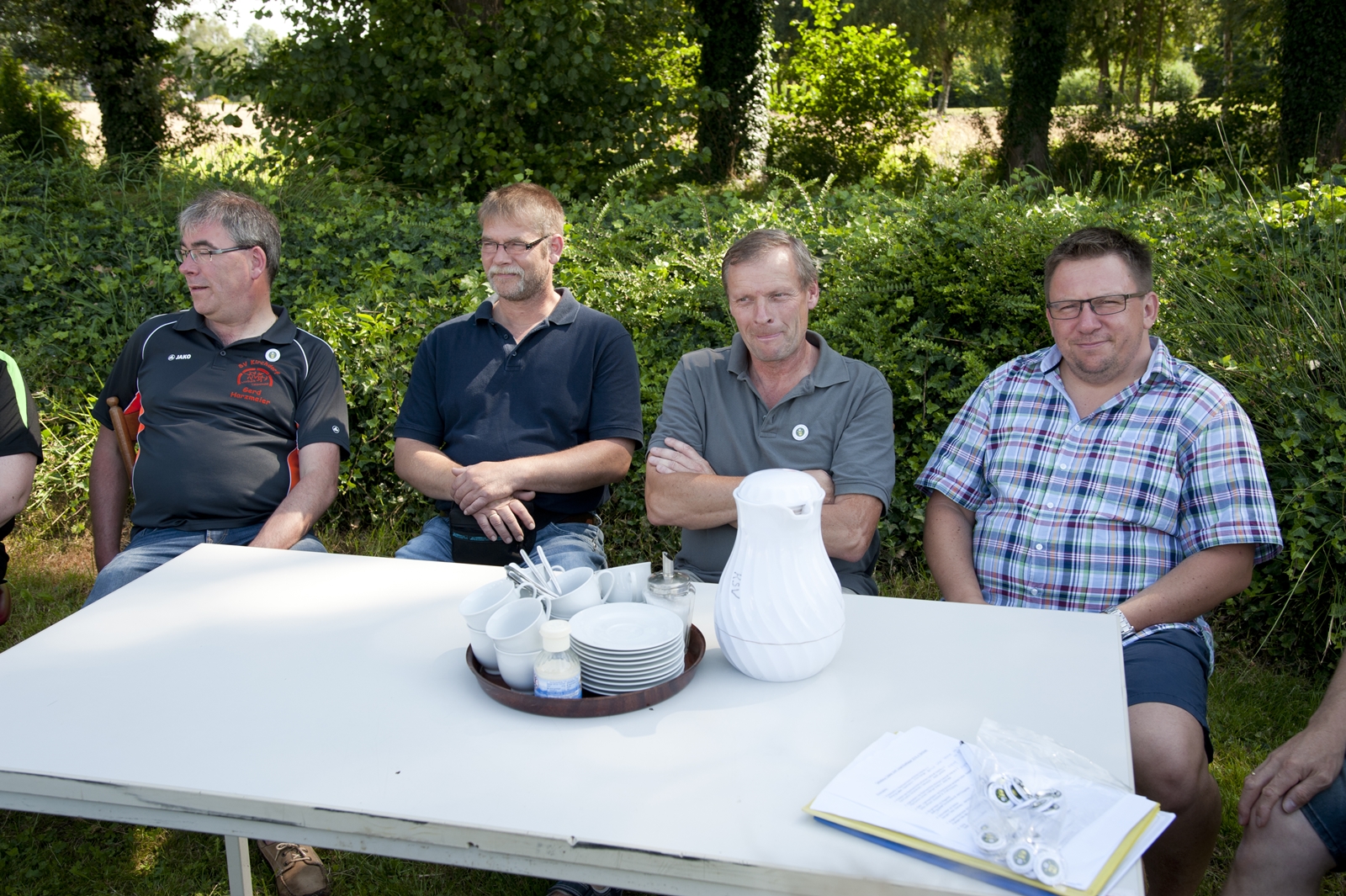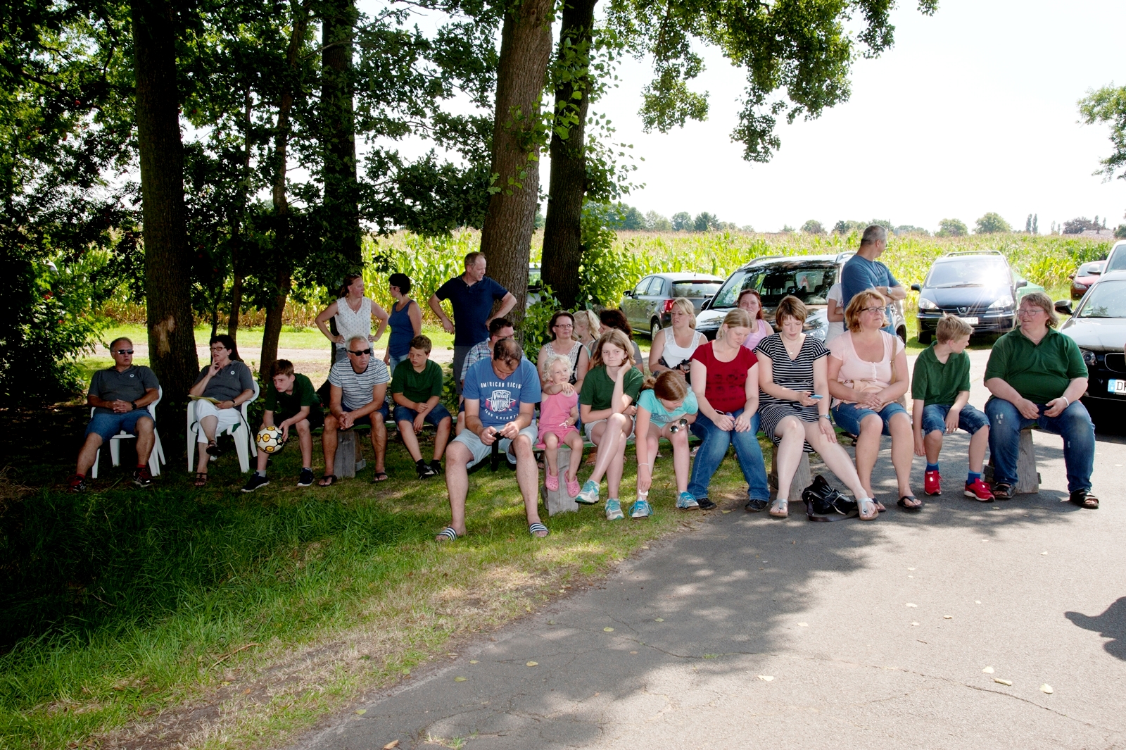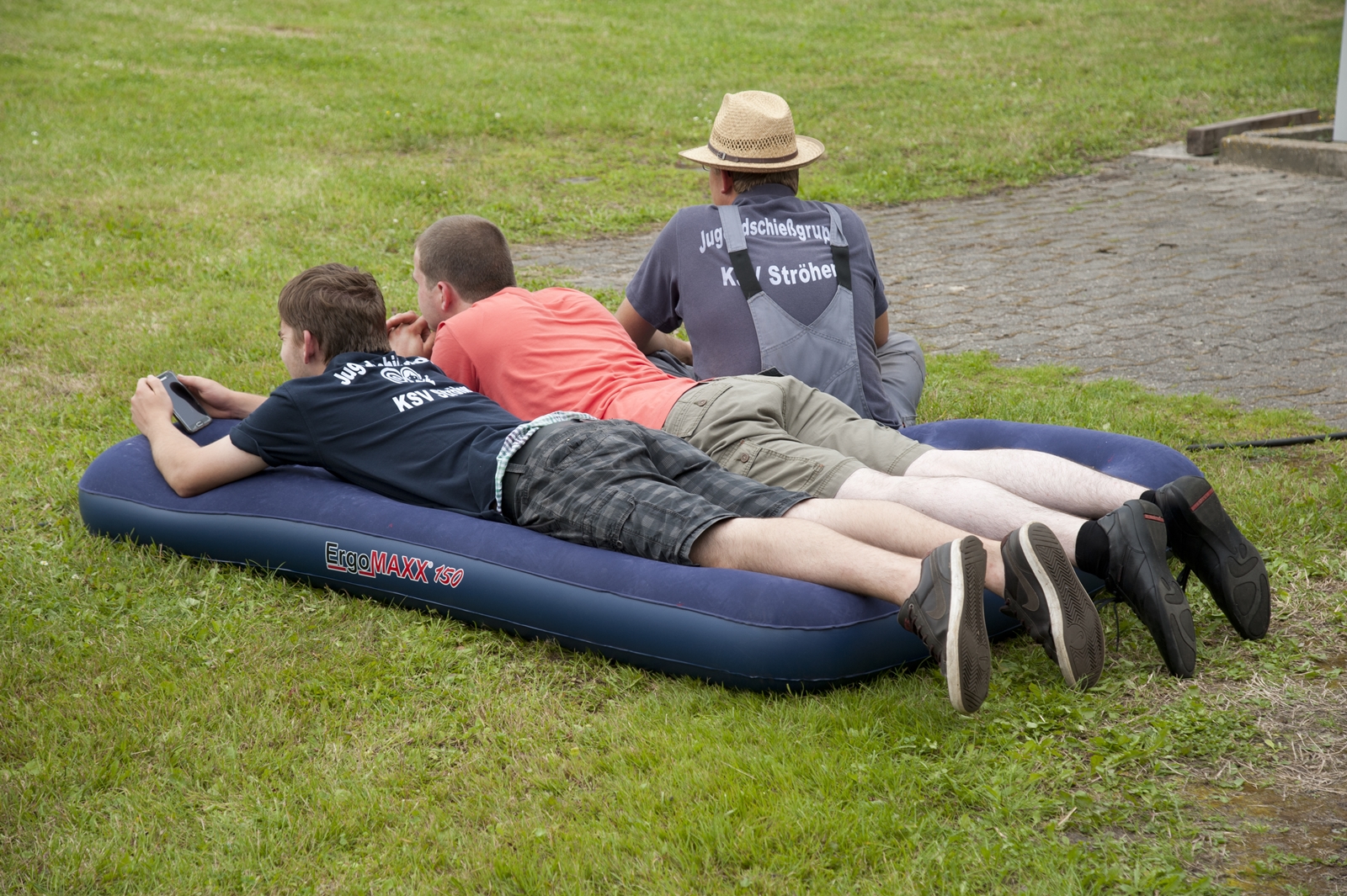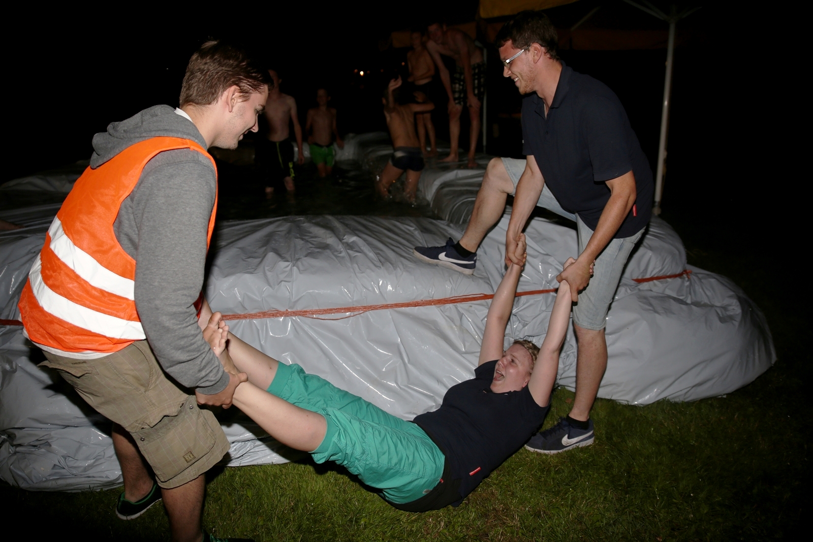 Der Freitagnachmittag stand im Zeichen der Anreise und des Zeltaufbaus beim Schießstand des KSV Ströhen, allerdings auf einem Nebenplatz, den ein Landwirt zur Verfügung gestellt hatte. So stand auf dem eigentlichen Schützenplatz genügend Raum zur Verfügung für ein großes Ess-Zelt, Umkleide- und Waschmöglichkeiten, verschiedene Spiel-Parcours sowie ein Pool-Becken, dass bei den teilweise tropischen Temperaturen zum Abkühlen einlud.
