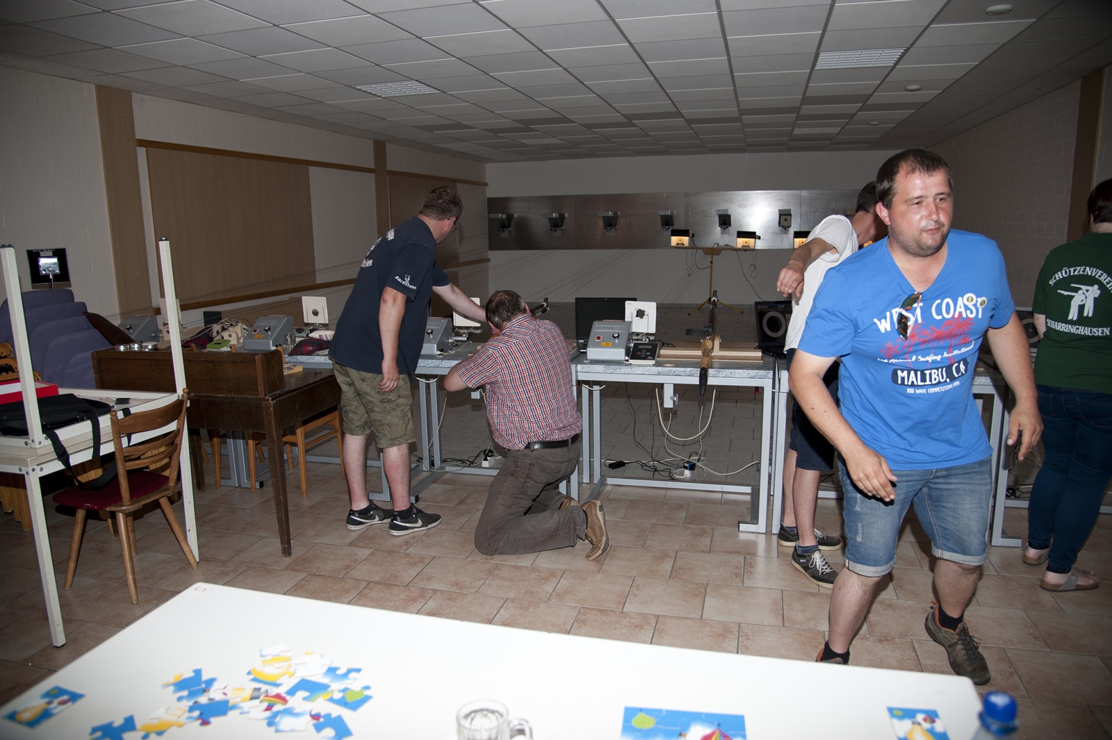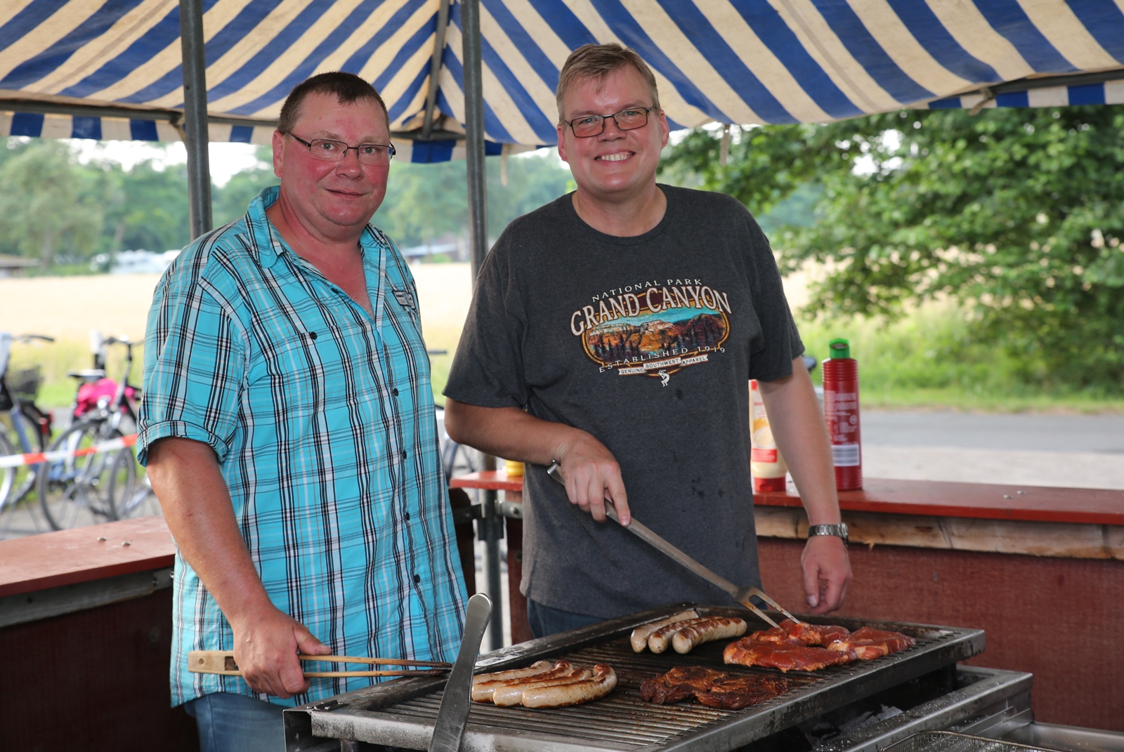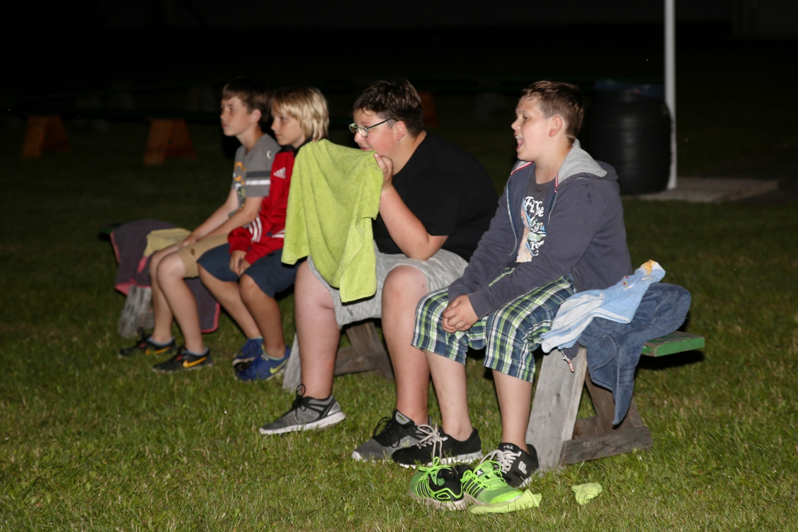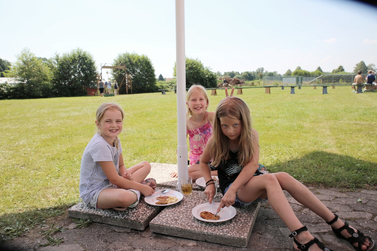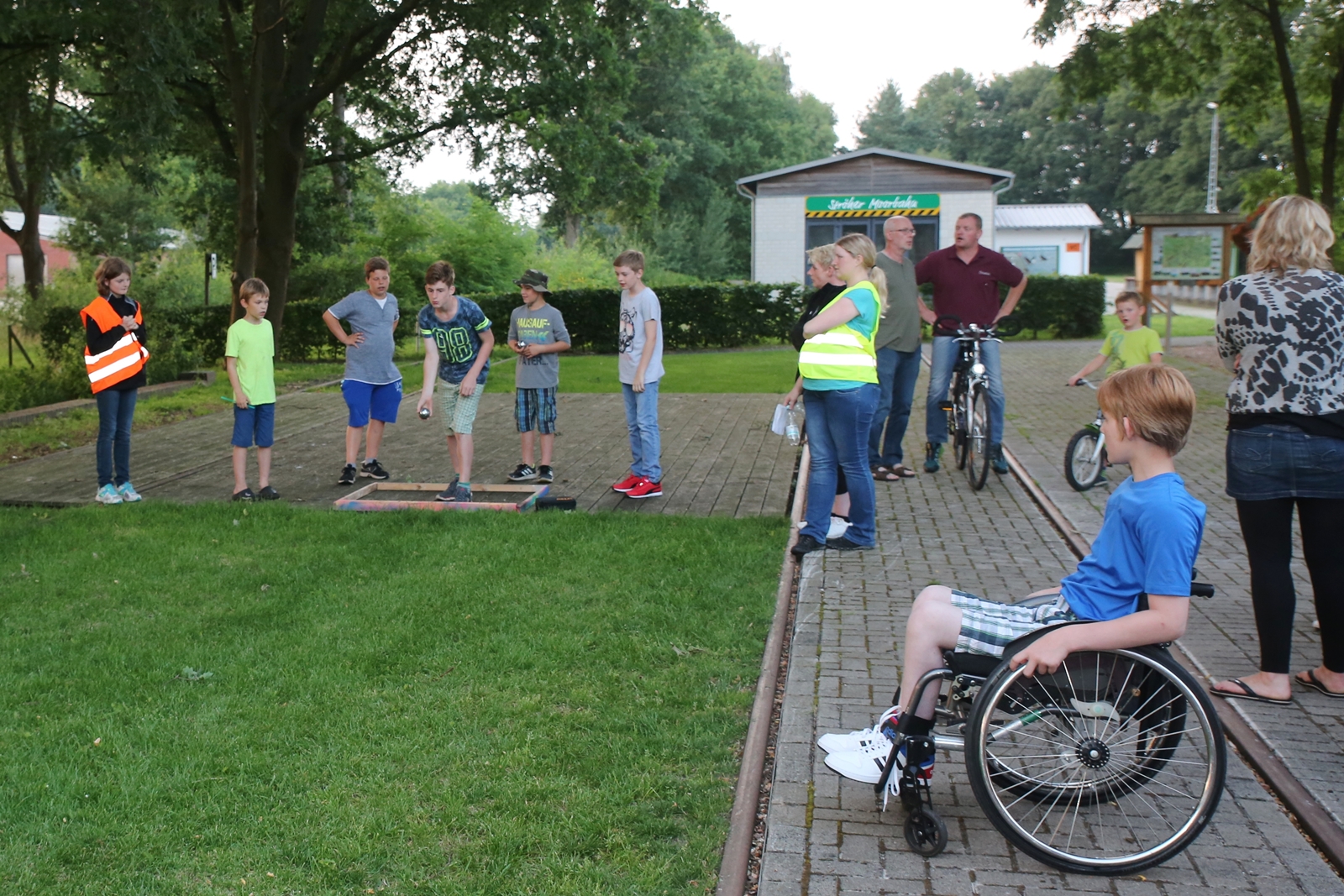 Der Freitagnachmittag stand im Zeichen der Anreise und des Zeltaufbaus beim Schießstand des KSV Ströhen, allerdings auf einem Nebenplatz, den ein Landwirt zur Verfügung gestellt hatte. So stand auf dem eigentlichen Schützenplatz genügend Raum zur Verfügung für ein großes Ess-Zelt, Umkleide- und Waschmöglichkeiten, verschiedene Spiel-Parcours sowie ein Pool-Becken, dass bei den teilweise tropischen Temperaturen zum Abkühlen einlud.