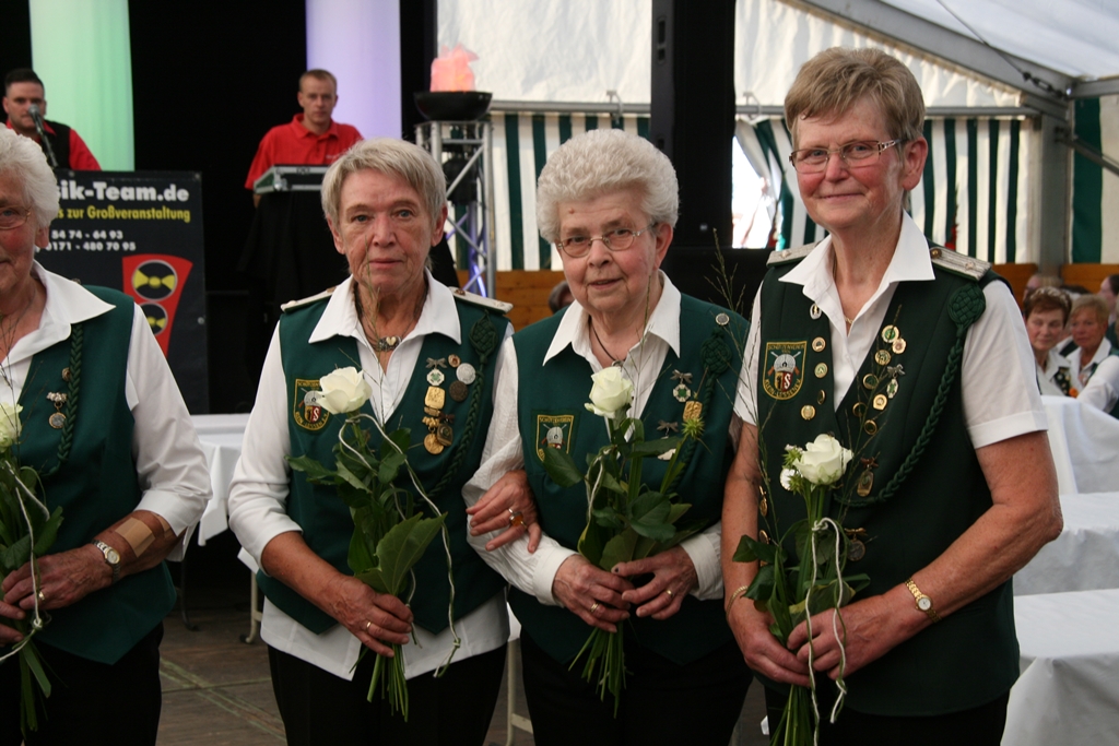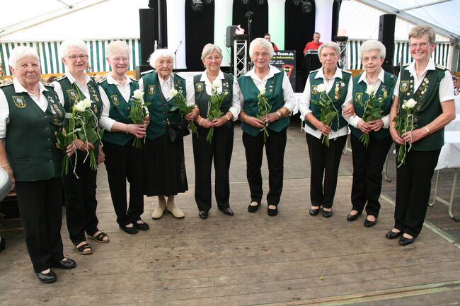 Diese neun Damen der ersten "Stunde" der Damenschießgruppe Klein Lessen erfuhren diese besondere Ehrung im Rahmen der Feier, unter dem Beisein von gut 300 Schützendamen aus befreundeten Vereinen im Festzelt am Gasthaus Thiermann in Klein Lessen.