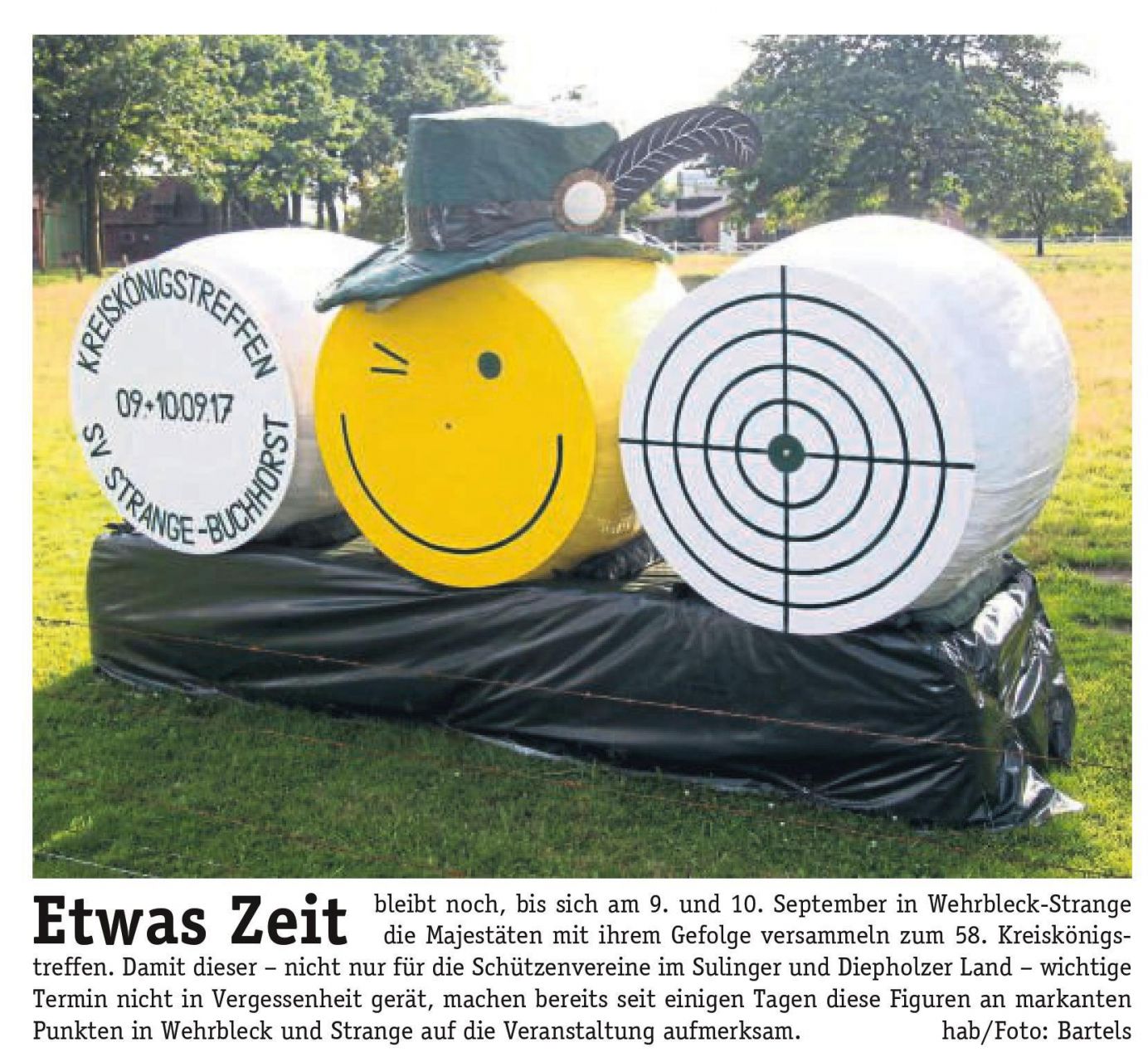 In der Zeit vom 19. Juli bis zum 24. August 2017 ist der Schützenverein Strange - Buchhorst Gastgeber der Schießveranstaltungen um den Titel des Kreiskönigs und zahlreicher Mannschafts- und Einzelpokale. Es werden insgesamt ca. 800 Schützen an verschiedenen Terminen erwartet. Für das leibliche Wohl ist aber nicht nur für Schützen gesorgt, sondern auch Gäste haben die Möglichkeit sich auf dem Schießstandgelände zu stärken und Klönschnack zu halten.