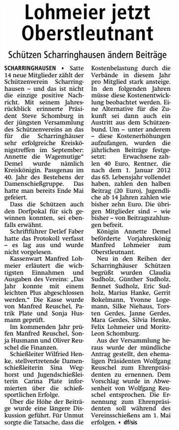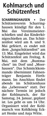 Bericht der SULINGER KREISZEITUNG vom 12. Januar 2015