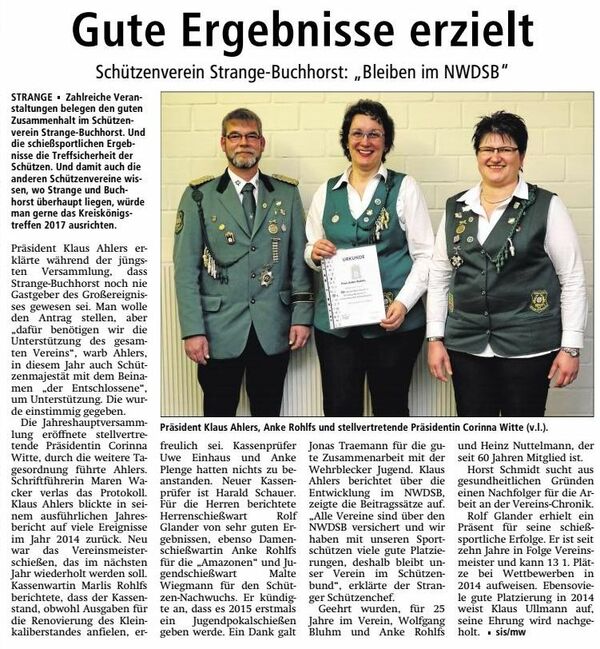 Bericht der SULINGER KREISZEITUNG vom 14. Januar 2015