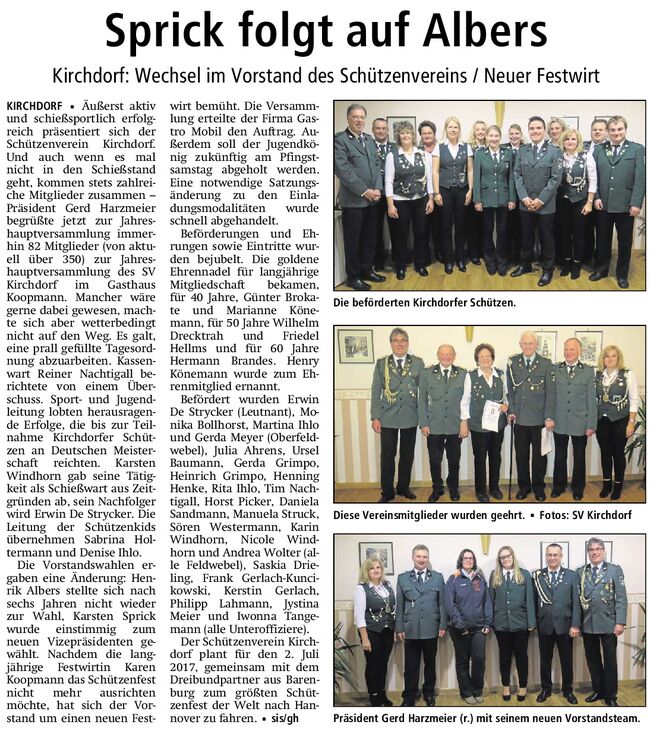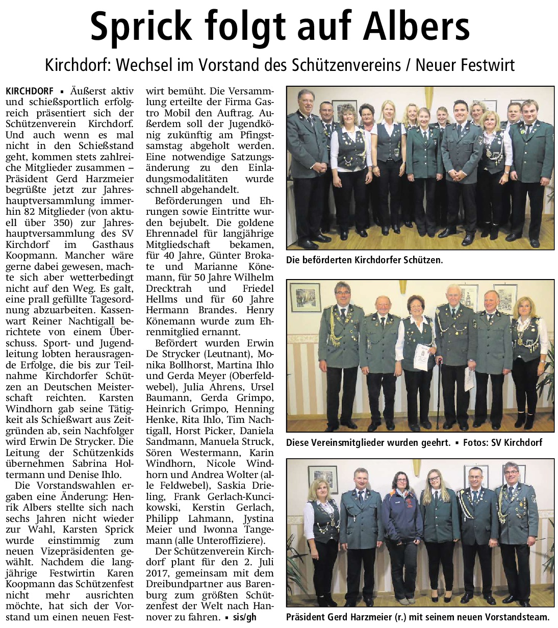 Bericht der SULINGER KREISZEITUNG vom 20. Januar 2016