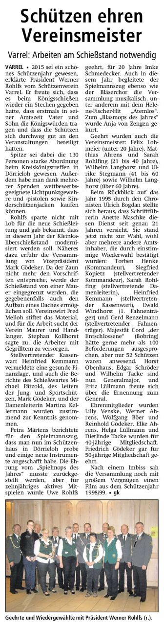 Bericht der SULINGER KREISZEITUNG vom 19. Januar 2016