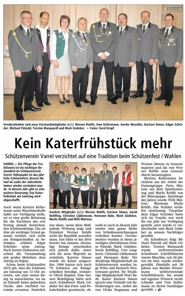 Bericht der SULINGER KREISZEITUNG vom 20. Januar 2015