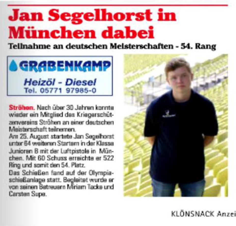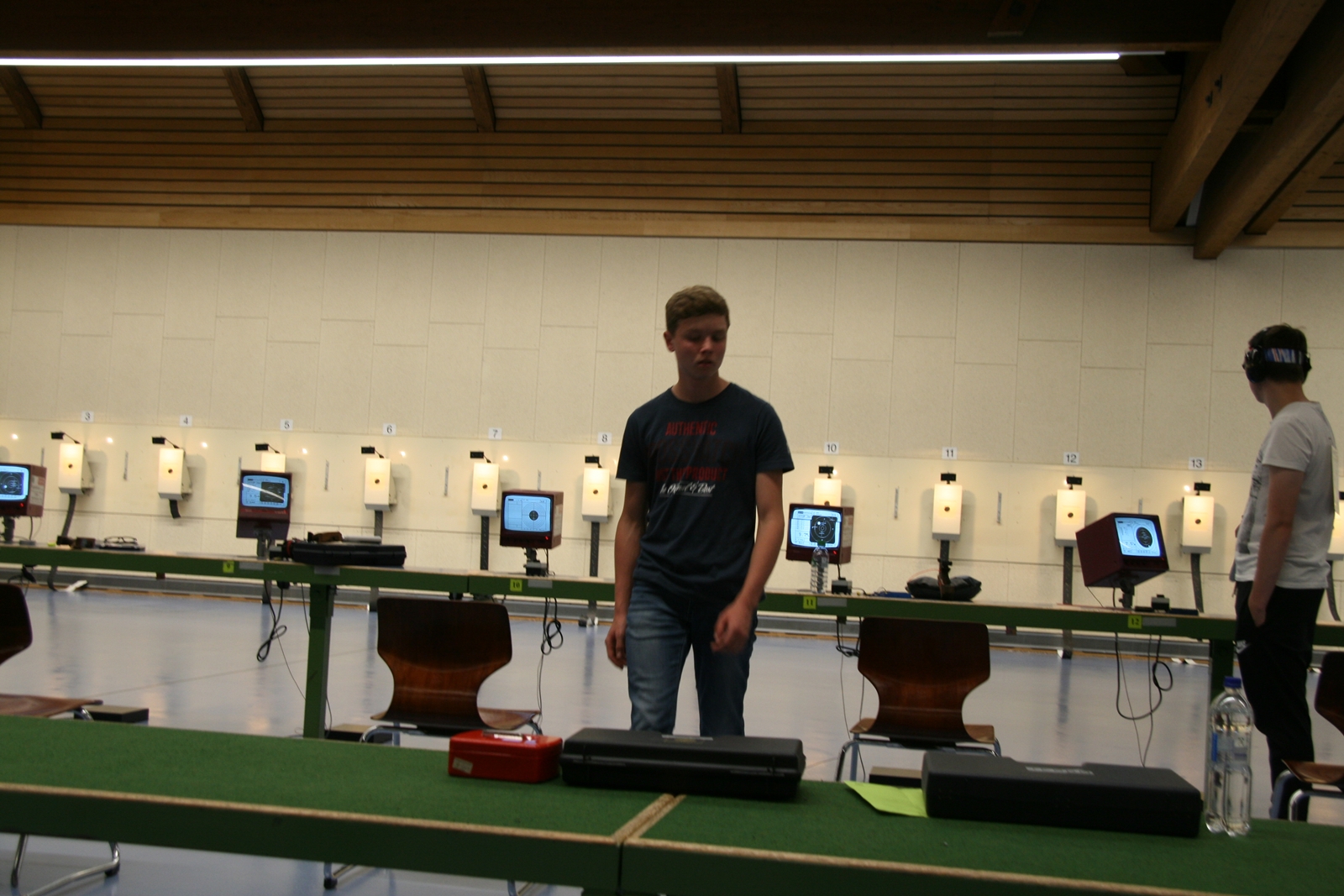 Mit den beiden Jugendleitern des KSV Ströhen Carsten Supe und Miriam Tacke sowie Vater und Mutter, war Jan rechtzeitig auf der großen Olympiaanlage in München-Hochbrück eingetroffen. Sie wurden von den schon anwesenden Schützen aus dem Bezirks-Schützenverband herzlich begrüßt. Daumendrücken wollten sie alle....