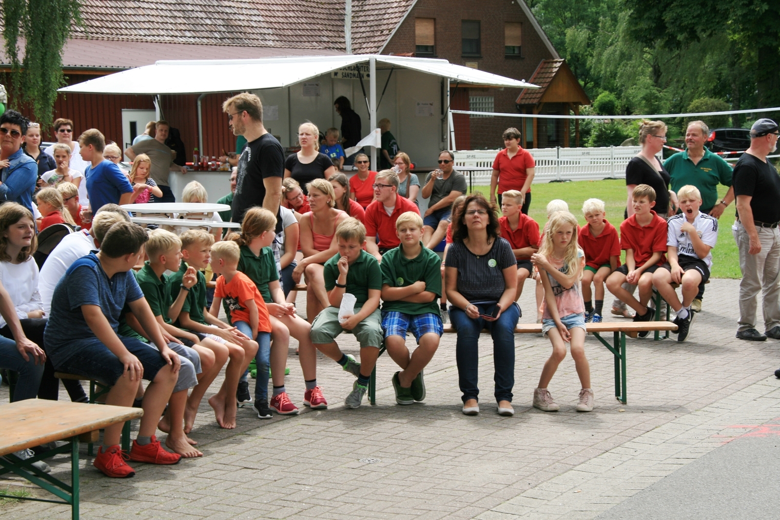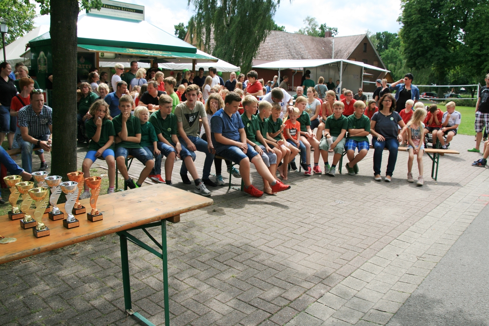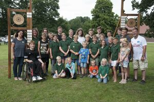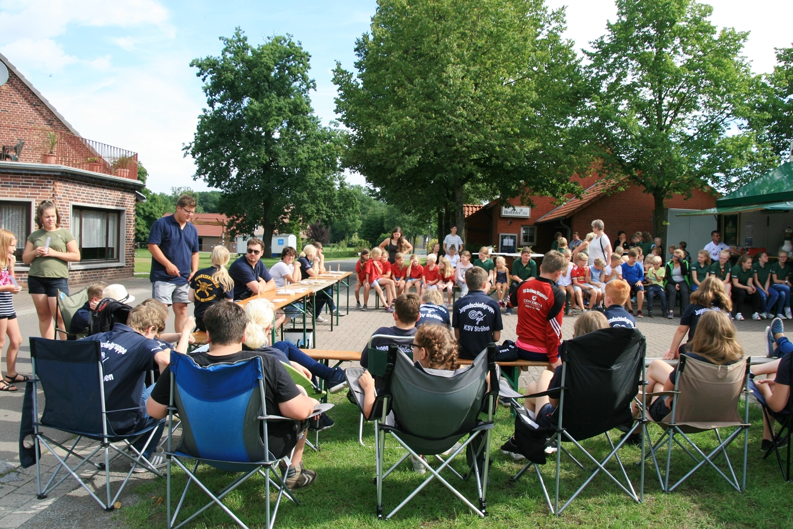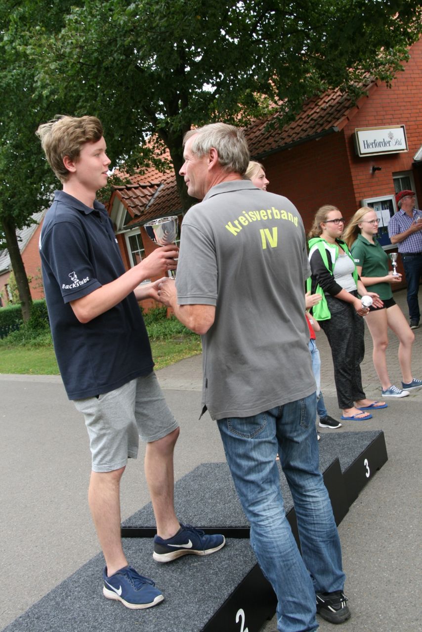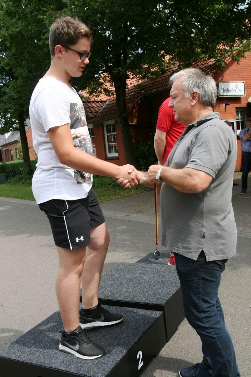 Zuvor bedankte sich Gerd Griffel bei den Scharringhäusern für die tolle Ausrichtung des Zeltlagers, alles sei super gewesen, auch die Verantwortlichen und Betreuer hatten gut Lachen, es lief alles wie am "Schnürchen", der SV Scharringhausen hatte alles super organisiert, angefangen vom sicheren Zeltplatz bis zur "Verkehrsberuhigung" rund um das Gelände. Ingelore Eickhoff freute sich, dass alle so viel Spaß gehabt haben, sie habe ja an allen Tagen kurz vorbeigeschaut und war erstaunt, dass so viele Gäste am Samstag die „Kaffeetafel“ genutzt haben. Vereinspräsident Steve Schomburg war glücklich über so viel Resonanz Seitens der Mitgliedsvereine, man habe zwar viel Arbeit und Organisation für diese Veranstaltung einsetzen müssen, aber das positive Feedback der Kinder habe dieses wettgemacht. Gerd Harzmeier vom SV Kirchdorf lud alle zum Jugendzeltlager ein, es findet 2018 beim Schützenhaus in Kirchdorf statt.