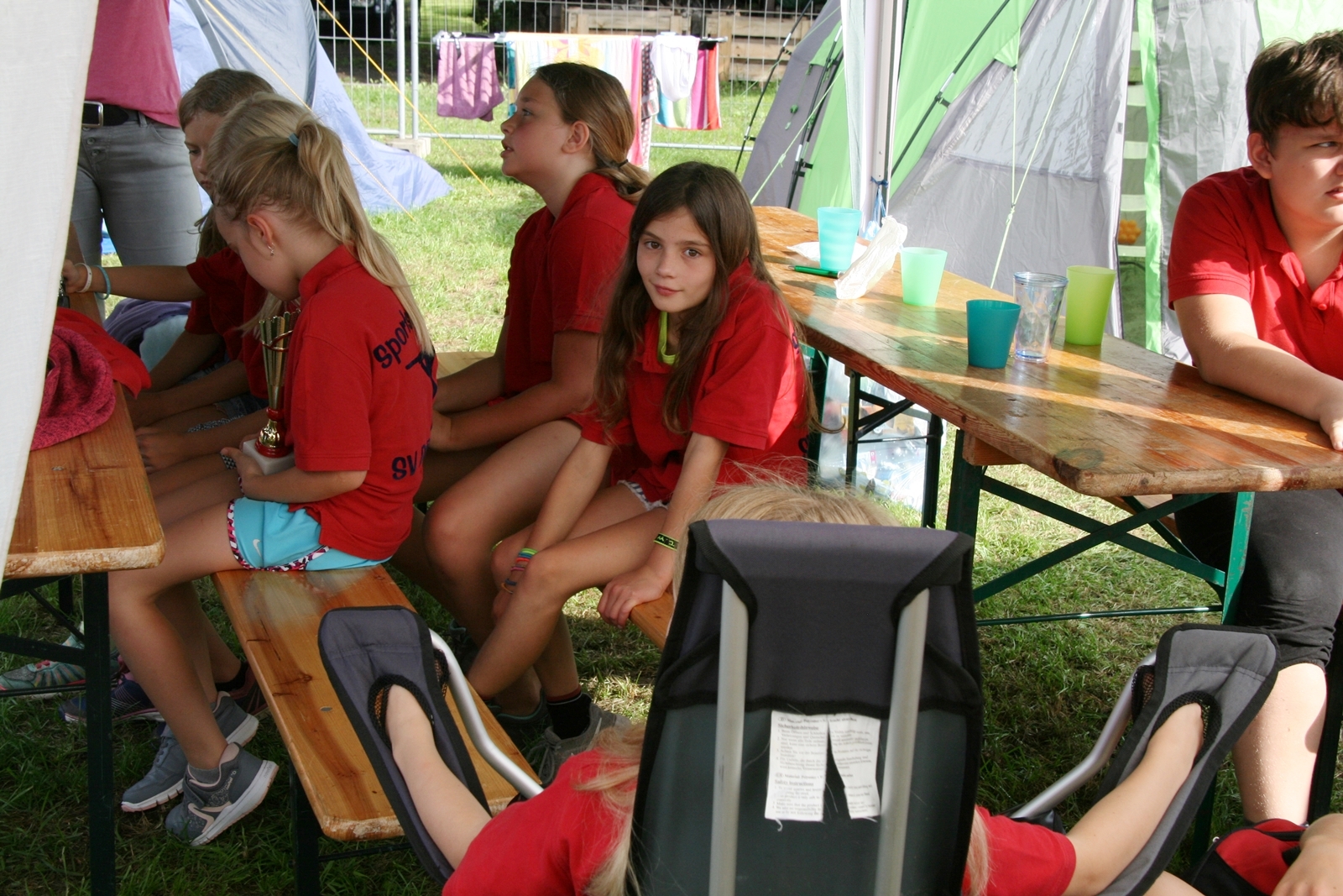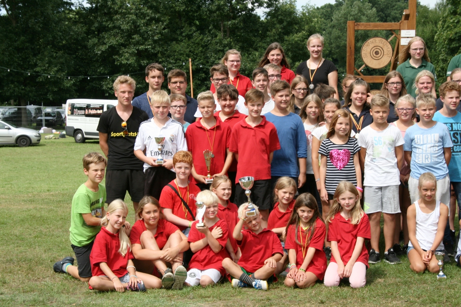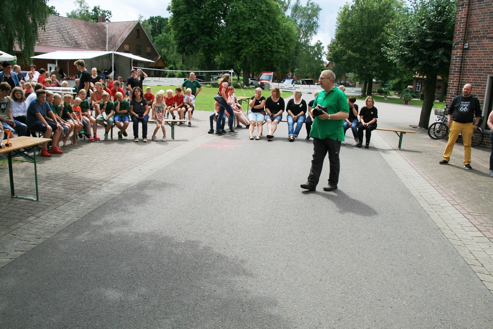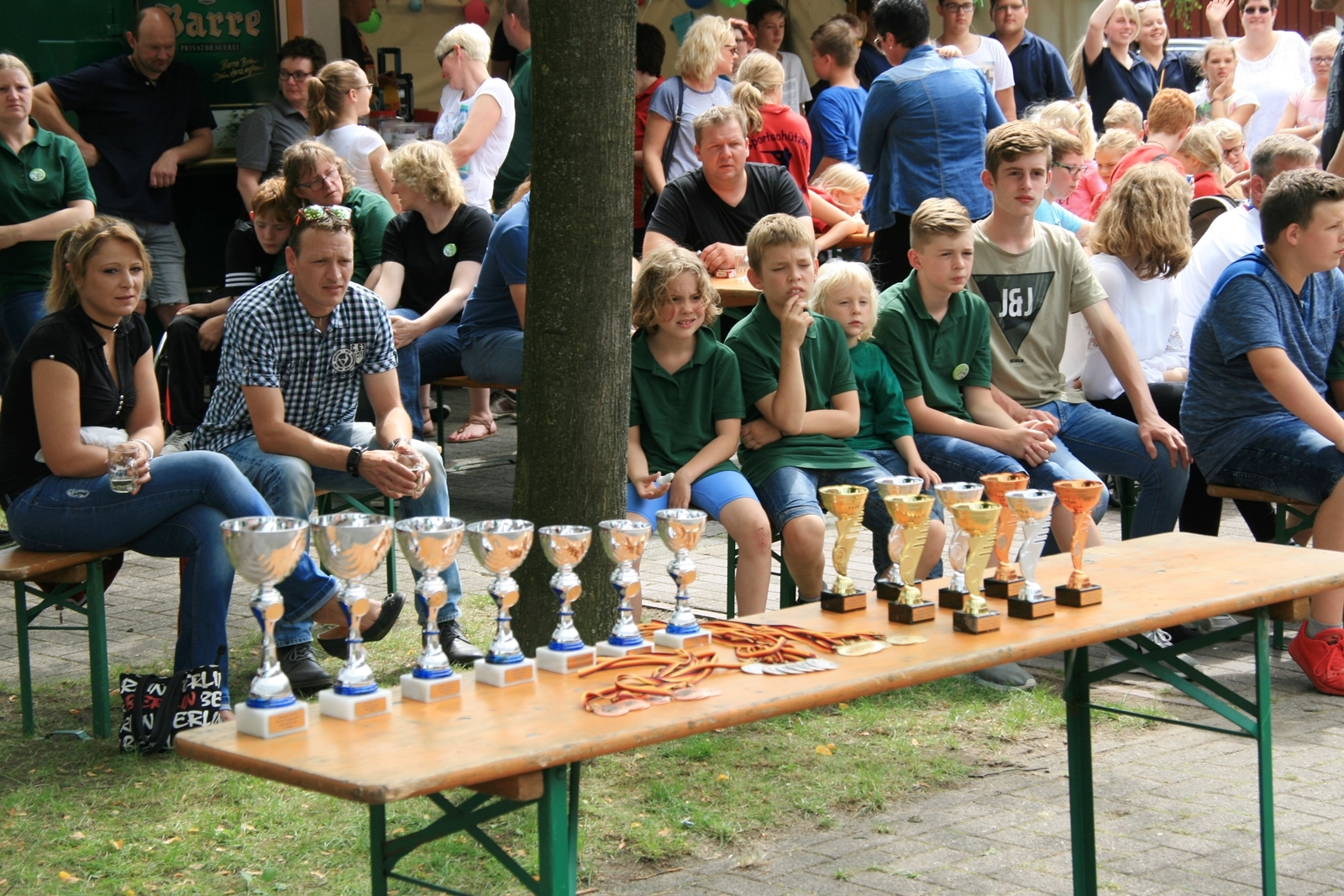Zuvor bedankte sich Gerd Griffel bei den Scharringhäusern für die tolle Ausrichtung des Zeltlagers, alles sei super gewesen, auch die Verantwortlichen und Betreuer hatten gut Lachen, es lief alles wie am "Schnürchen", der SV Scharringhausen hatte alles super organisiert, angefangen vom sicheren Zeltplatz bis zur "Verkehrsberuhigung" rund um das Gelände. Ingelore Eickhoff freute sich, dass alle so viel Spaß gehabt haben, sie habe ja an allen Tagen kurz vorbeigeschaut und war erstaunt, dass so viele Gäste am Samstag die „Kaffeetafel“ genutzt haben. Vereinspräsident Steve Schomburg war glücklich über so viel Resonanz Seitens der Mitgliedsvereine, man habe zwar viel Arbeit und Organisation für diese Veranstaltung einsetzen müssen, aber das positive Feedback der Kinder habe dieses wettgemacht. Gerd Harzmeier vom SV Kirchdorf lud alle zum Jugendzeltlager ein, es findet 2018 beim Schützenhaus in Kirchdorf statt.