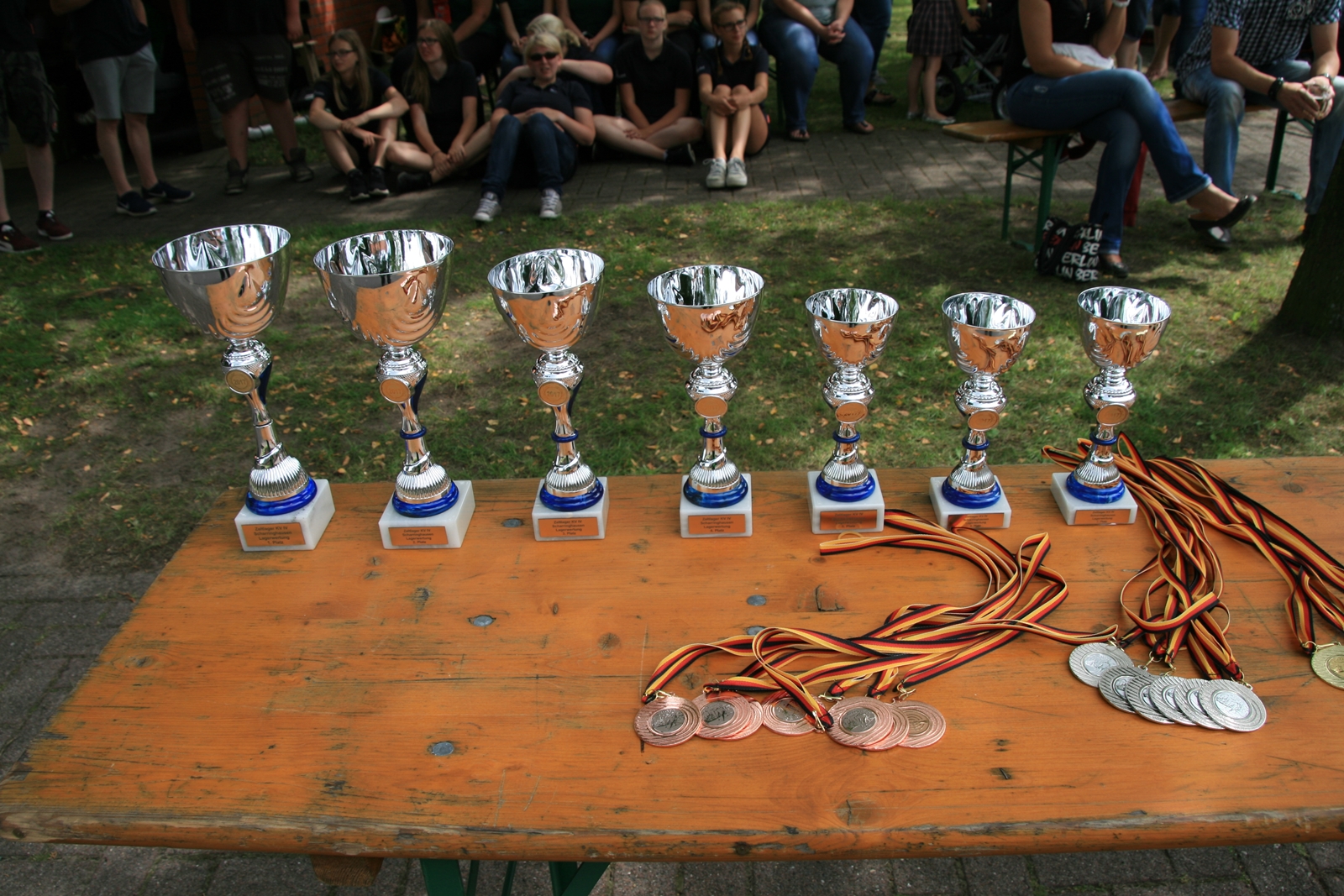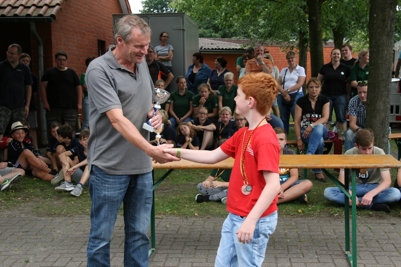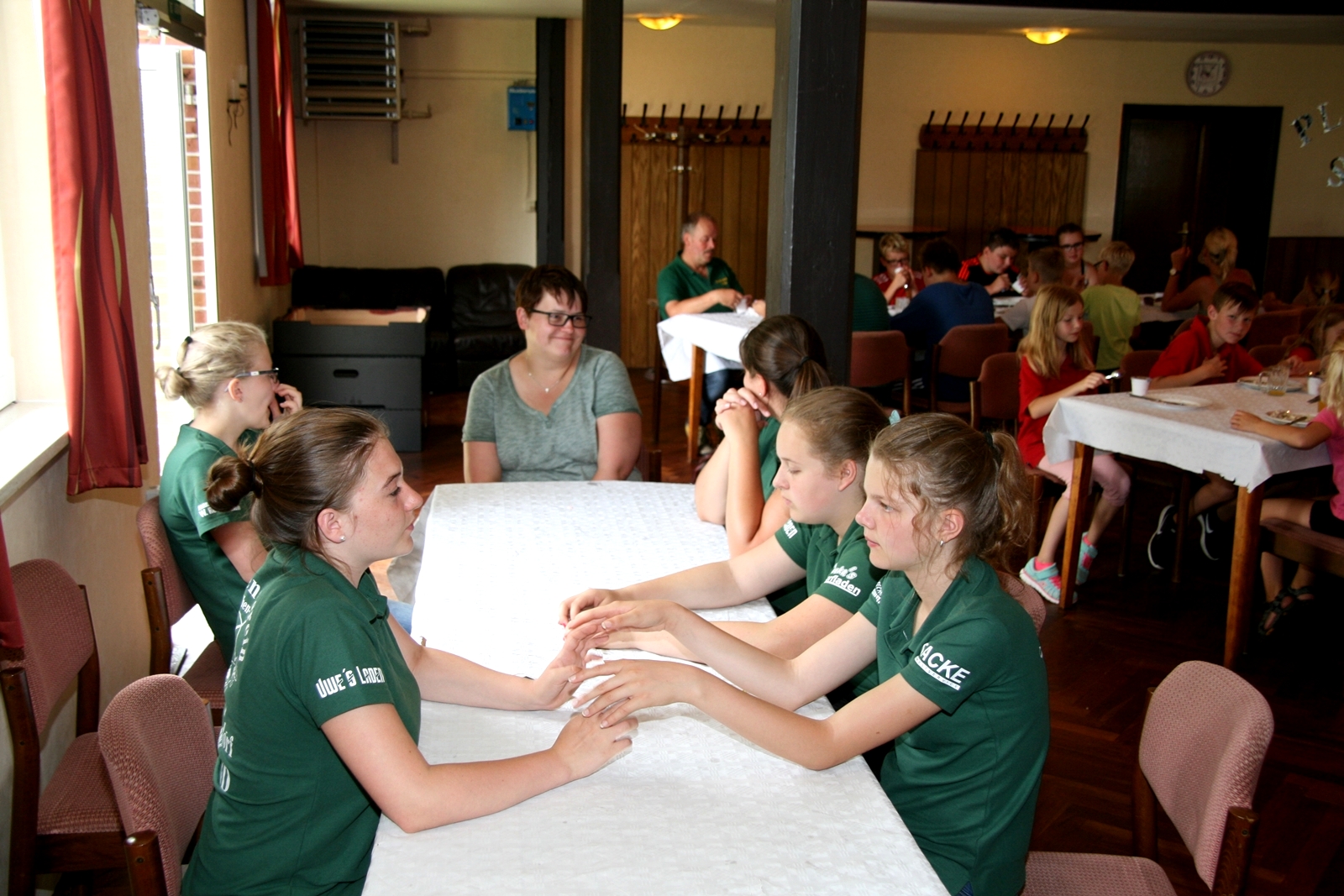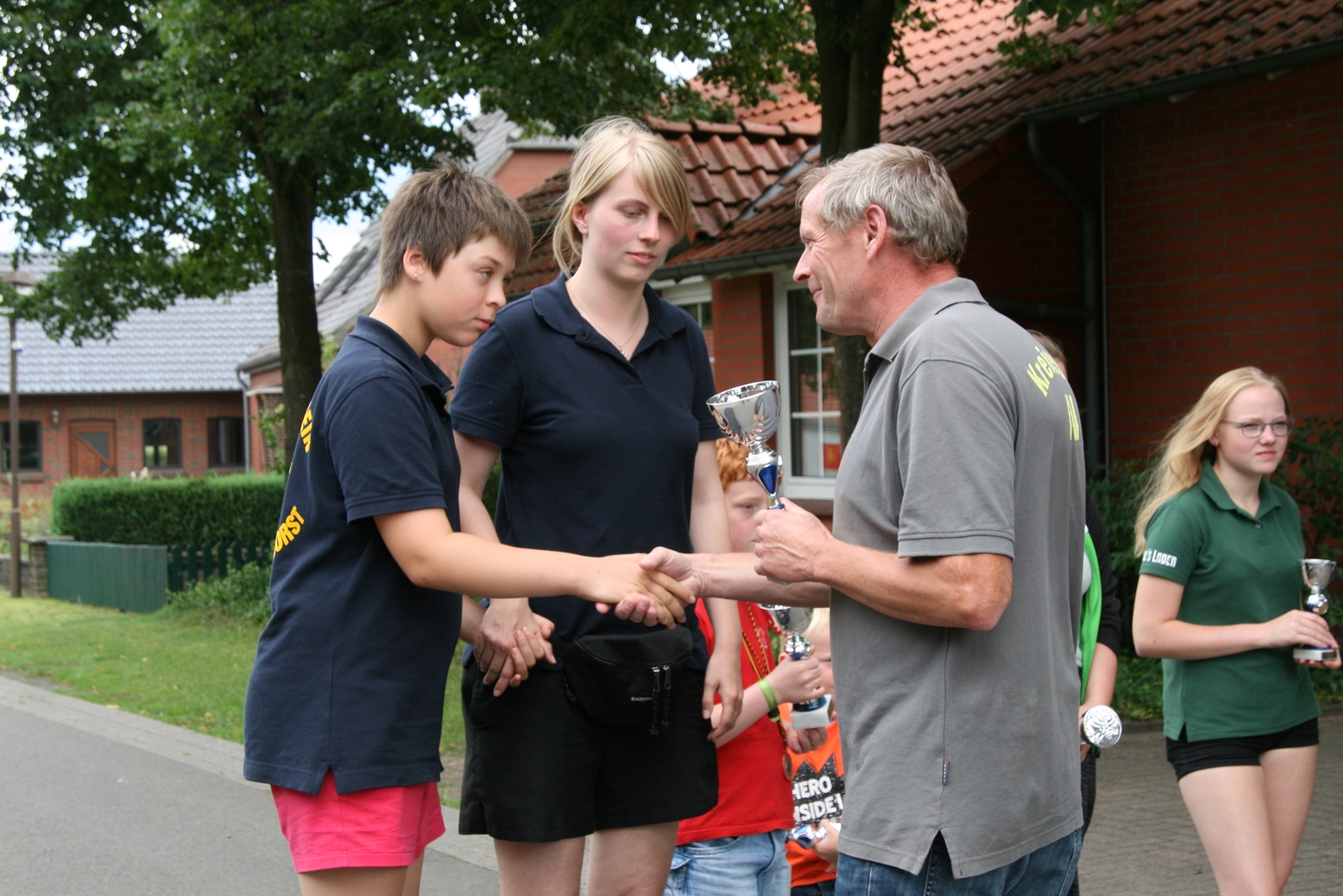 Zuvor bedankte sich Gerd Griffel bei den Scharringhäusern für die tolle Ausrichtung des Zeltlagers, alles sei super gewesen, auch die Verantwortlichen und Betreuer hatten gut Lachen, es lief alles wie am "Schnürchen", der SV Scharringhausen hatte alles super organisiert, angefangen vom sicheren Zeltplatz bis zur "Verkehrsberuhigung" rund um das Gelände. Ingelore Eickhoff freute sich, dass alle so viel Spaß gehabt haben, sie habe ja an allen Tagen kurz vorbeigeschaut und war erstaunt, dass so viele Gäste am Samstag die „Kaffeetafel“ genutzt haben. Vereinspräsident Steve Schomburg war glücklich über so viel Resonanz Seitens der Mitgliedsvereine, man habe zwar viel Arbeit und Organisation für diese Veranstaltung einsetzen müssen, aber das positive Feedback der Kinder habe dieses wettgemacht. Gerd Harzmeier vom SV Kirchdorf lud alle zum Jugendzeltlager ein, es findet 2018 beim Schützenhaus in Kirchdorf statt.