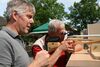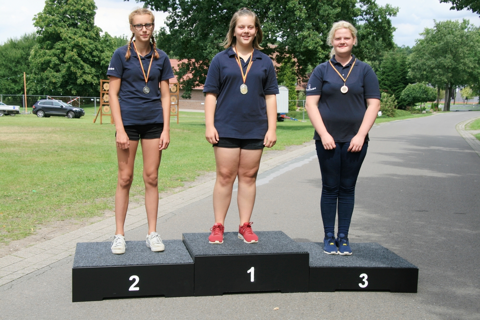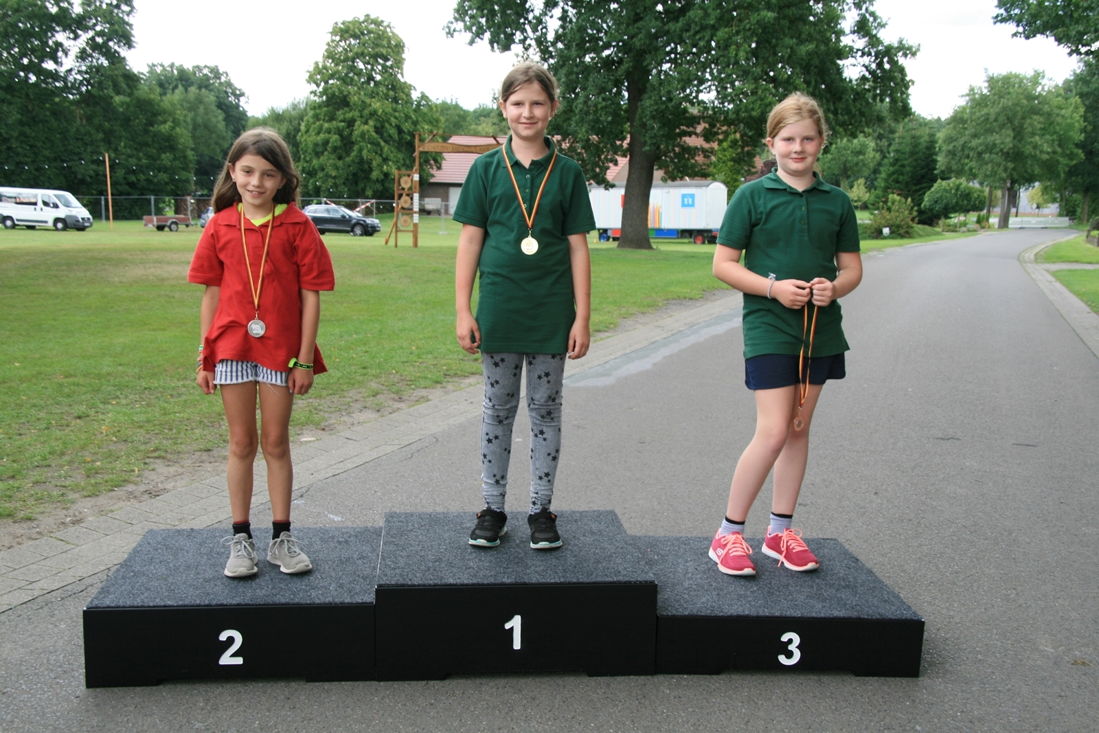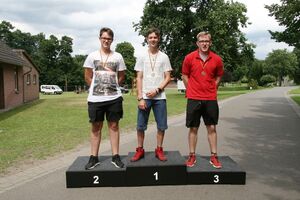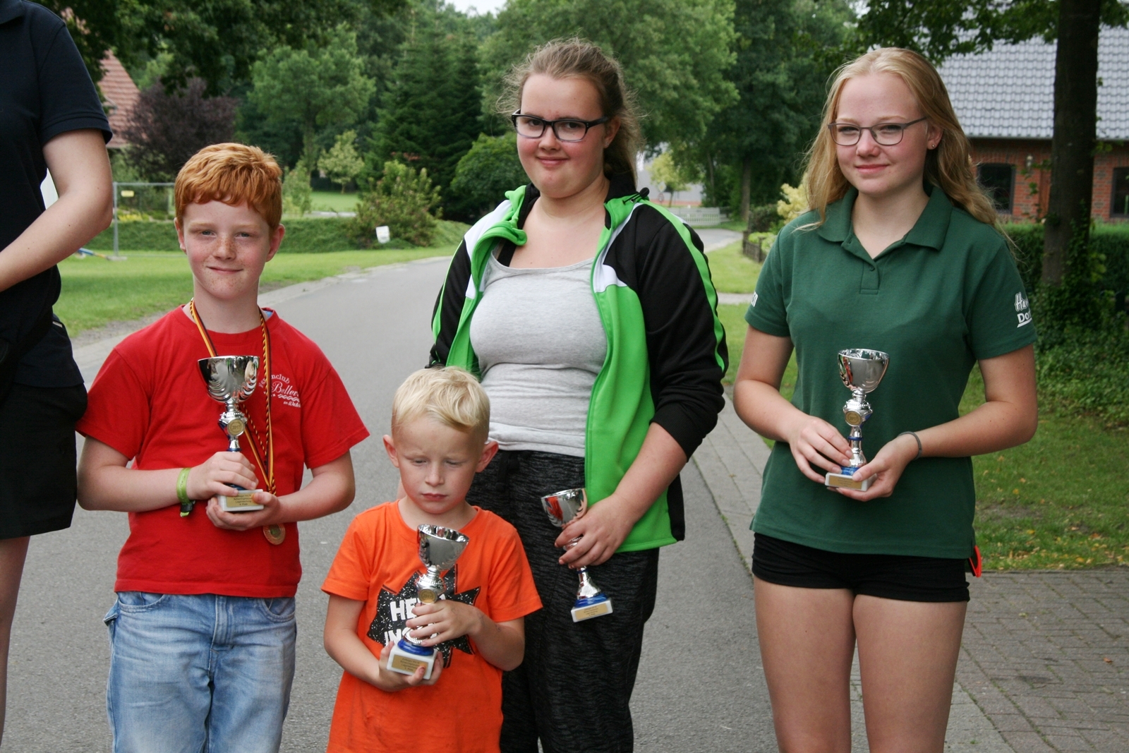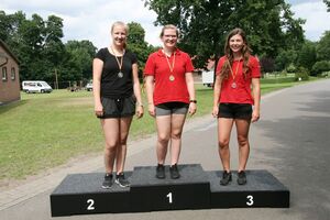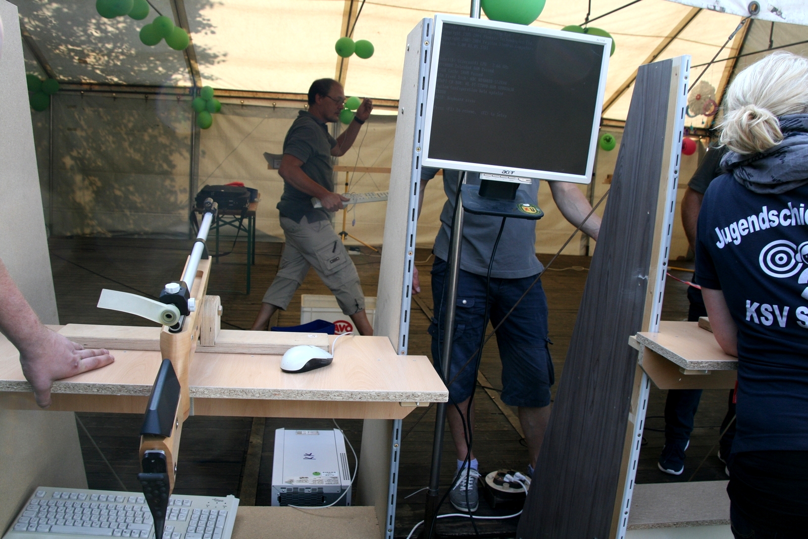 82 Kinder zwischen 11 und 18 Jahren haben am Sonntag beim abschließenden Biathlon mit dem Lichtpunktgewehr teilgenommen. Dabei waren Treffsicherheit und Schnelligkeit gefragt. Da es morgens ein Gewitter gegeben hatte, verzichtete man auf das Laufen im nassen Gras wegen der Rutschgefahr, so wurden knapp 10 Meter zurückgelegt, bis zur Aufgabe schnellst möglichst Scheiben in der richtigen Reihenfolge aufzustapeln, dann schnell zurück um die letzten fünf Schuß abzugeben. Dieses wurde von Zeitmessern natürlich korrekt gemessen. Alle Altersgruppen waren mit viel Motivation dabei, Jürgen Vogt hatte für diese Aufgabe das „Kommando“, er achtete darauf, dass auch nicht zu früh gestartet wurde.