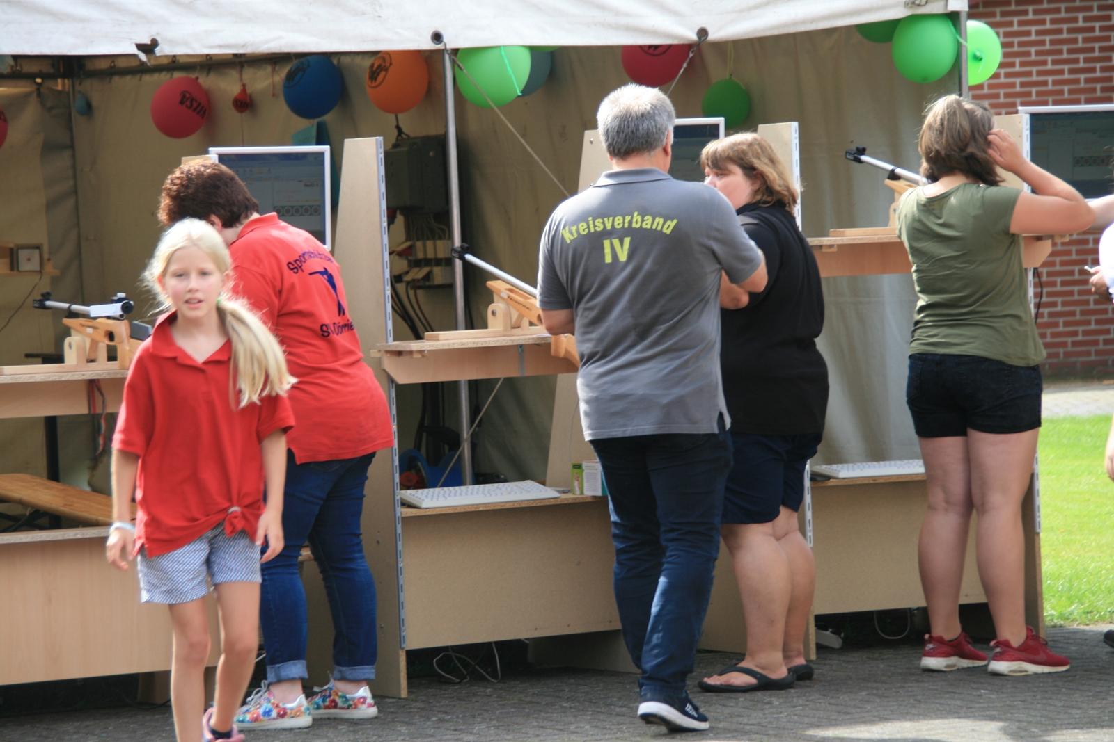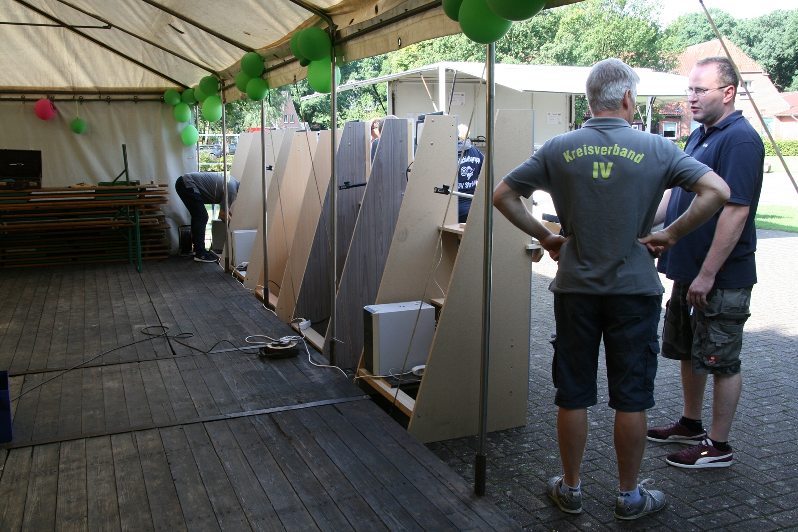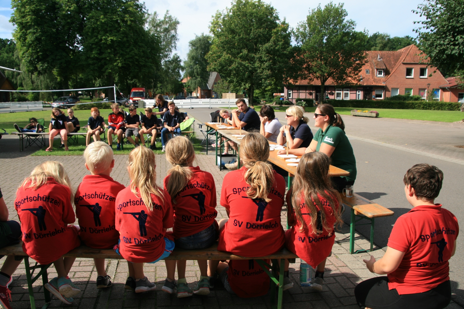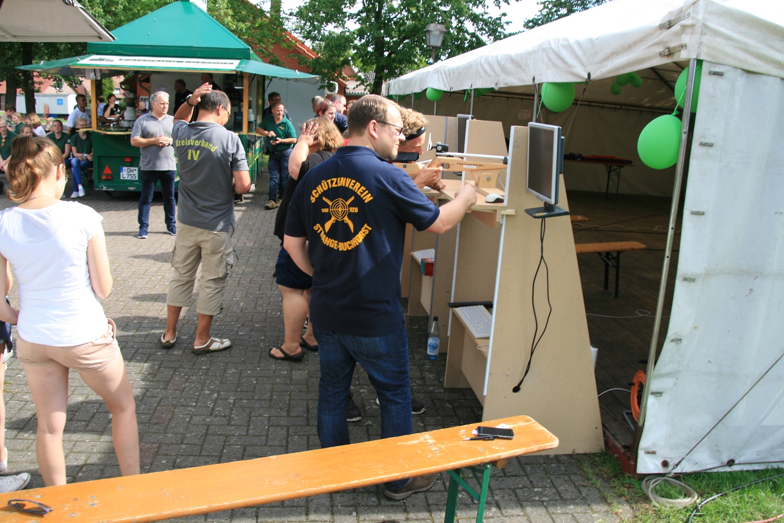 Und wie seit vielen Jahren, wurden auch am Sonntag um 11:00 Uhr wieder Ehrengäste herzlich zum Frühschoppen von KV IV-Präsident Gerd Griffel und Schatzmeisterin Edith Obenhaus begrüßt. Es waren Heinrich Kammacher als Samtgemeindebürgermeister der Gemeinde Kirchdorf und Holger Könemann als Ortsbürgermeister von Kirchdorf, Ingelore Eickhoff als Scharringhausens Bürgermeisterin. Die Präsidenten des Schützenvereins Scharringhausen Steve Schomburg mit Königin Tanja Köhler, vom SV Kirchdorf Gerd Harzmeier, vom SV Strange-Buchhorst Klaus Ahlers, vom SV Dörrieloh Uwe Mohrlüder und vom Bezirks-Schützenverband Jugendsportleiterin Britta Löhmann sowie Pressewartin Marianne Vallan. Es wurden gute Gespräche geführt, rund um das Schützenwesen mit seinen vielen Neuerungen dazu gab es einen Rundgang durch die kleine „Zeltstadt“. Die Siegerehrung fand nach dem Mittagessen statt.