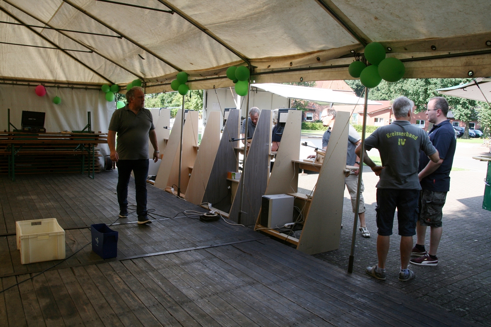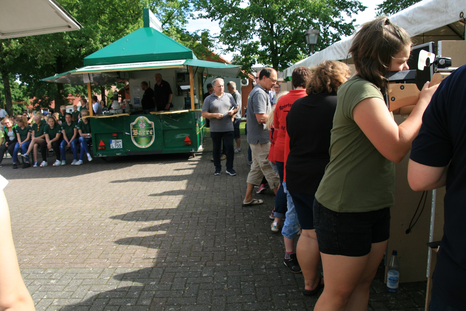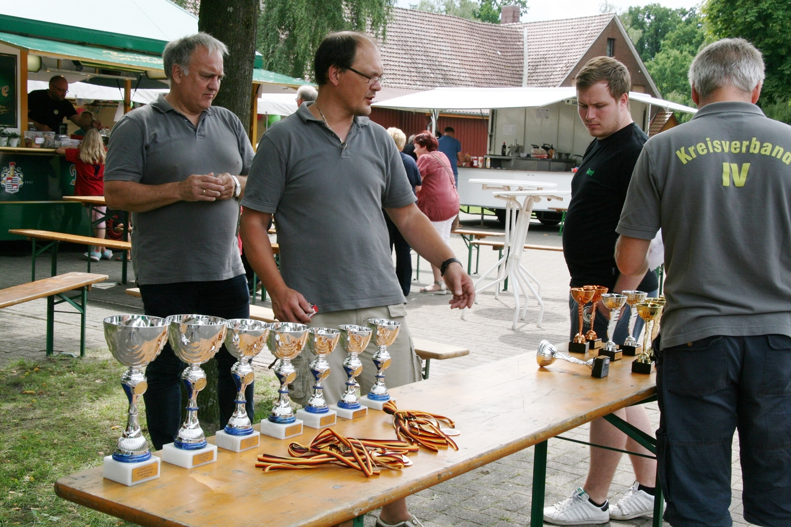 Und wie seit vielen Jahren, wurden auch am Sonntag um 11:00 Uhr wieder Ehrengäste herzlich zum Frühschoppen von KV IV-Präsident Gerd Griffel und Schatzmeisterin Edith Obenhaus begrüßt. Es waren Heinrich Kammacher als Samtgemeindebürgermeister der Gemeinde Kirchdorf und Holger Könemann als Ortsbürgermeister von Kirchdorf, Ingelore Eickhoff als Scharringhausens Bürgermeisterin. Die Präsidenten des Schützenvereins Scharringhausen Steve Schomburg mit Königin Tanja Köhler, vom SV Kirchdorf Gerd Harzmeier, vom SV Strange-Buchhorst Klaus Ahlers, vom SV Dörrieloh Uwe Mohrlüder und vom Bezirks-Schützenverband Jugendsportleiterin Britta Löhmann sowie Pressewartin Marianne Vallan. Es wurden gute Gespräche geführt, rund um das Schützenwesen mit seinen vielen Neuerungen dazu gab es einen Rundgang durch die kleine „Zeltstadt“. Die Siegerehrung fand nach dem Mittagessen statt.