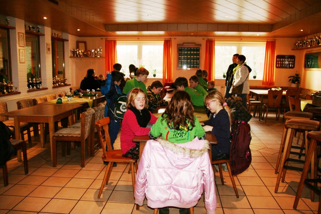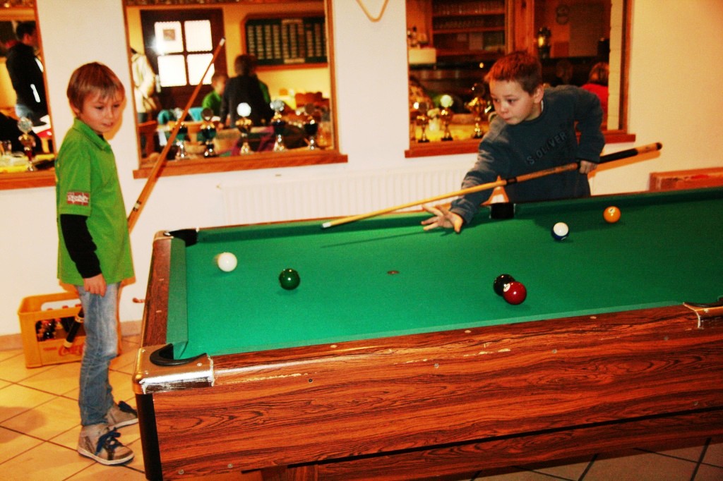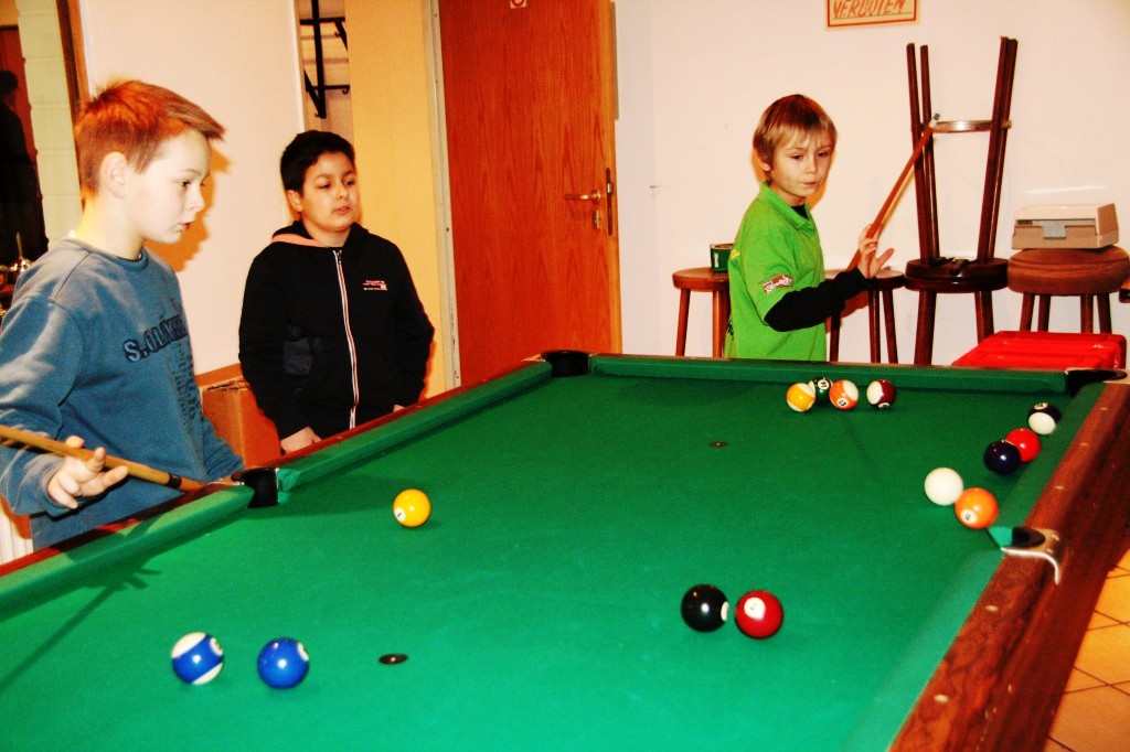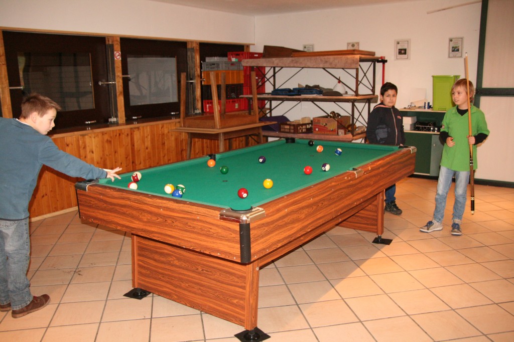 Die kurze Wartezeit vertrieben sich die Kinder mit verschiedenen Brett- und Kartenspielen sowie an einem Billardtisch.
