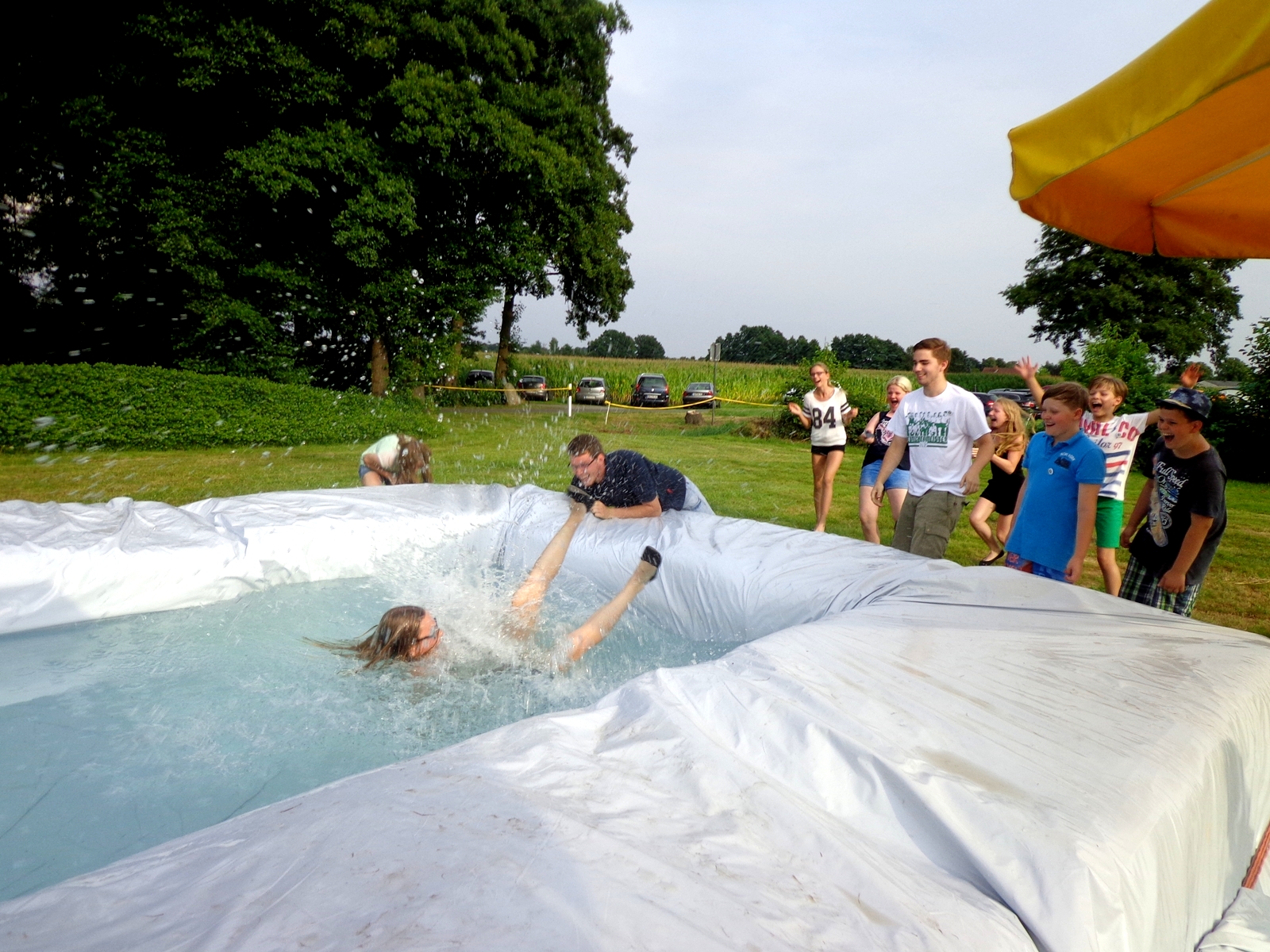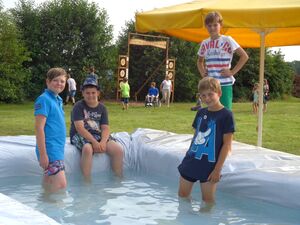 Das super Wetter macht es möglich: Die "Einweihung" des "Swimmingpools" mit viel Spaß für alle - wer wurde denn zuerst in die "Fluten" geworfen ?