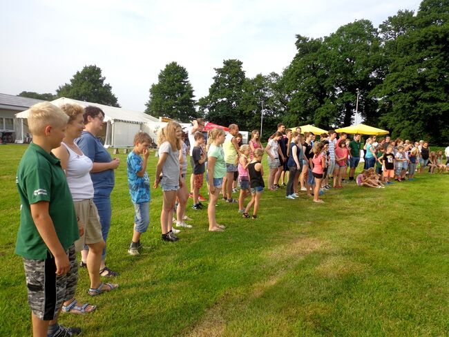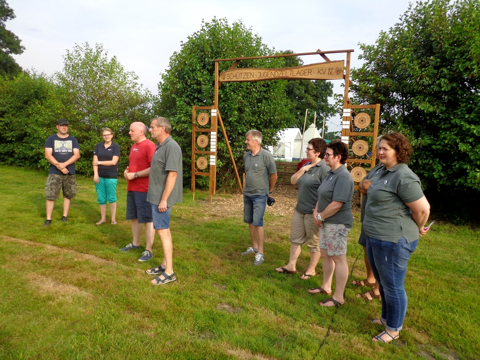 Kreispräsident Präsident Gerd Griffel und Heiko Meyer, Präsident vom gastgebenden Verein KSV Ströhen, eröffneten am Freitagabend das Zeltlager der Schützenjugend des KV IV 2016 vor einer großen Anzahl Mädchen und Jungen mit ihren Betreuern.(vorn Mitte)