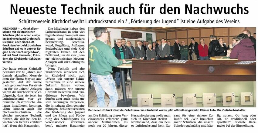Zum Schützenwesen allgemein sagte er, wenn wir unsere Schützenvereine in eine sichere Zukunft führen wollen, dann müssen wir unsere Chronik beachten und Traditionen bewahren, Feste feiern und die gesellige Gemeinschaft pflegen. Wir dürfen aber auch nicht unsere Satzungen vergessen, die in nahezu allen gemeinnützigen Schützenvereinen die „Förderung der Jugend“ und die „Pflege und Förderung des Schießsports“ als Vereinszweck vorschreiben. Die Erfüllung dieses Vereinszwecks erfordert ganz andere Maßnahmen als noch vor 20 Jahren, dieser Herausforderung sollten wir uns heute stellen. Wir hoffen dass uns unser “neue“ Luftdruckstand dabei helfen wird. Aber ein Garant für eine sichere Zukunft ist er leider nicht...