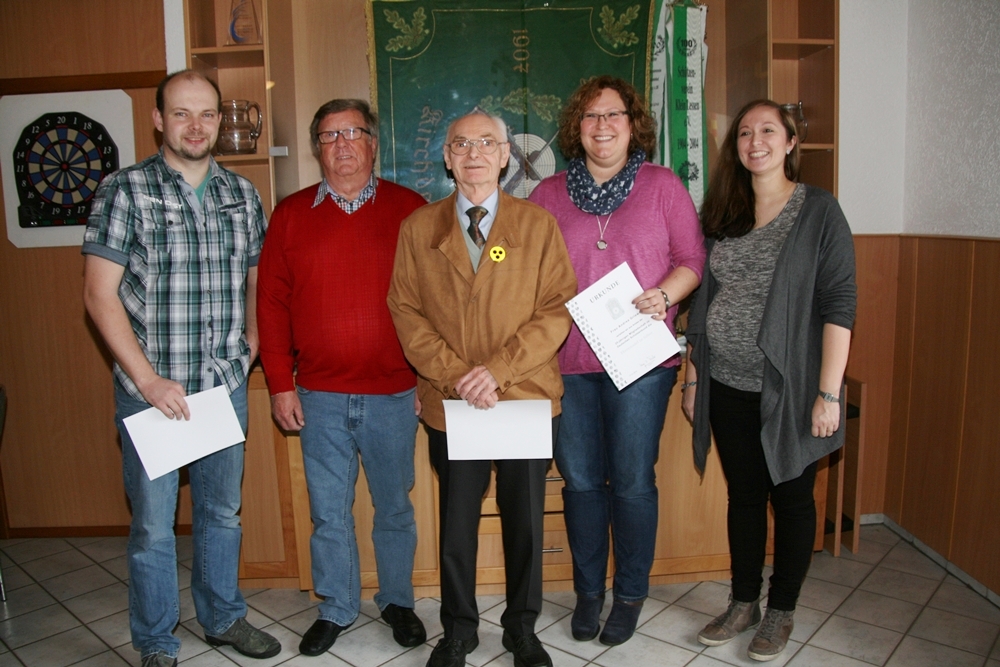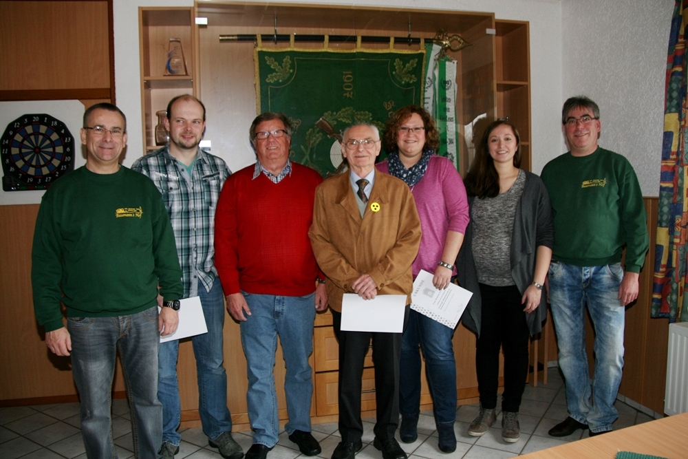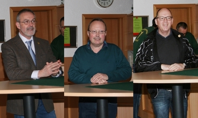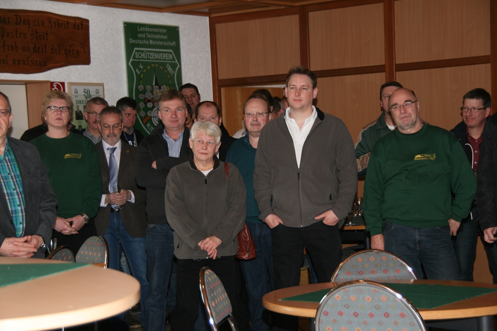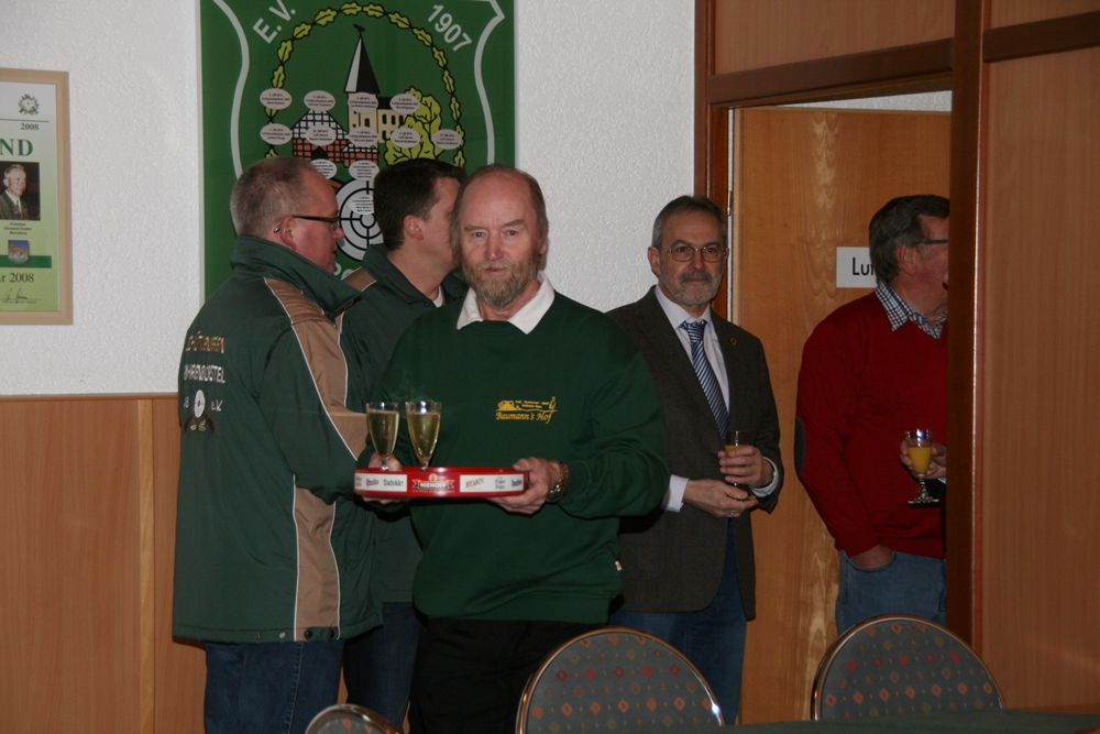 In diesem würdigen Rahmen nahm Präsident Harzmeier, unter der Mithilfe von Vizepräsident Henrik Albers, noch Ehrungen und Beförderungen vor für Schützinnen und Schützen, welche bei der Jahreshauptversammlung nicht anwesend waren. Die zu Ehrenden waren: Mathias Falldorf (25 J.), Friedel Henke (Feldwebel), Walter Haushalter (50 J.), Andrea Griewe-Runge (25 J.) und Diana Supe (Feldwebel).
