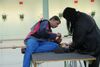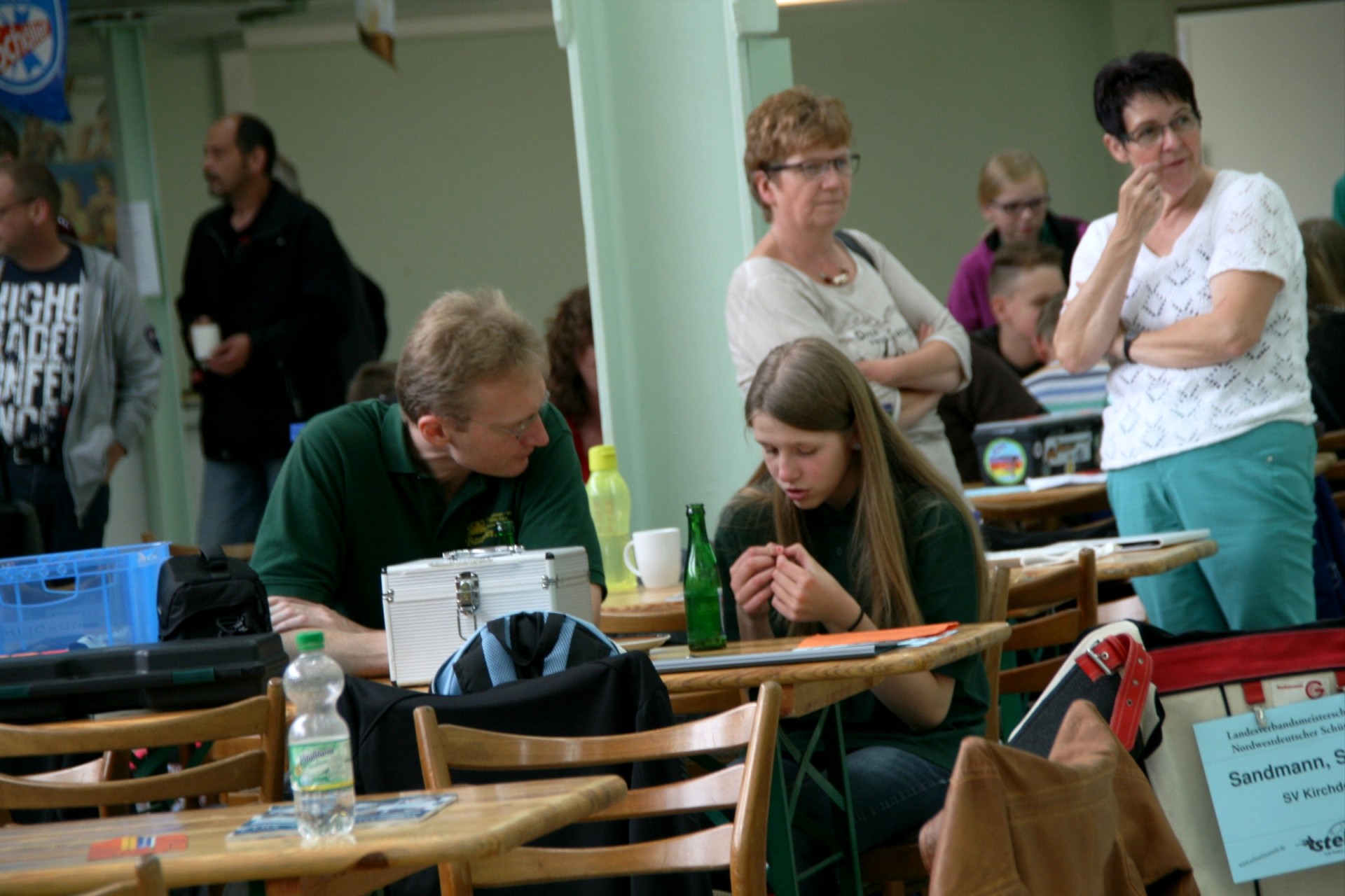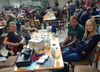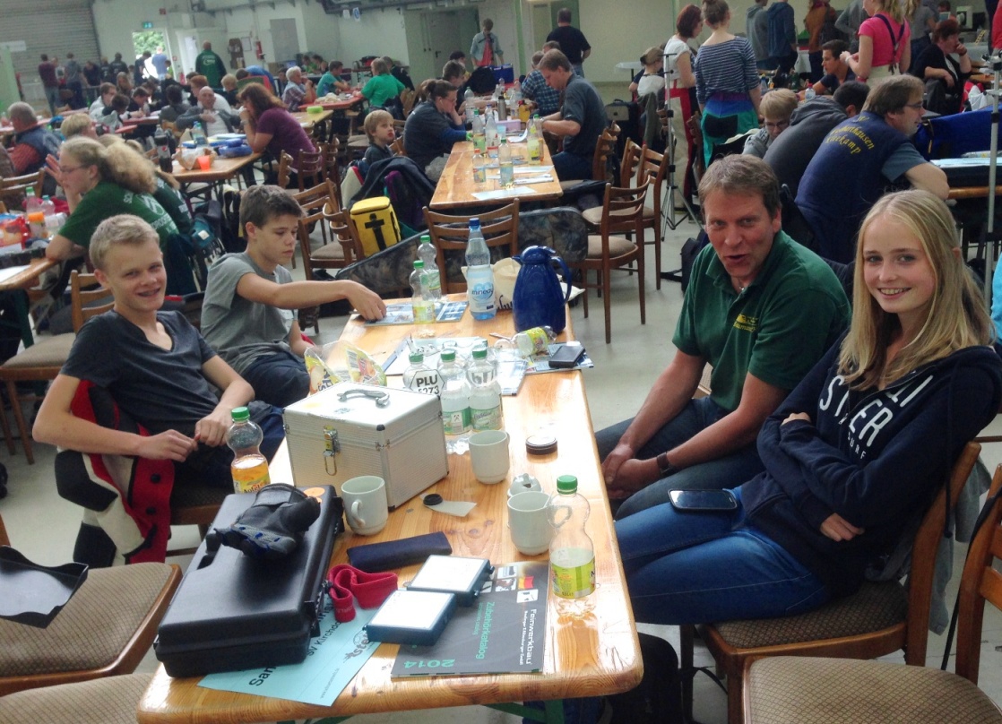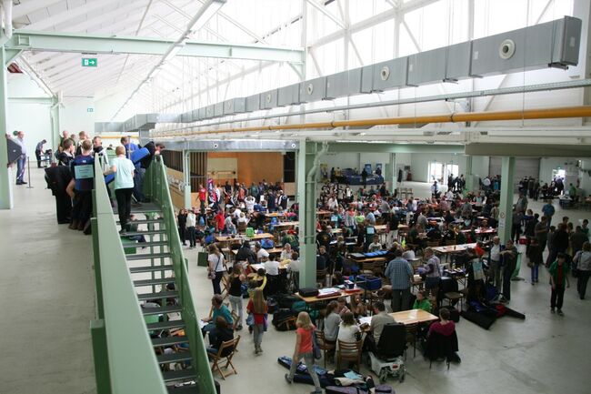 Im Vorraum der Halle I gab es ein reges "Treiben", die Tische waren schnell besetzt, genutzt als Ablage für Ausrüstung, Spiele, Essen und Trinken.