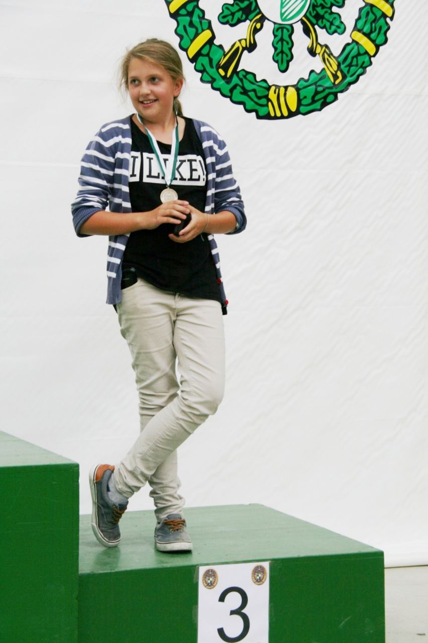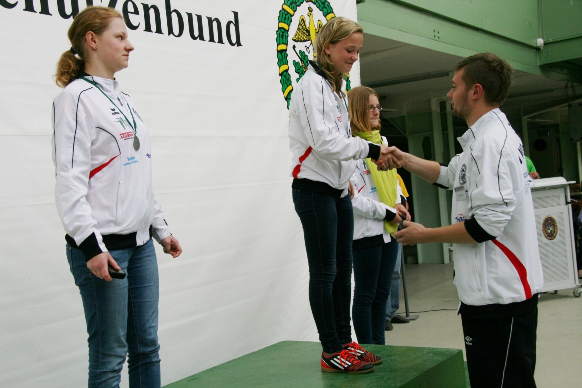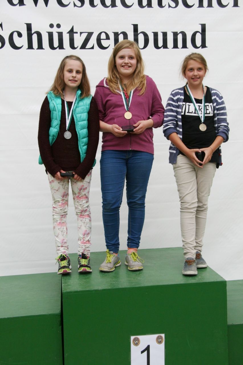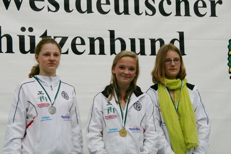 Lea-Sophie Osterkamp als dritte LP-Schützin mit der "Bronzemedaille" auf dem Siegerpodest mit Sophie Nehring und Taliza Brandt vom SV Fahrendorf.