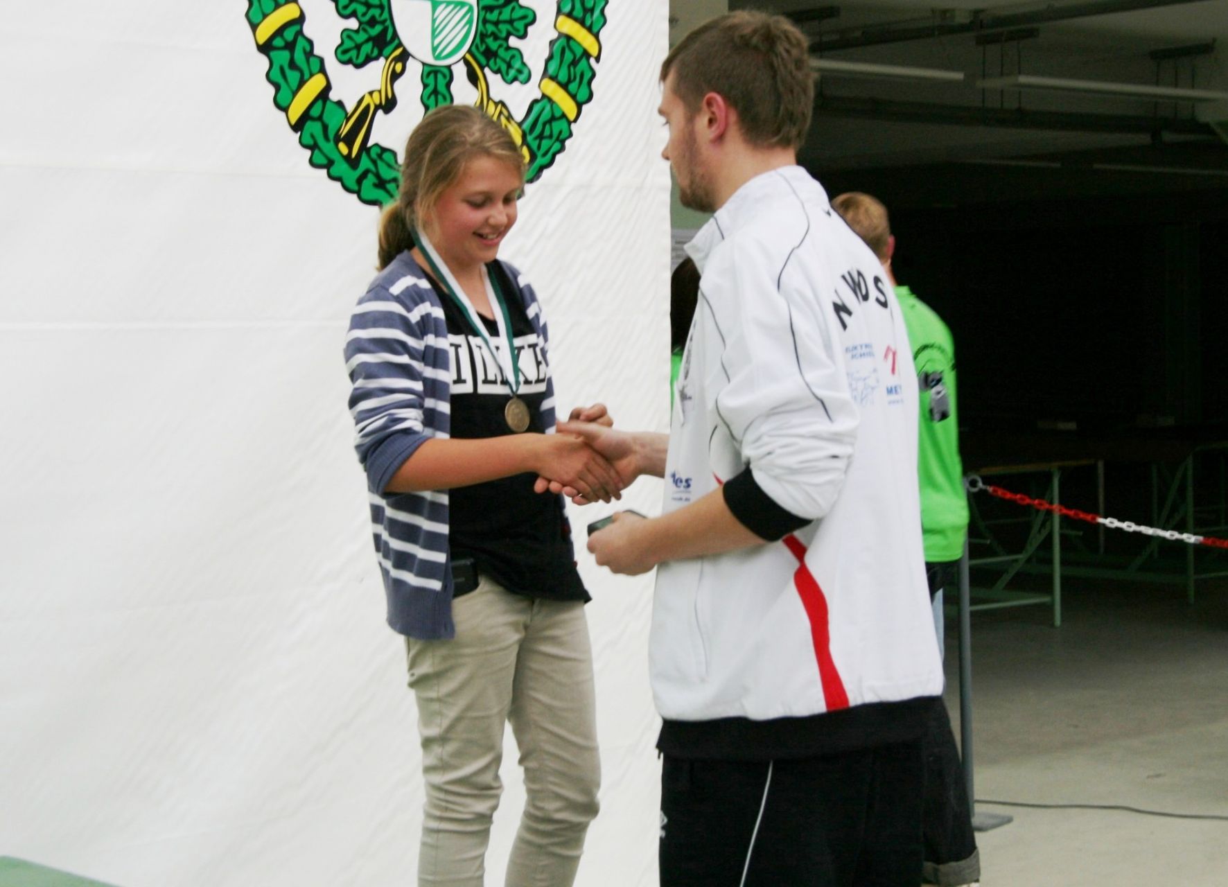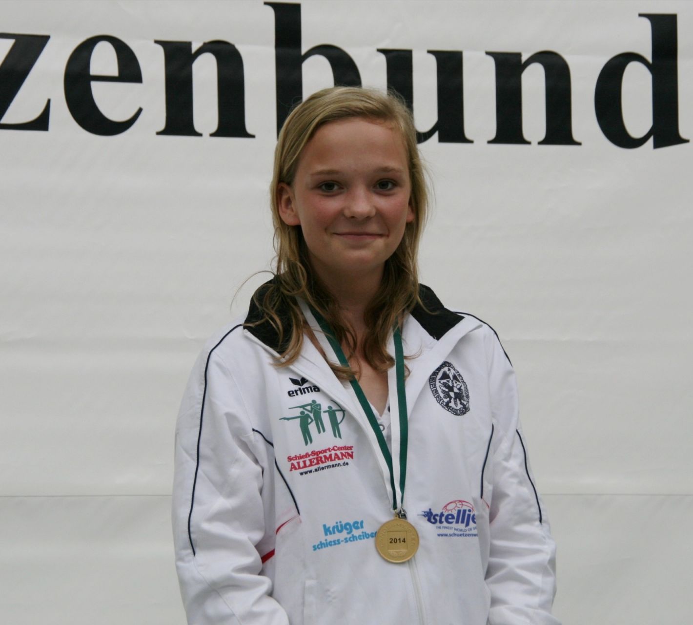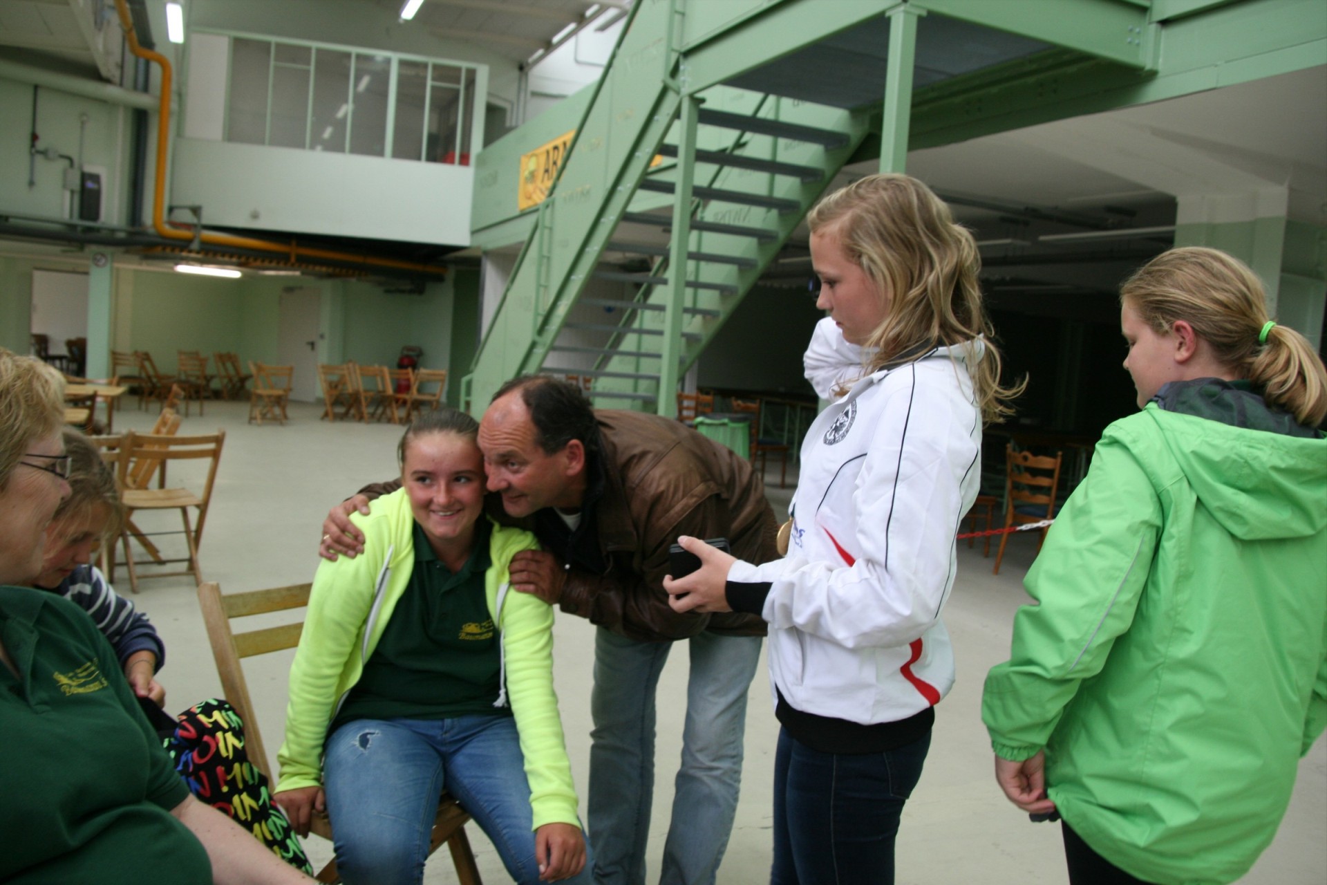Kira startete mit der Lupi in der Schülerklasse A, nach anfänglichen Schwierigkeiten (Papa Andreas tröstete) kam sie immer besser in "Tritt"! Letztendlich hatte sie mit den Serien 87 und 88 auf 175 Ring geschafft, dieses Ergebnis reichte mit 4 Ring Vorsprung für den 1. Platz, also eine Goldmedaille!!