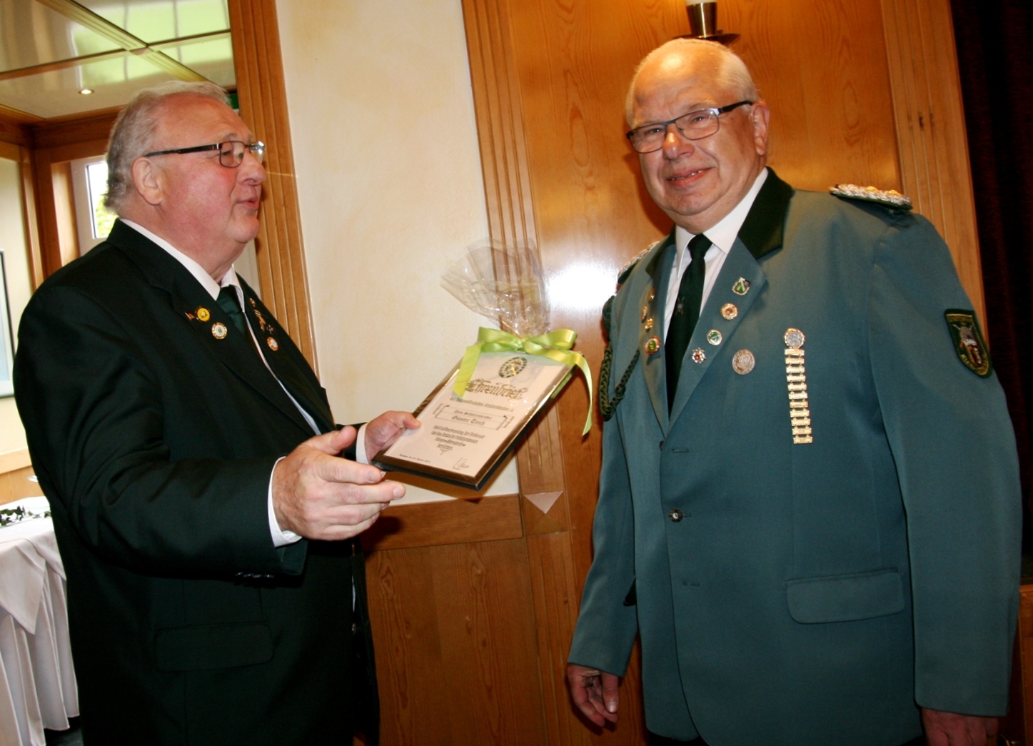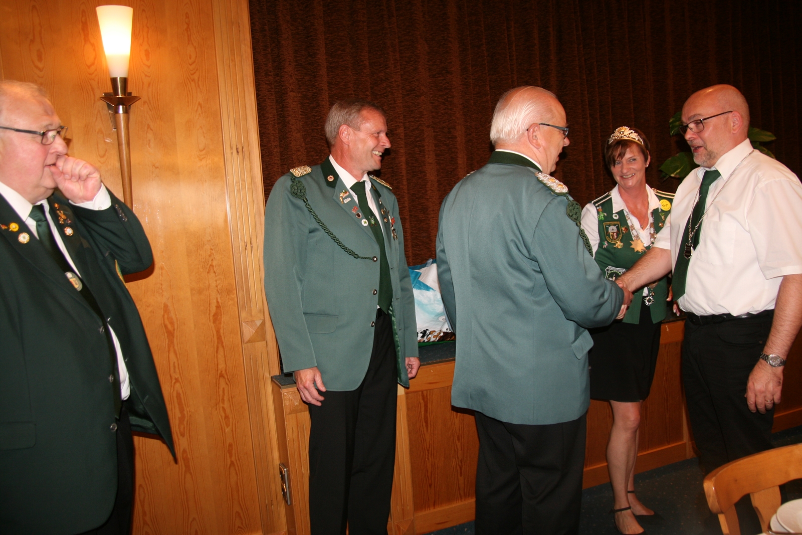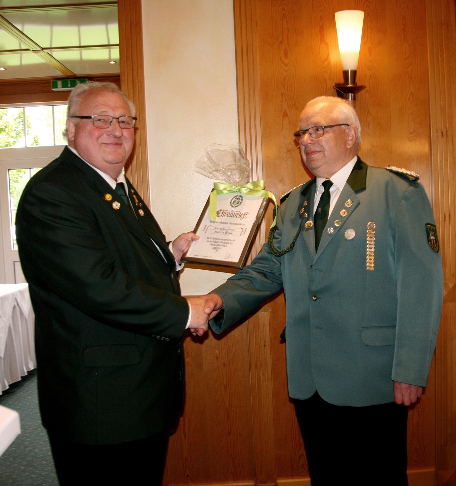 Die Übergabe des Ehrenbriefes wurde mit viel Beifall bedacht. Dankend nahm Günter Teich den Brief und die Gratulationen von vielen Schützenschwestern und Schützenbrüdern entgegen.
