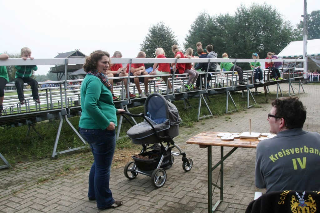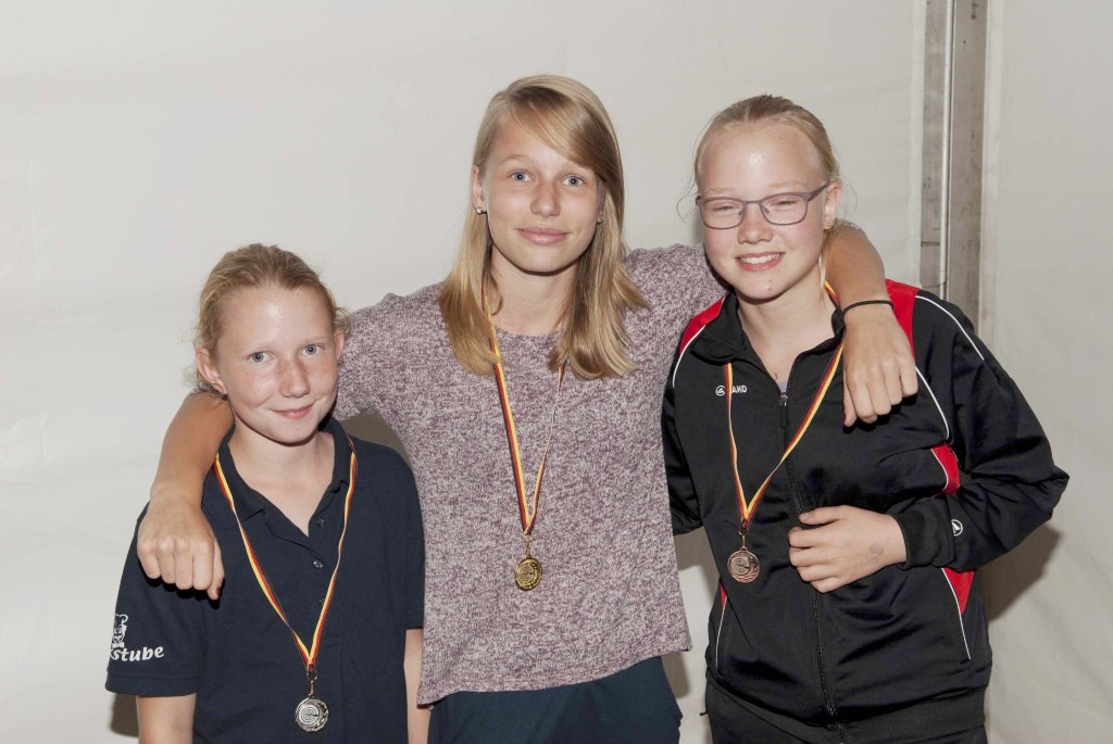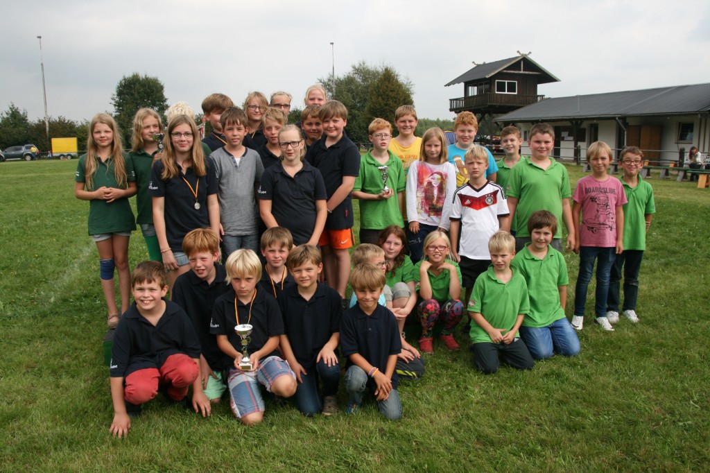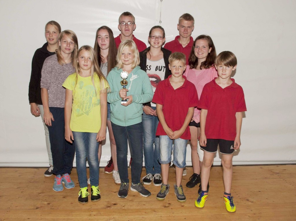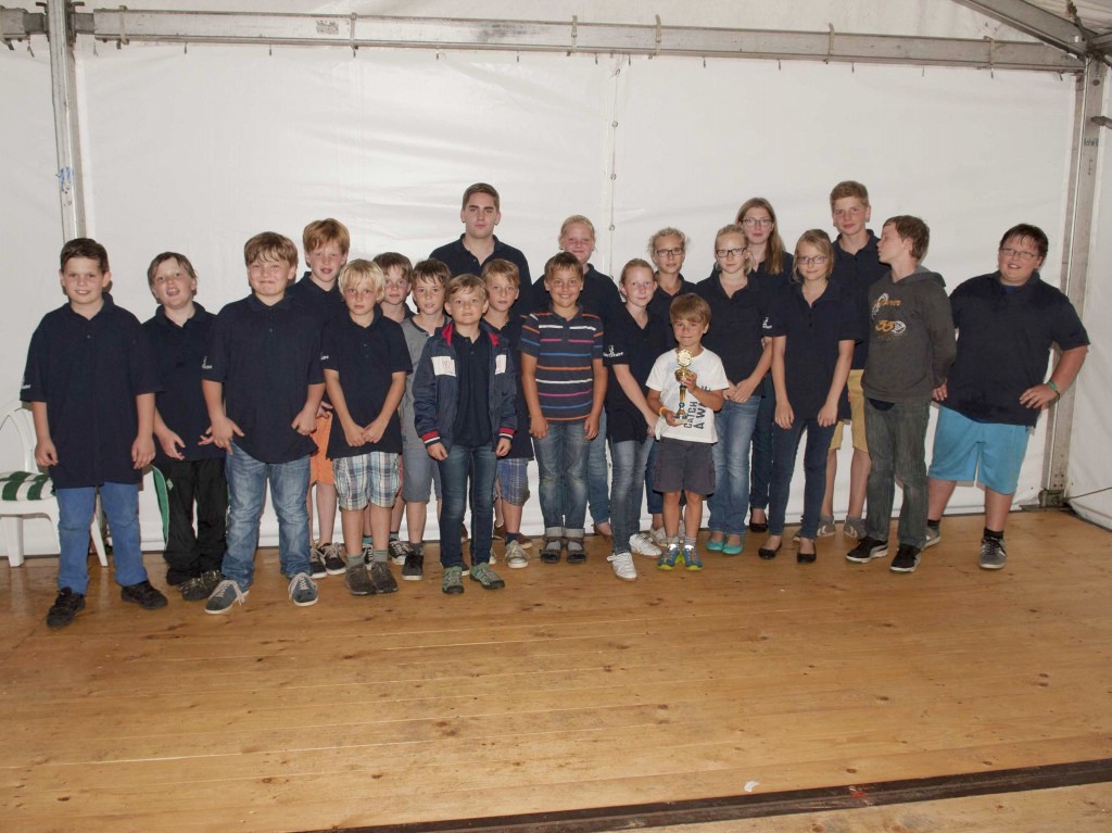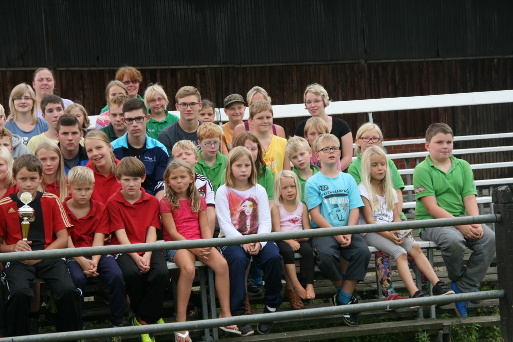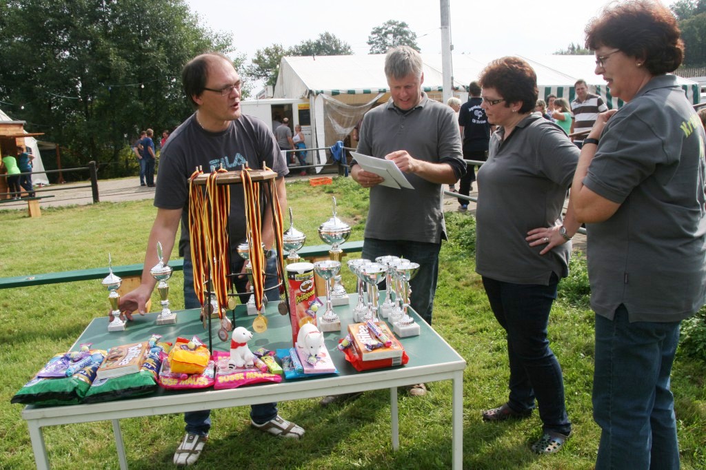 Bernd Dammeier verlas dann die von Rainer Gaumann und Ewald Ehlers ausgewerteten Ergebnisse der Sieger, Jugendsportleiterin Marion Schur und Sportleiter Ewald Ehlers überreichten die Medaillen und Pokale an glückliche Sieger. Mannschaftsurkunden werden am 19. September beim Delegiertentag verliehen. Das Publikum geizte bei der Siegerehrung nicht mit Beifall, sie hatten den idealen Platz auf der Zuschauertribüne. Für die Lagerwertung wurden Pokale und verpackte Süssigkeiten an alle sechs teilnehmenden Vereine vergeben. Zu erwähnen ist, dass Bernd Dammeier wohl schon lange nicht mehr so viele Hände geschüttelt hat.