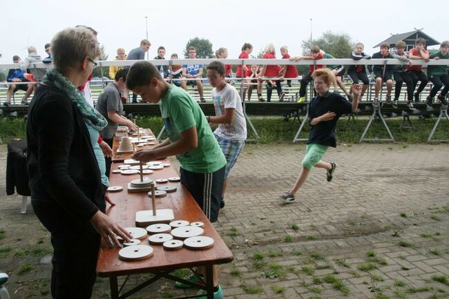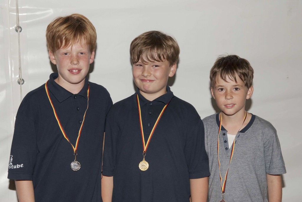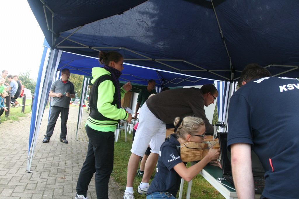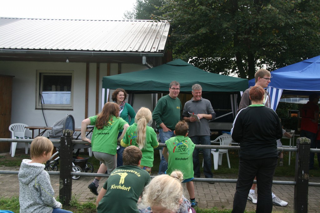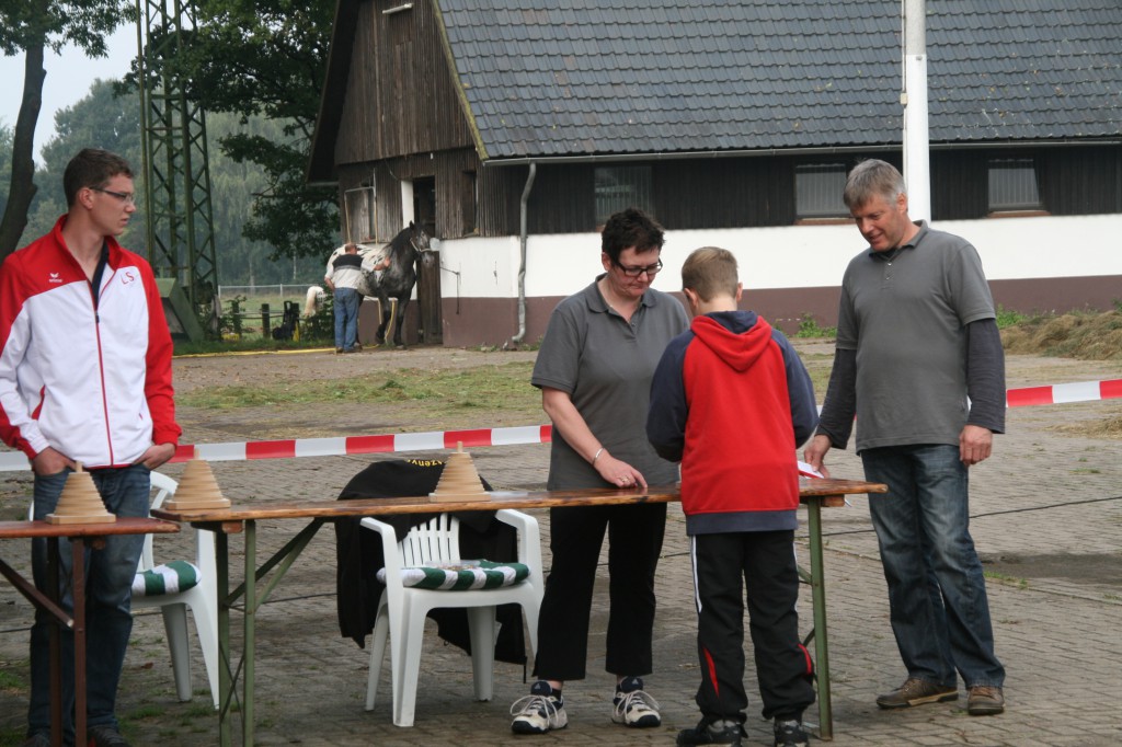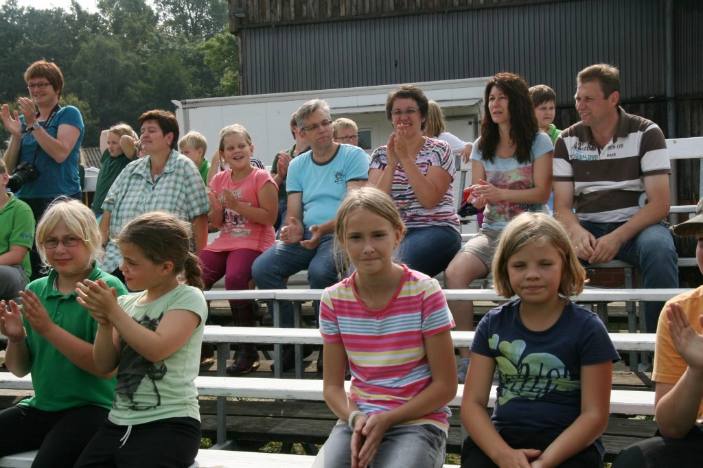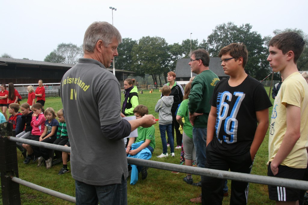 Bernd Dammeier verlas dann die von Rainer Gaumann und Ewald Ehlers ausgewerteten Ergebnisse der Sieger, Jugendsportleiterin Marion Schur und Sportleiter Ewald Ehlers überreichten die Medaillen und Pokale an glückliche Sieger. Mannschaftsurkunden werden am 19. September beim Delegiertentag verliehen. Das Publikum geizte bei der Siegerehrung nicht mit Beifall, sie hatten den idealen Platz auf der Zuschauertribüne. Für die Lagerwertung wurden Pokale und verpackte Süssigkeiten an alle sechs teilnehmenden Vereine vergeben. Zu erwähnen ist, dass Bernd Dammeier wohl schon lange nicht mehr so viele Hände geschüttelt hat.