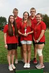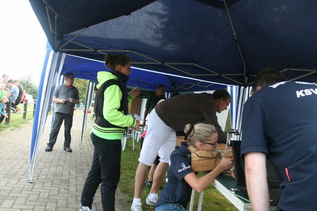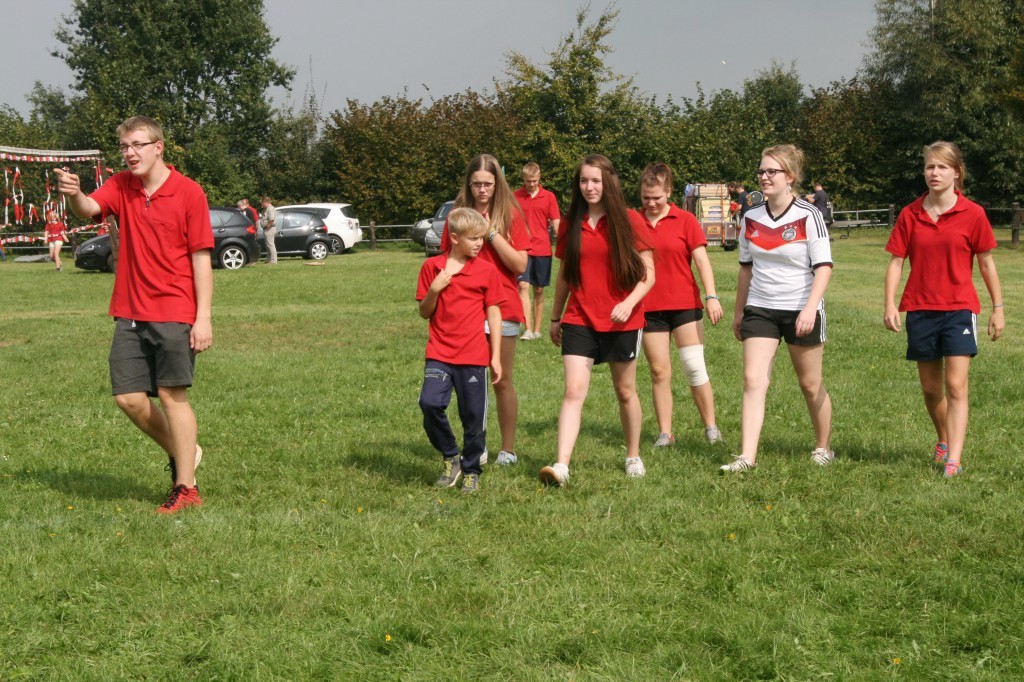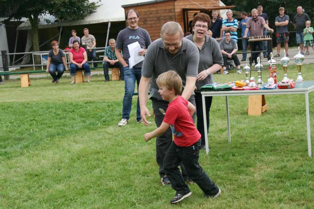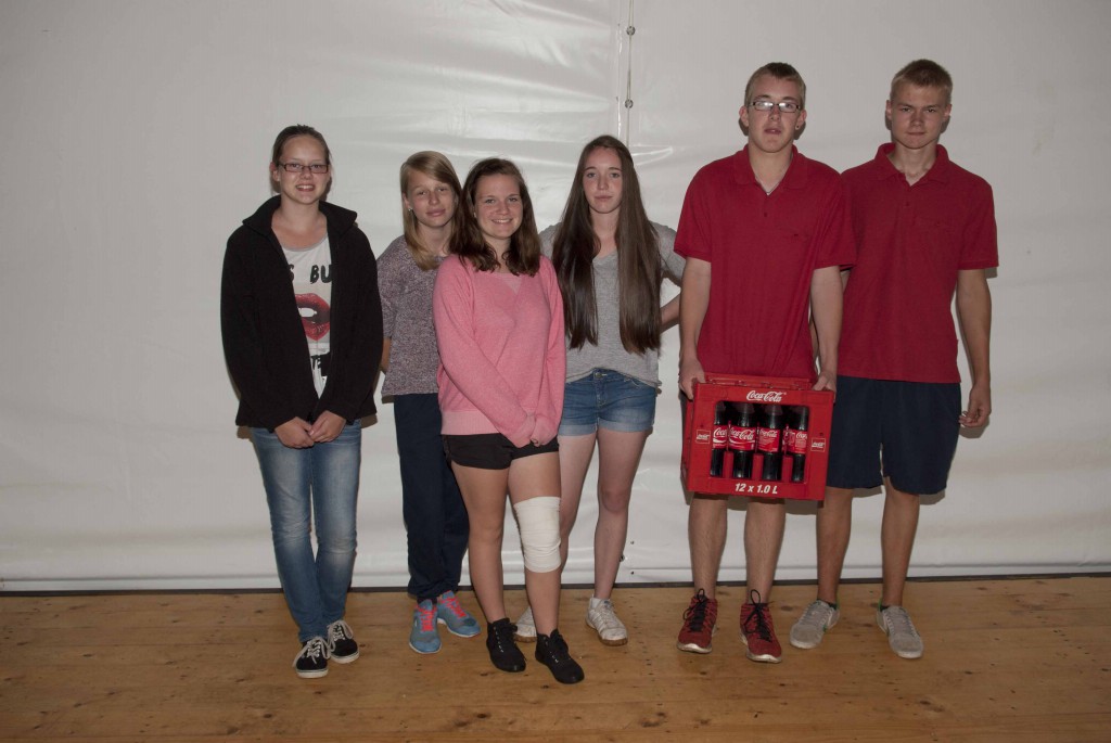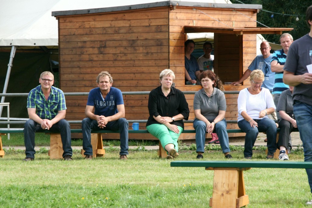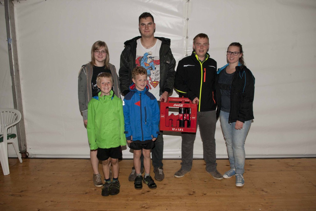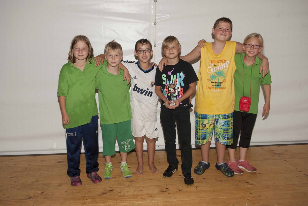 Die Siegerehrung der Mannschaftsspiele, musste wegen eines Gewitterschauers, im großen Zelt abgehalten werden. Es gab trotzdem eine große Schar von Zuschauern, welche den Siegern der Dorfrally, des Volleyball und des Völkerball lautstark mit Beifall Lob zollten.