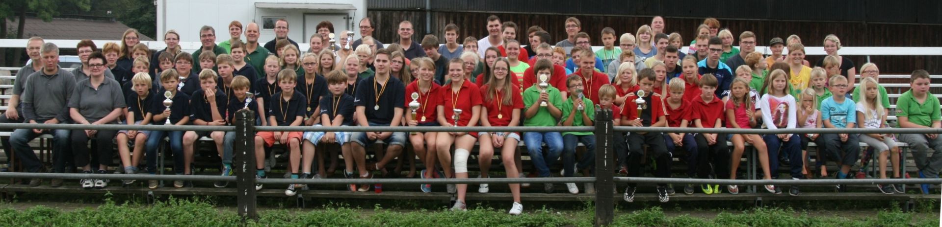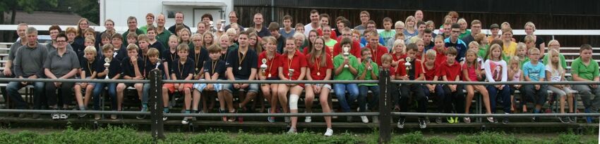 Auf dem Abschlußfoto sind fast alle Teilnehmer mit den verantwortlichen des Kreisverbandes und Betreuern aus den Vereinen, samt Pokal- und Medaillengewinnern.