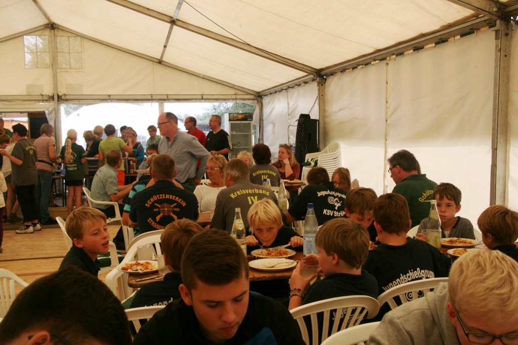 Gegen 18:30 Uhr wurden alle Teilnehmer vom Vizepräsidenten des Kreisverbandes Bernd Dammeier und dem Präsidenten des gastgebenden Vereins Holger Kuhlmann und Jugendwart Thomas Beyerle herzlich begrüsst, sie wünschten den jungen Sportschützen einen schönen Aufenthalt beim diesjährigen Zeltlager des Kreisverbandes in Ströhen. Da KV IV-Präsident Gerd Griffel im Urlaub war, lag die Organisation dieses Zeltlagers in den Händen von Bernd Dammeier unter der Mithilfe vom Team des Kreisverbandes.