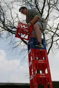 Außerdem gab es die Alternative für Jugendliche, welche sich mehr nach Action sehnten, in einer Kirche, welche zu einem Kletterpark umgestaltet wurde, zu klettern. Wir wurden in zwei gleichgroße Gruppen aufgeteilt, wobei eine draußen und die andere im Innenbereich kletterte. Es gab Disziplinen wie Kistenklettern bzw. - stapeln und an Wänden klettern mit verschiedenen Schwierigkeitsgraden. Es wurde all unser Können abverlangt und so mancher klagte am Ende über Muskelkater.