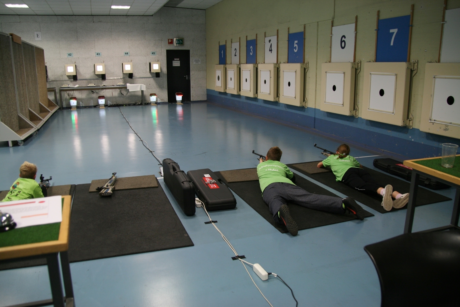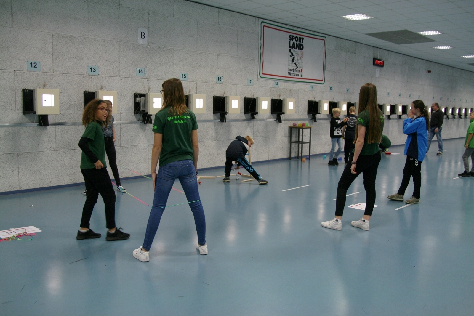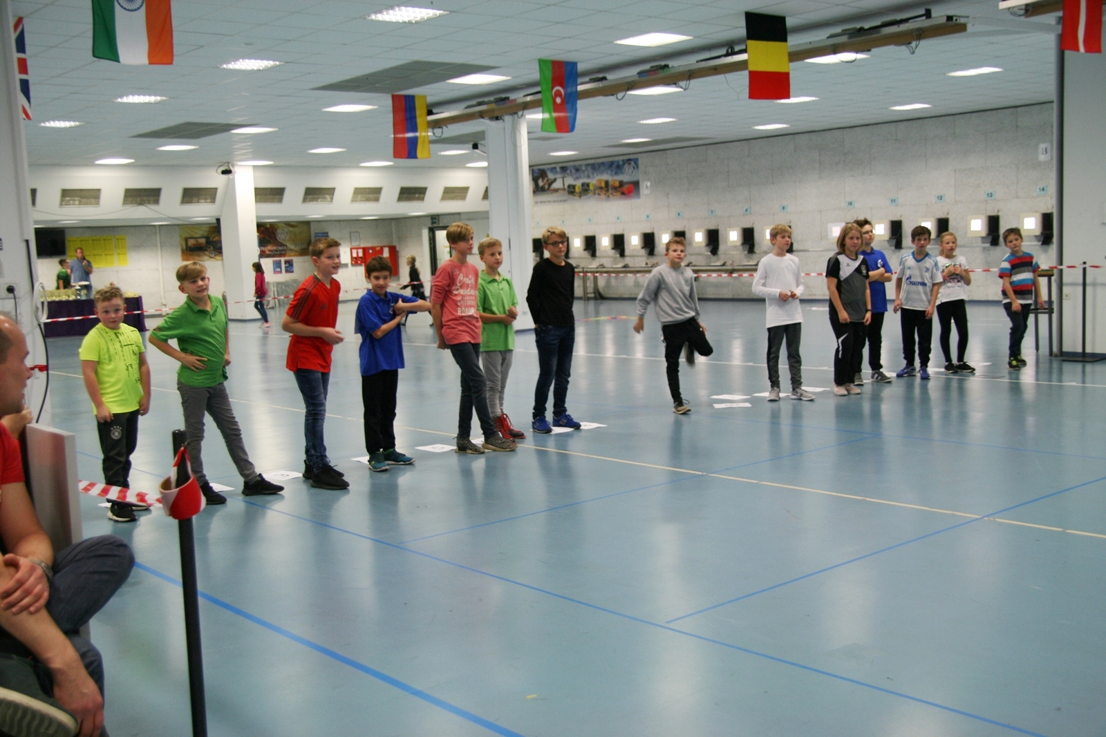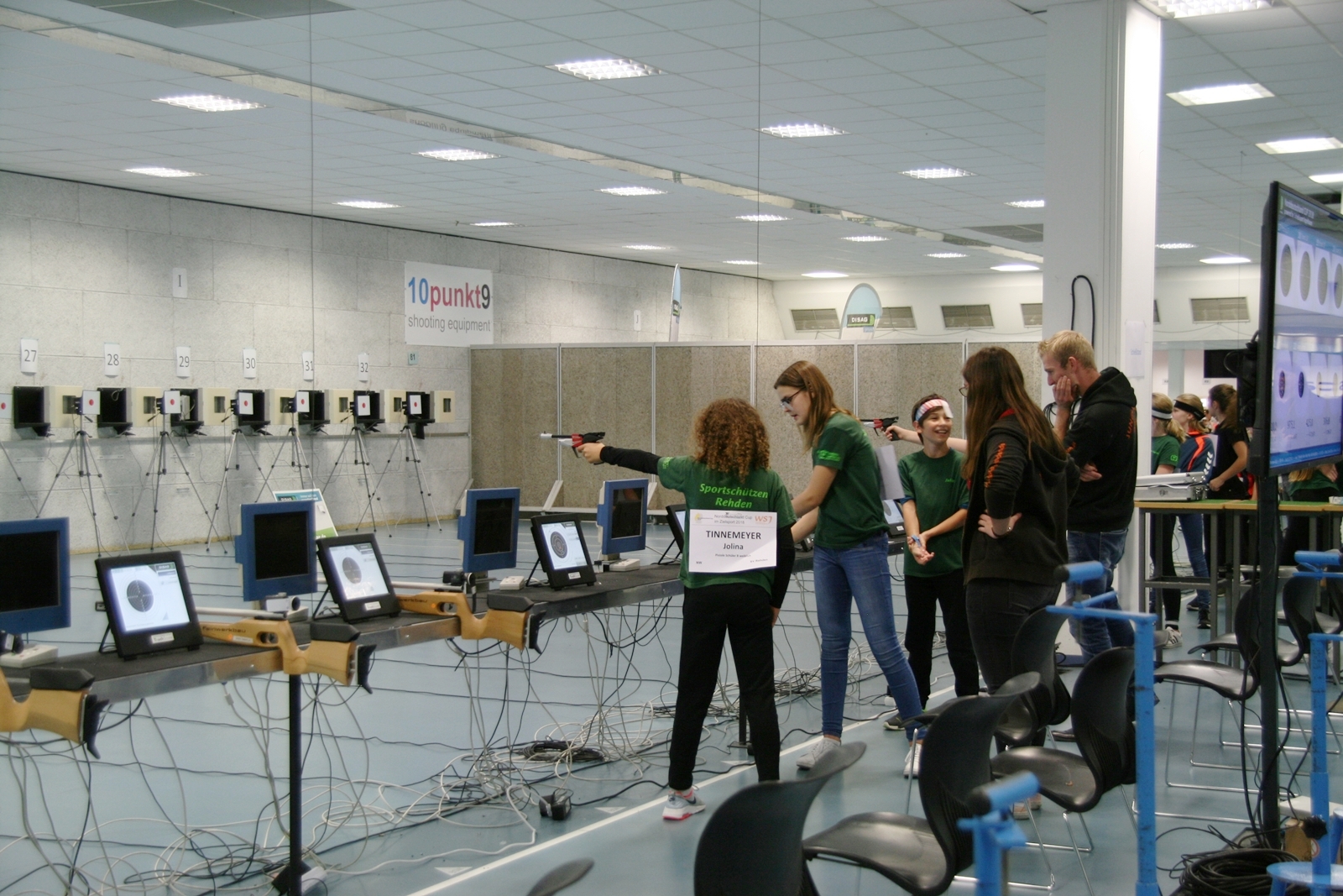 Es waren 32 Stände jeweils für Lichtpunktgewehre und Lichtpunktpistolen aufgebaut, da zu gab es einen gut übersehbaren Anmeldestand. Um 11:0 Uhr war der erste Start, vor jedem der sechs Starts mit 20 Wertungsschüssen, wurde mit Landesjugendleiterin Tatjana Matuschek und ihren Helfern ein „Aufwärmspiel“ mit den jungen Sportschützen durchgeführt, anschließend 10 Wertungsschüsse, vor den weiteren 10 Schüssen eine Bewegungsaufgabe, nach dem Wettkampf nochmals eine Bewegungsaufgabe als Abschluß.