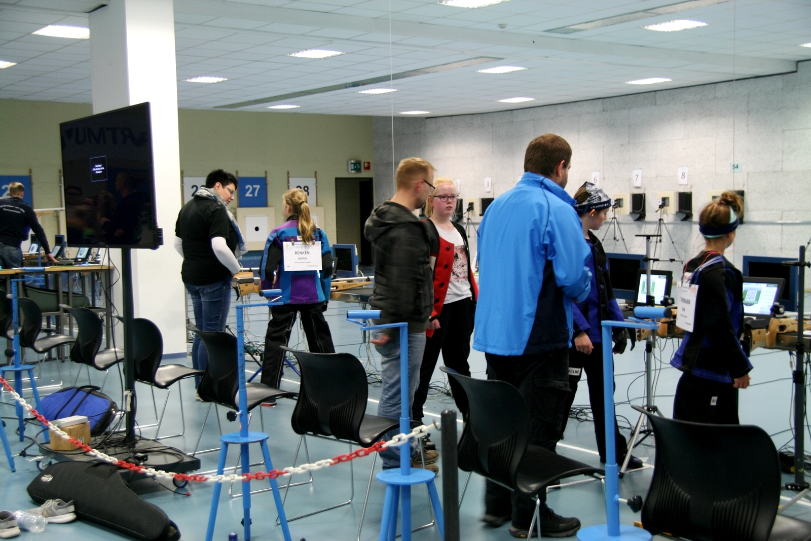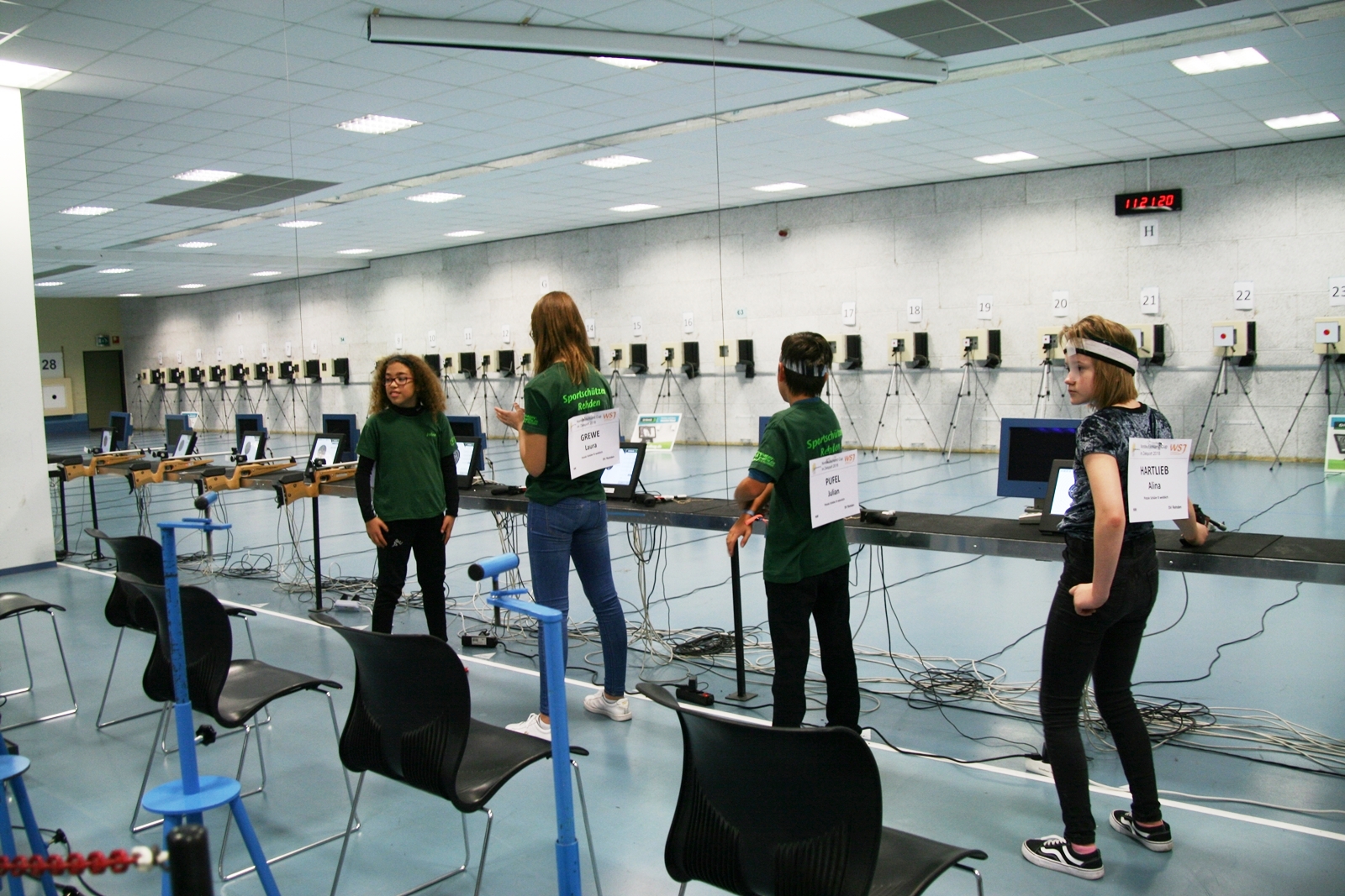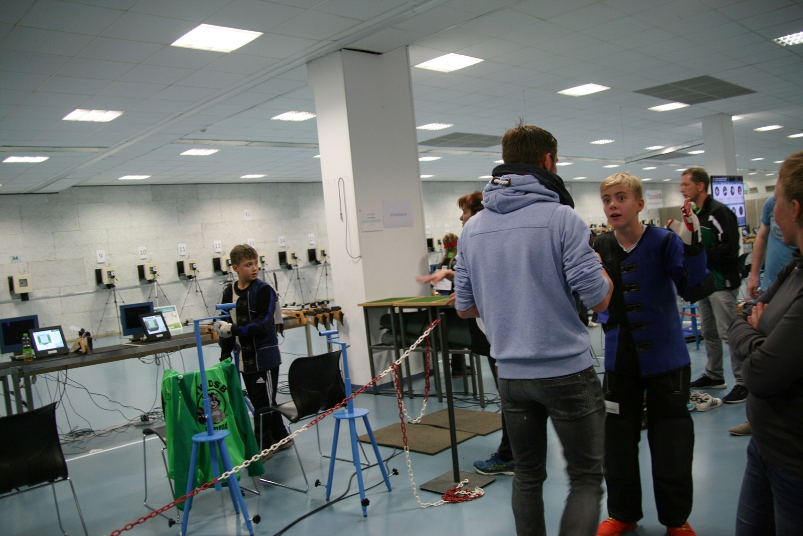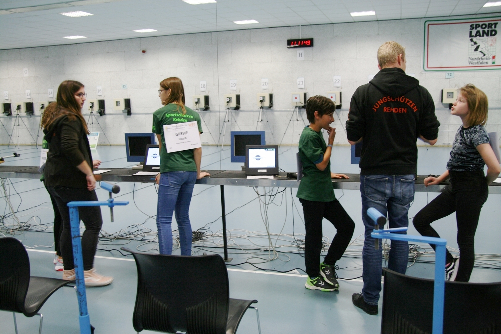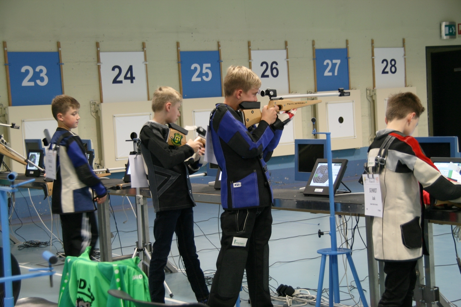 Es waren 32 Stände jeweils für Lichtpunktgewehre und Lichtpunktpistolen aufgebaut, da zu gab es einen gut übersehbaren Anmeldestand. Um 11:0 Uhr war der erste Start, vor jedem der sechs Starts mit 20 Wertungsschüssen, wurde mit Landesjugendleiterin Tatjana Matuschek und ihren Helfern ein „Aufwärmspiel“ mit den jungen Sportschützen durchgeführt, anschließend 10 Wertungsschüsse, vor den weiteren 10 Schüssen eine Bewegungsaufgabe, nach dem Wettkampf nochmals eine Bewegungsaufgabe als Abschluß.