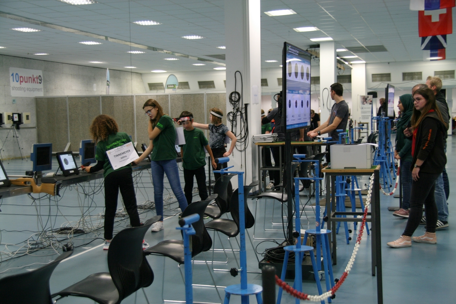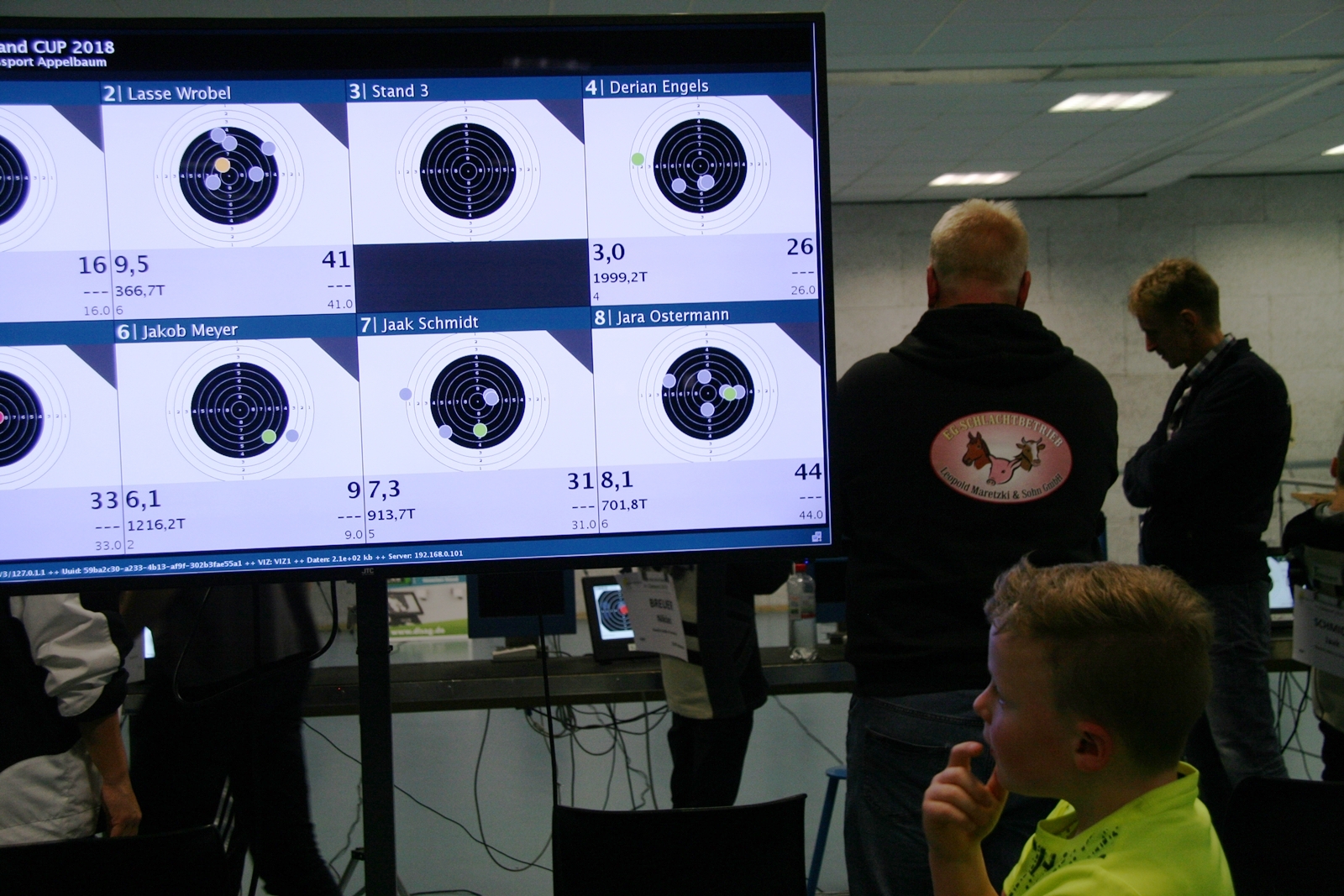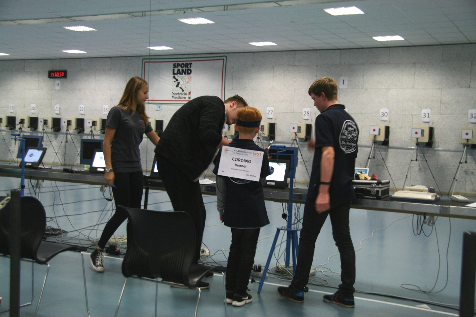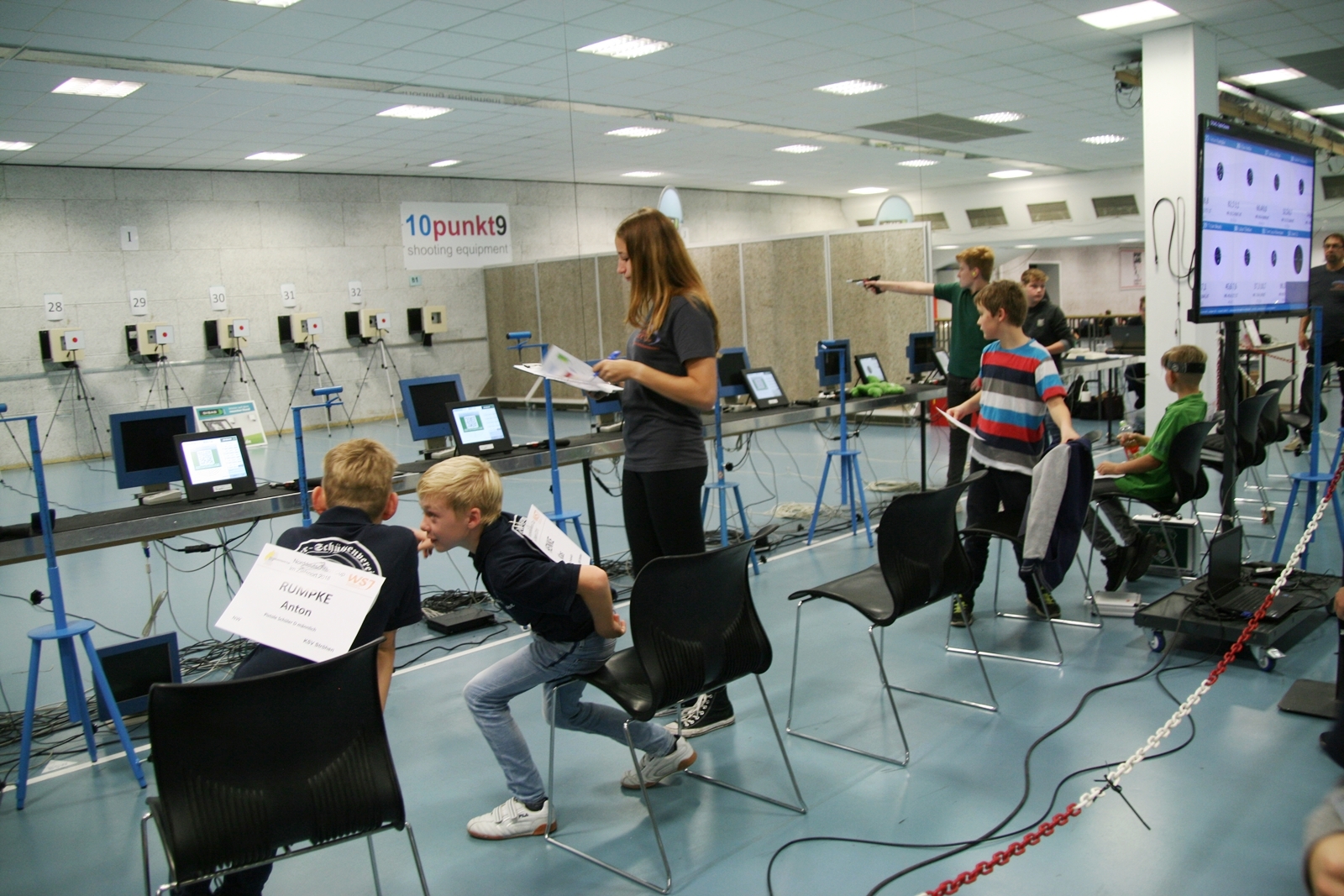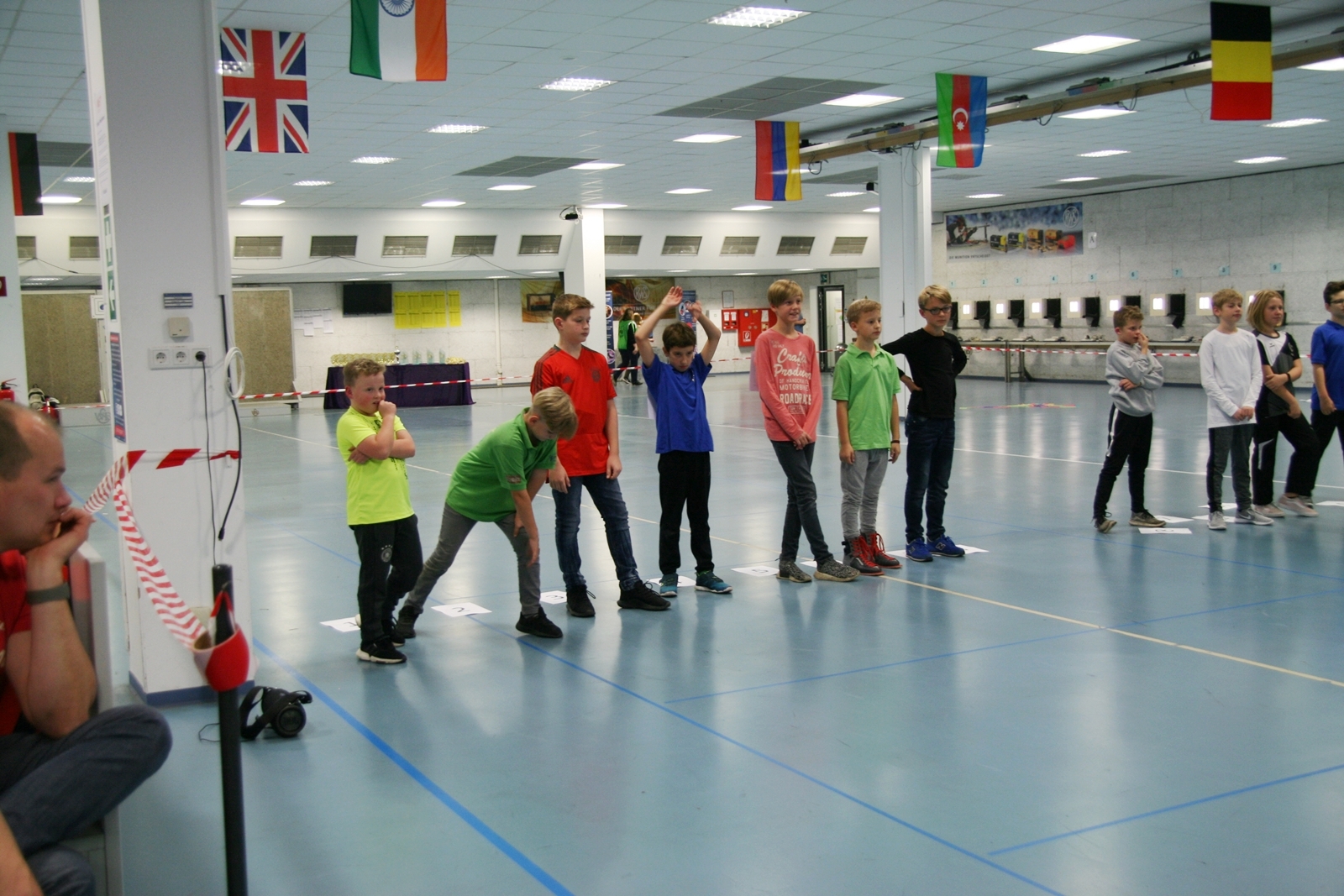 Es waren 32 Stände jeweils für Lichtpunktgewehre und Lichtpunktpistolen aufgebaut, da zu gab es einen gut übersehbaren Anmeldestand. Um 11:0 Uhr war der erste Start, vor jedem der sechs Starts mit 20 Wertungsschüssen, wurde mit Landesjugendleiterin Tatjana Matuschek und ihren Helfern ein „Aufwärmspiel“ mit den jungen Sportschützen durchgeführt, anschließend 10 Wertungsschüsse, vor den weiteren 10 Schüssen eine Bewegungsaufgabe, nach dem Wettkampf nochmals eine Bewegungsaufgabe als Abschluß.