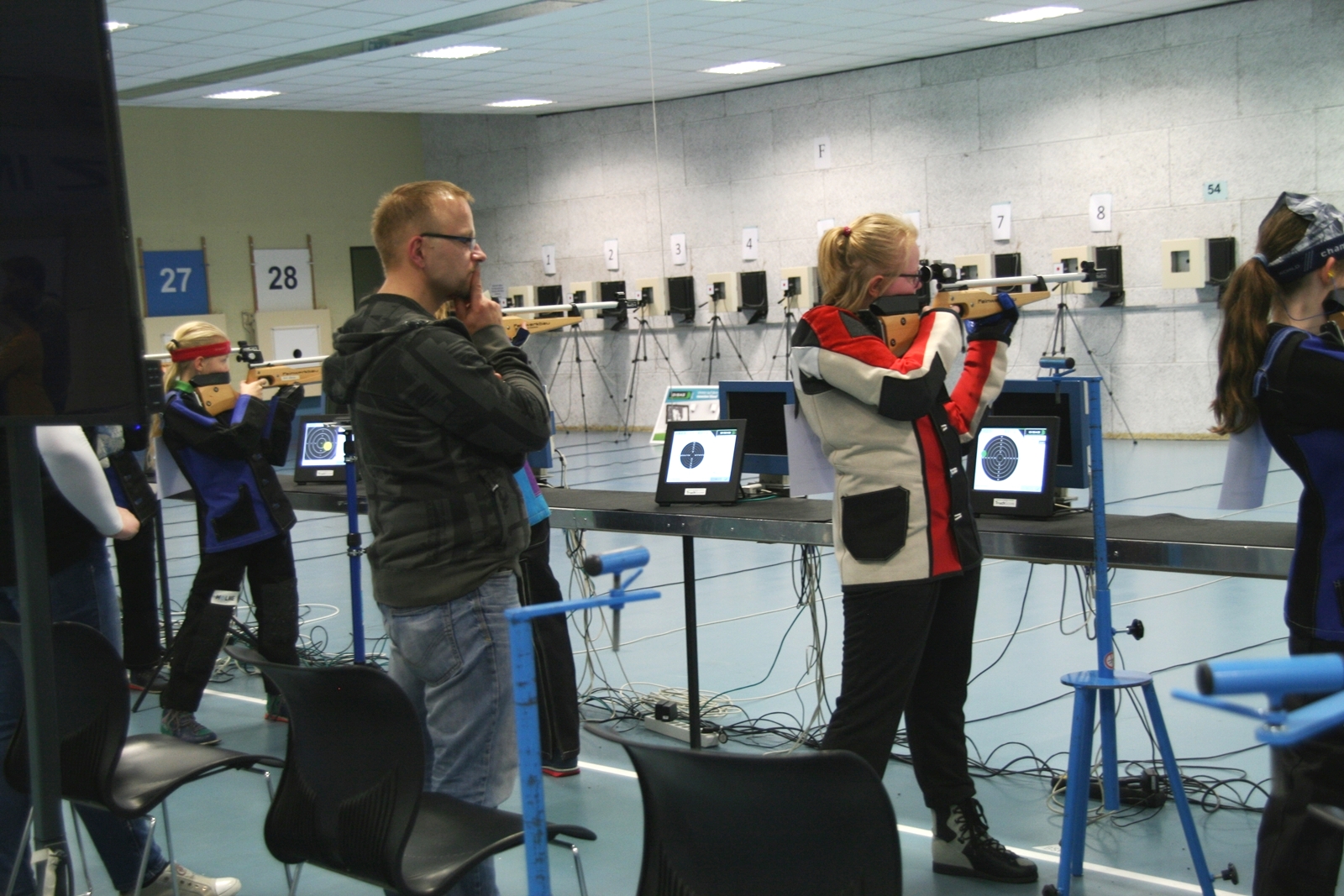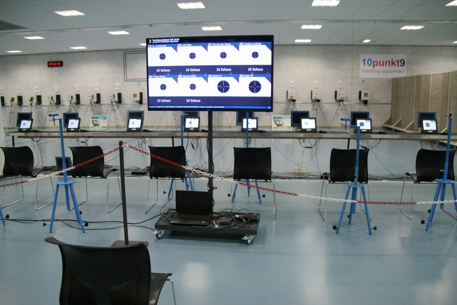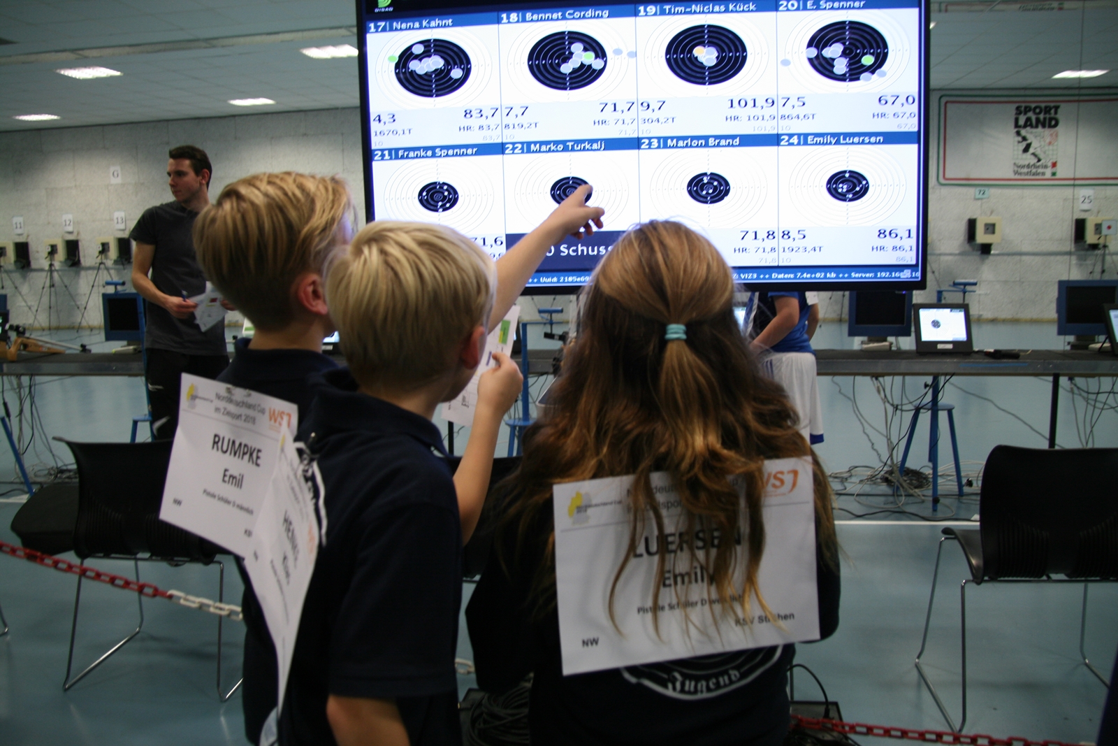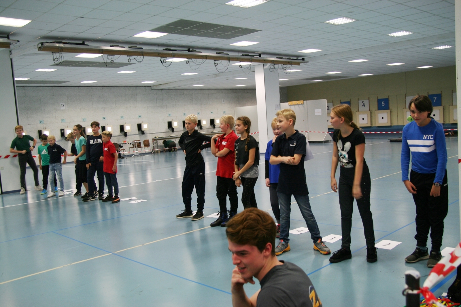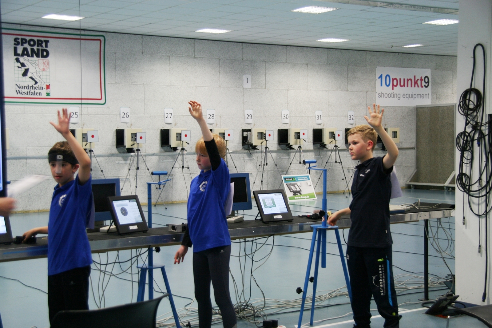 Es waren 32 Stände jeweils für Lichtpunktgewehre und Lichtpunktpistolen aufgebaut, da zu gab es einen gut übersehbaren Anmeldestand. Um 11:0 Uhr war der erste Start, vor jedem der sechs Starts mit 20 Wertungsschüssen, wurde mit Landesjugendleiterin Tatjana Matuschek und ihren Helfern ein „Aufwärmspiel“ mit den jungen Sportschützen durchgeführt, anschließend 10 Wertungsschüsse, vor den weiteren 10 Schüssen eine Bewegungsaufgabe, nach dem Wettkampf nochmals eine Bewegungsaufgabe als Abschluß.